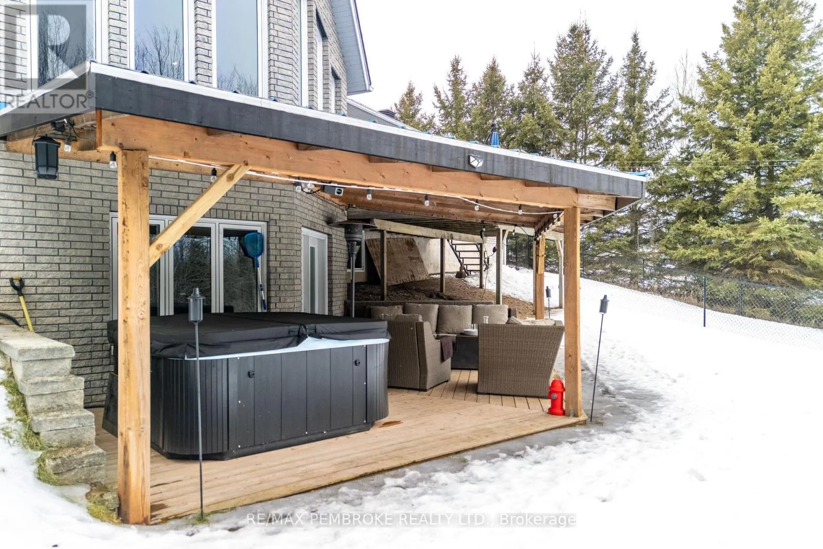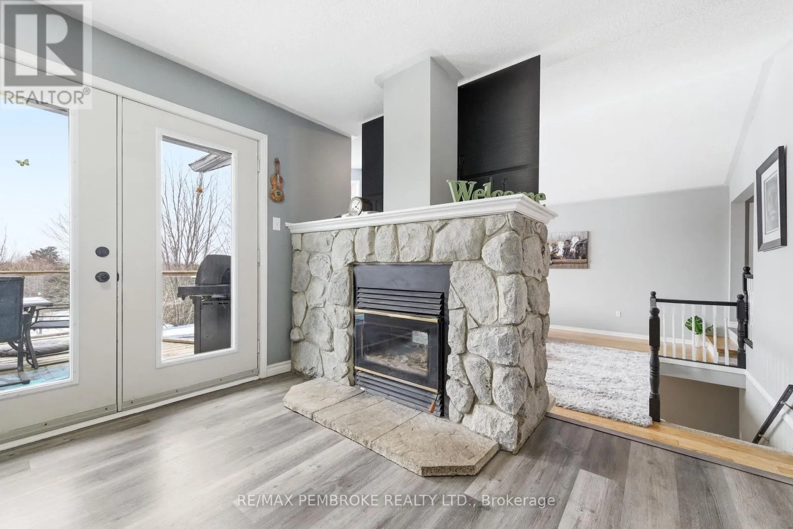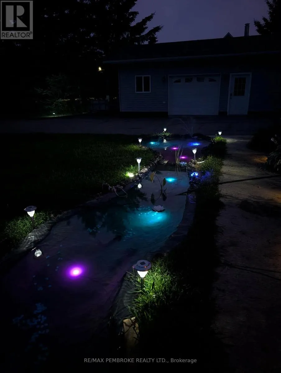 Cross Streets: Robertson Drive and Meadowview Drive. ** Directions: Beachburg Rd to Robertson Drive, house is on the left. Welcome to this beautiful 4-bedroom (3+1), 4-bathroom family home offering exceptional space, comfort, and functionality for today's lifestyle. From the moment you arrive, you'll be drawn in by the serene front yard pond-creating a peaceful, welcoming setting enhancing the home's charming curb appeal. Inside, the home is filled with natural light and features a thoughtfully designed layout with generously sized rooms throughout. The bright kitchen offers ample cabinetry, abundant counter space, & generous breakfast bar-ideal for busy mornings or casual entertaining. The separate dining area is highlighted by a stunning double-sided wood-burning fireplace and garden doors that lead to a deck overlooking the beautifully landscaped backyard, with easy access to nearby trails. Fencing already in place-perfect for children &/or pets. The inviting sunken living room showcases vaulted ceilings, large windows with scenic views, oak flooring and railings-creating a welcoming space for family gatherings. New waterproof vinyl plank flooring has been installed in several areas, adding both style and durability. The primary bedroom serves as a private retreat, complete with a 4-piece ensuite. Two additional bedrooms and a full 4-piece bath provide ample room for the whole family. The main floor is completed by a spacious foyer with plenty of closet space. Enter from the garage for quick access to a generous laundry/powder room. The lower level offers impressive additional living space, featuring a massive entertainment area and a dedicated gym with walkout access to the back. Enjoy year-round relaxation in the covered hot tub area. Also features a fourth bedroom (currently used as an office), 3-piece bath, cold storage, workshop/utility space-offering excellent in-law suite potential.For those needing extra space, the property includes both a double attached garage & detached insulated garage (2011)-ideal storage, recreational vehicles/boat. This home has it all. A must-see! (id:27476)