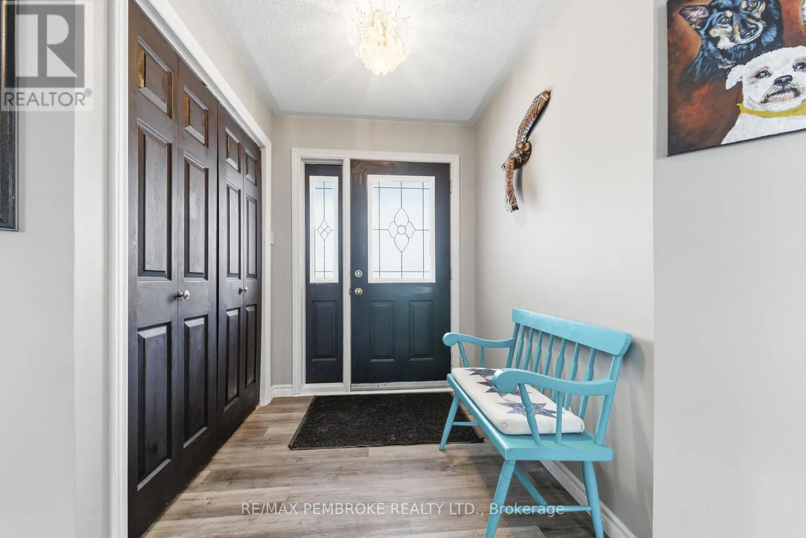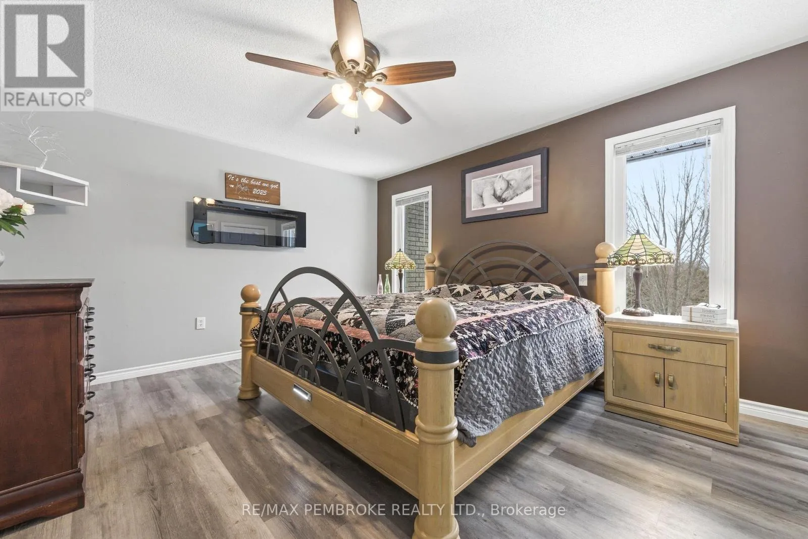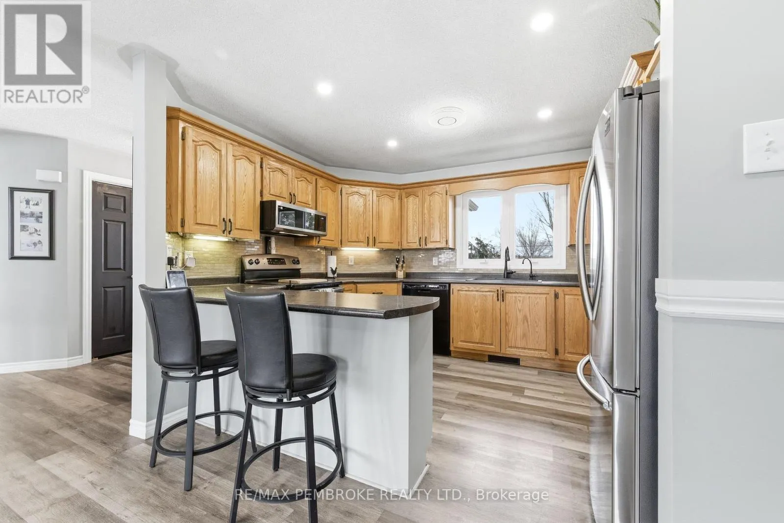 Cross Streets: Robertson Drive and Meadowview Drive. ** Directions: Beachburg Rd to Robertson Drive, house is on the left. Welcome to this beautiful 4-bedroom (3+1), 4-bathroom family home offering exceptional space, comfort, and functionality for today's lifestyle. From the moment you arrive, you'll be drawn in by the serene front yard pond-creating a peaceful, welcoming setting enhancing the home's charming curb appeal. Inside, the home is filled with natural light and features a thoughtfully designed layout with generously sized rooms throughout. The bright kitchen offers ample cabinetry, abundant counter space, & generous breakfast bar-ideal for busy mornings or casual entertaining. The separate dining area is highlighted by a stunning double-sided wood-burning fireplace and garden doors that lead to a deck overlooking the beautifully landscaped backyard, with easy access to nearby trails. Fencing already in place-perfect for children &/or pets. The inviting sunken living room showcases vaulted ceilings, large windows with scenic views, oak flooring and railings-creating a welcoming space for family gatherings. New waterproof vinyl plank flooring has been installed in several areas, adding both style and durability. The primary bedroom serves as a private retreat, complete with a 4-piece ensuite. Two additional bedrooms and a full 4-piece bath provide ample room for the whole family. The main floor is completed by a spacious foyer with plenty of closet space. Enter from the garage for quick access to a generous laundry/powder room. The lower level offers impressive additional living space, featuring a massive entertainment area and a dedicated gym with walkout access to the back. Enjoy year-round relaxation in the covered hot tub area. Also features a fourth bedroom (currently used as an office), 3-piece bath, cold storage, workshop/utility space-offering excellent in-law suite potential.For those needing extra space, the property includes both a double attached garage & detached insulated garage (2011)-ideal storage, recreational vehicles/boat. This home has it all. A must-see! (id:27476)
