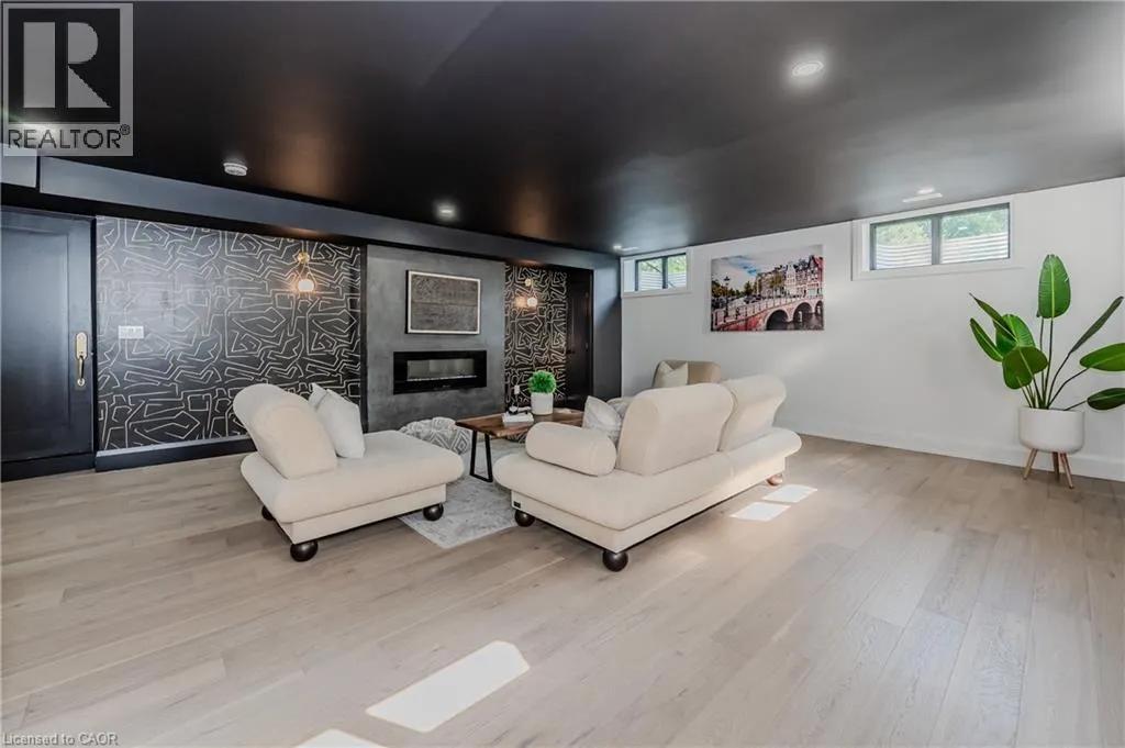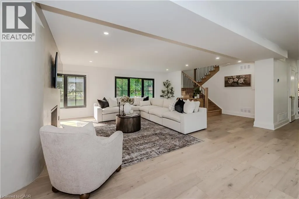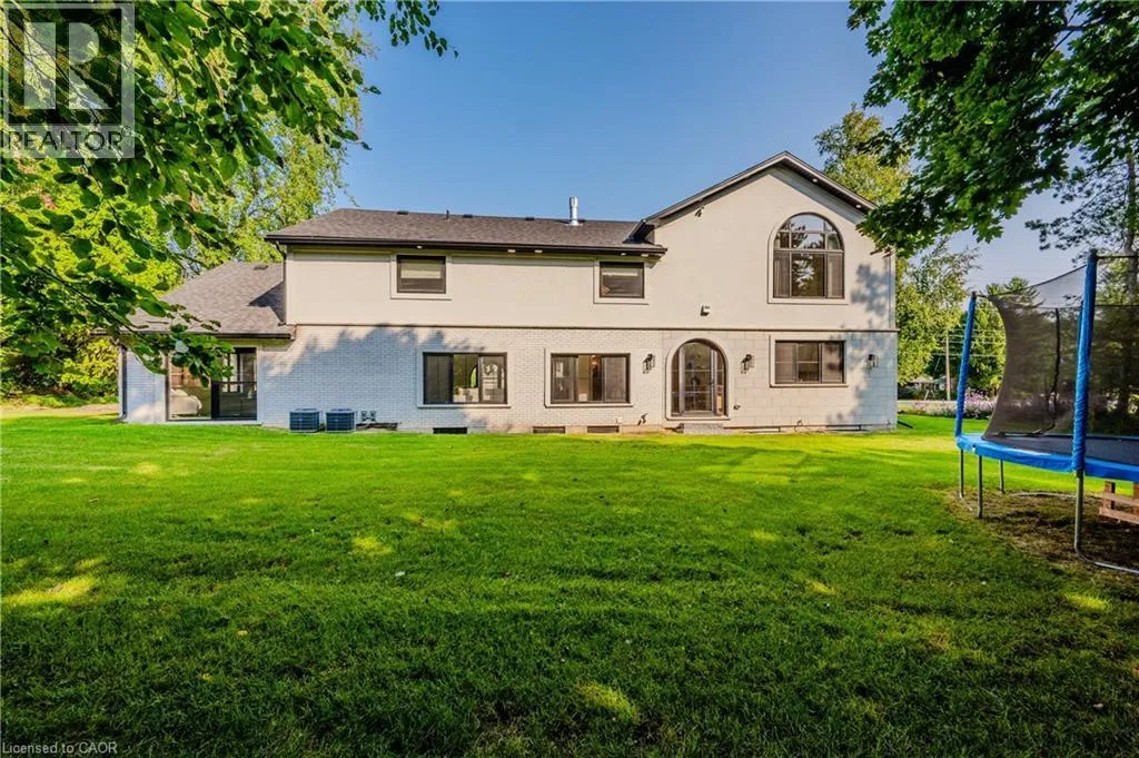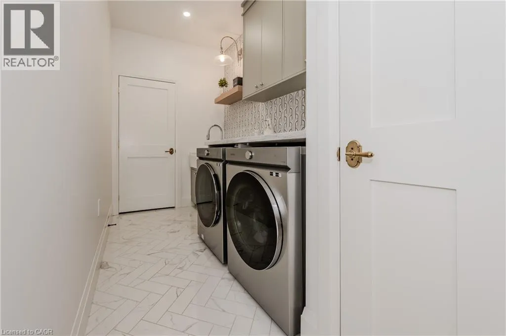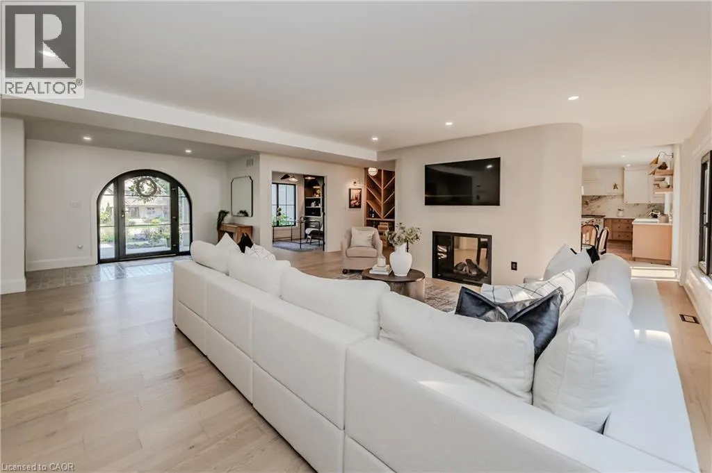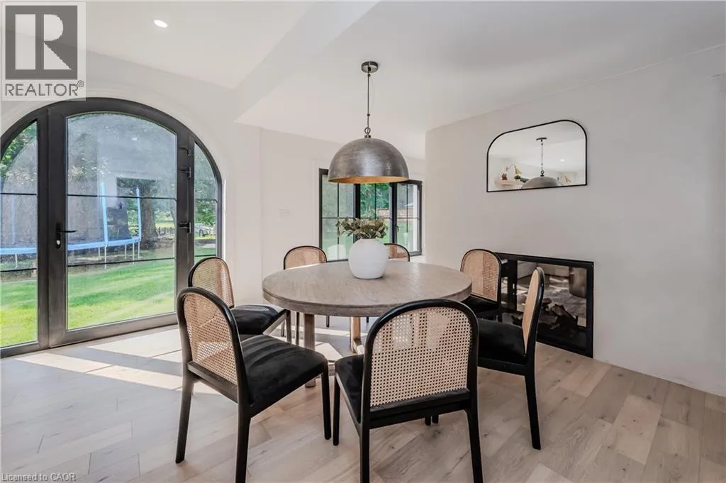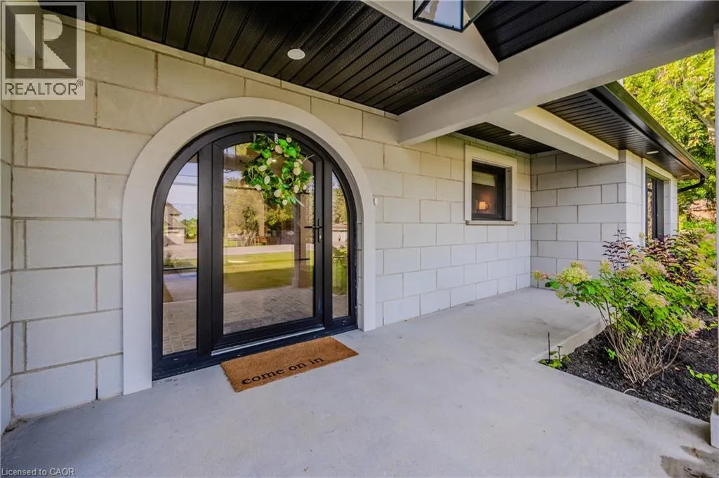Erbs Road to Queen Street to Bleams Road Welcome to a newly constructed luxury estate with over 6,500 sq ft of professionally designed space on a rare 107 Ã 146 ft private lot, minutes from Kitchener-Waterloo. Built in 2023 and curated by Lush Designs, this architectural residence blends timeless European-inspired design with modern family functionality â delivering a level of craftsmanship and scale rarely available in the region. From the moment you enter, soaring ceilings, expansive sightlines, and oversized triple-glazed European windows create an atmosphere of light, openness, and luxury. The main level is designed for both elegant entertaining and everyday living, featuring a grand open-concept layout anchored by a striking double-sided Roman clay fireplace connecting the living and dining spaces. The chefâs kitchen is a showpiece, complete with custom white oak cabinets, a 10-ft double waterfall porcelain island, paneled high-end appliances, walk-in prep pantry, and a designer range â seamlessly blending beauty with performance. Upstairs, the home offers a spacious and thoughtfully designed second level with five large bedrooms, each with ensuite access, a luxurious primary retreat featuring cathedral ceilings, fireplace, spa-like ensuite, and a generous walk-in closet. A bonus flex living area provides space for a family lounge, home gym, or office. The fully finished lower level adds over 1,600 sq ft of additional space, including a media zone, wet bar, guest area, and flexible recreation spaces â ideal for multi-generational living/entertaining. Set on a premium lot with a long private driveway, double garage, and room for outdoor amenities such as a pool or cabana, this property offers a combination of estate-style privacy with unmatched proximity to urban conveniences, minutes from Highway 7/8, shopping, universities, and Waterlooâs tech hub. A truly exceptional offering for buyers seeking space, design excellence, and long-term value in one of the regionâs most desirable locations. (id:27476)