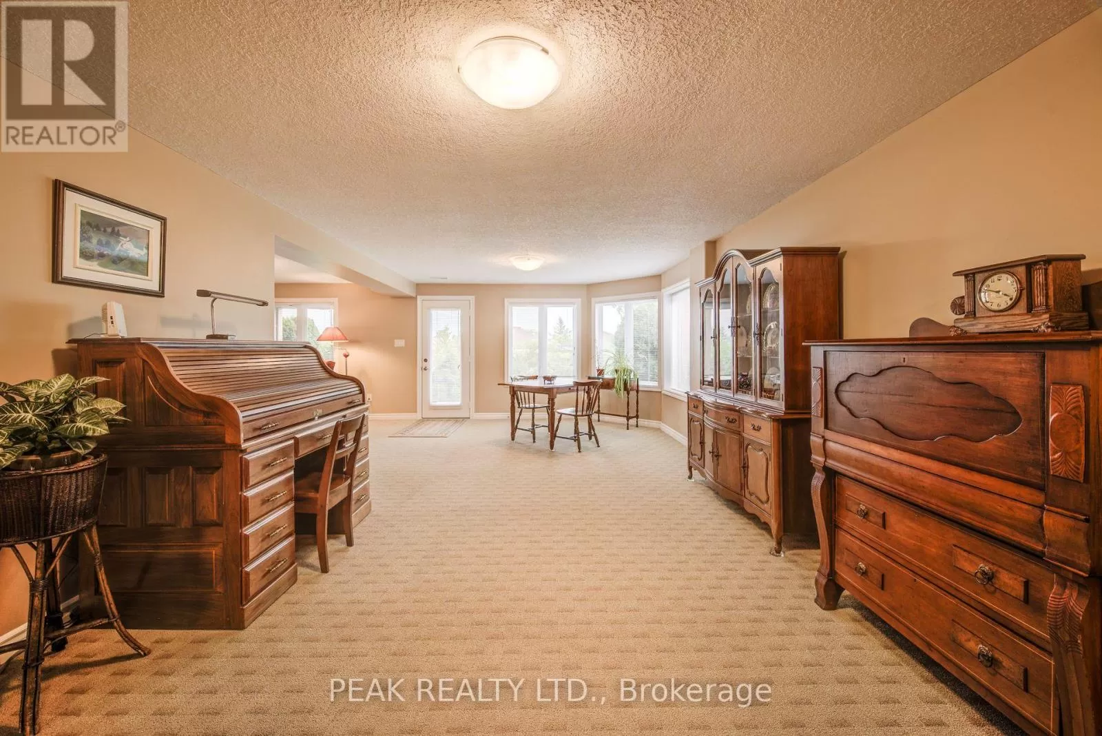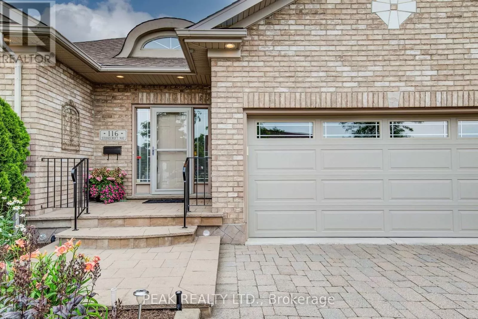 Cross Streets: Haysville Rd. ** Directions: Haysville Rd./ Stonecroft Way. Discover the allure of 116 Stonecroft Way, a beautifully appointed brick bungalow in Stonecroft, New Hamburg's esteemed adult lifestyle community. This home offers the best of both worlds: exceptional privacy on a large, mature lot, combined with immediate access to the community's impressive amenities. Step inside to an inviting open-concept living and dining area, adorned with gleaming hardwood floors. The main level provides convenience with 2 bedrooms and a versatile den. The kitchen, open to the dinette and partially to the living area, features a walk-out to a spacious covered deck with gas BBQ line, ideal for outdoor enjoyment. The finished lower level significantly expands your living space, boasting a generous rec room with a gas fireplace and a 3-piece bath, complete with a walk-out to a lower-level patio. There's also abundant unfinished space, perfect for an additional bedroom or hobby area. This home comes loaded with upgrades, including vaulted ceilings, large bright windows, pot lights, crown moldings, updated insulation, and newer mechanicals and quality roof. As part of this private condominium community, you'll be steps away from the 18,000 sq. ft. recreation centre, offering an indoor pool, fitness room, tennis courts, and 5 km of walking trails. Enjoy quick access to KW, the 401, Stratford, and all major amenities, health care facilities and Theatre and cultural offerings of the area. This exceptional property truly has it all! (id:27476)