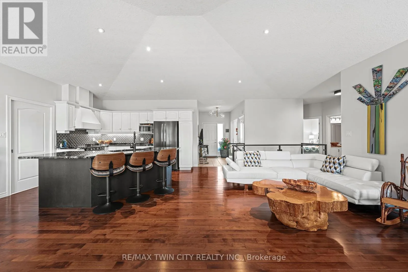 Cross Streets: STONECROFT WAY. ** Directions: TOWNSHIP RD 12 TO STONECROFT WAY, THEN DEVONSHIRE DRIVE. Welcome to 152 Devonshire Dr, a beautifully updated home in the coveted community of Stonecroft. This property is one of only a handful of lots offering premium greenspace views-an exceptionally rare find. W/ no rear neighbours & landscaped grounds it provides unmatched privacy & a spectacular setting. An oversized composite deck, perennial gardens, & sweeping views, all w/ southern exposure fills the yard & home w/ natural light. This strikingly beautiful move-in ready home (no renos required!) features new glass panel railings w/ nearly 3,000 SF of finished living space enhanced by approx. $70K in recent updates. A grand great rm w/ vaulted ceilings is anchored by a porcelain-surround gas fireplace & wall of windows framing private greenspace. The kitchen boasts new granite counters and appliances & a lrg centre island, under-cabinet lighting, & integrated dining area w/ walkout to the deck. The den/home office has built-in cabinetry, hickory flrs through the main lvl, new flring in the den, 2nd bath & primary suite. Freshly painted, w/ pot lights, California shutters, & designer light fixtures throughout. The primary suite offers backyard views, dual closets, & a spa-like ensuite w/ barn door, tiled glass shower, & oversized bubbler tub. A 2nd bdrm with vaulted ceiling, 4-pc bath, & laundry/mudrm w/ 2-car garage & yard access completes the main lvl. The finished lower lvl features a spacious rec rm w/ gas fireplace, wet bar w/ full-size fridge+freezer, workshop/hobby rm, 3rd bdrm, & 3-pc bath-ideal for entertaining/guests. Lrg capacity storage rooms offer built-in shelving. Furnace & A/C (2023), roof (2019). At Stonecroft, the lifestyle is as appealing as the home. Residents enjoy an 18,000 SF rec centre w/ indoor pool, fitness, party & games rms, billiards, library, media lounge, tennis courts, & 5 km of walking trails. Stonecroft is Waterloo Regions premier destination for adult living, combining modern homes, a vibrant community, & a beautiful natural setting. (id:27476)