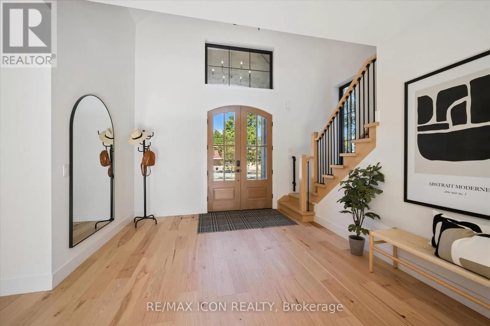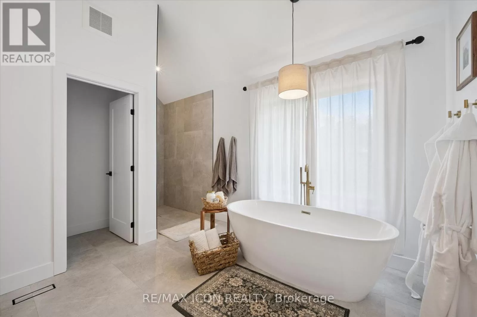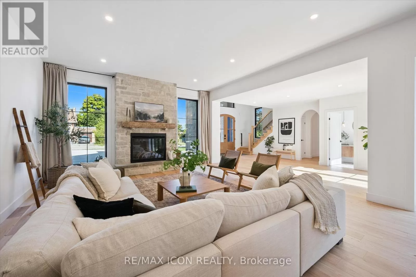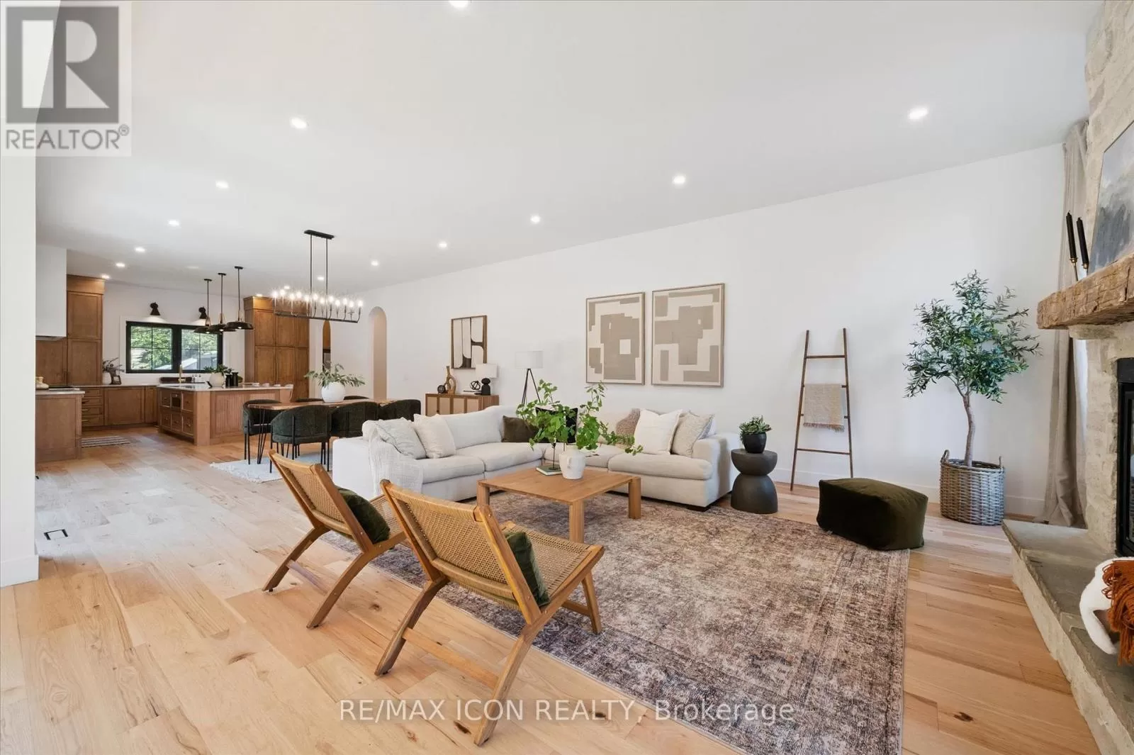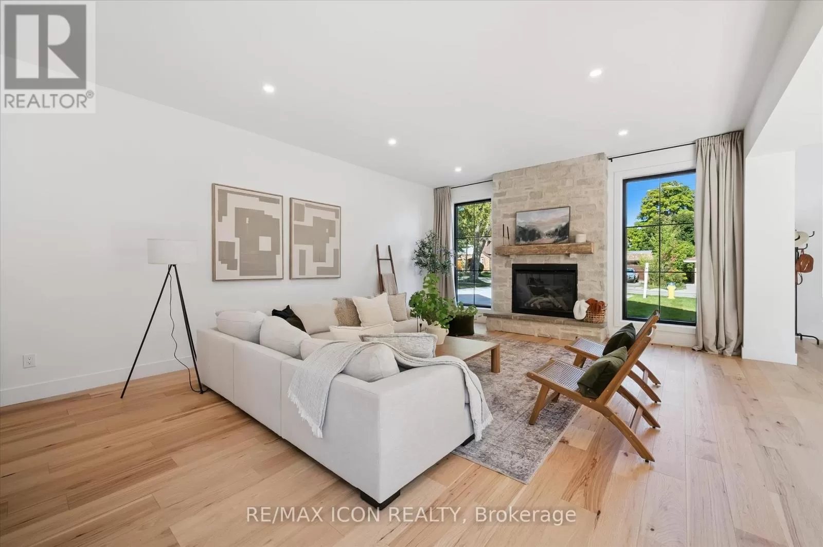 Cross Streets: Huron & Waterloo St. ** Directions: Peel St. left onto Huron. Welcome to 413 Huron Road in charming New Hamburg! A truly exceptional 5-bedroom, 4-bathroom home offering over 4,400 sq. ft. of finishedliving space, where thoughtful design meets high-end finishes and timeless craftsmanship. The exterior blends timeless materials like stone,brick, and barn board for a striking curb appeal, complemented by a concrete driveway with integrated drainage and underground downspoutmanagement. Inside, the home is flooded with natural light thanks to oversized Raven European tilt/turn windows, which beautifully highlight theneutral tones, organic finishes, and natural hickory engineered hardwood throughout. The heart of the home is the handcrafted maple kitchenand adjoining butlers pantry, featuring a Monogram gas oven/range, built-in 36 Fisher & Paykel fridge and dishwasher, an apron sink, andample storage, ideal for everyday living and entertaining alike. A separate entrance leads to a private granny flat, perfect for multi-generationalliving or guests. Comfort is maximized with multi-zone climate control, a hot water recirculation line for instant hot water to the second-floorbathrooms, and a large Lennox natural gas fireplace for cozy evenings. Additional features include a custom vanity in the foyer bath, VIGOfaucets, Red Oak stairs, and a master suite boasting oversized windows and Italian tile finishes. The home is equipped with a 200 AMP electricalpanel, water softener, and plenty of storage including a large shed. Outside, enjoy an incredible entertaining space with a wood deck and anexpansive grass area set on 3/4 acre in town perfect for relaxing or hosting gatherings. This is a rare blend of luxury, functionality, andthoughtful design in a peaceful, sought-after location. (id:27476)