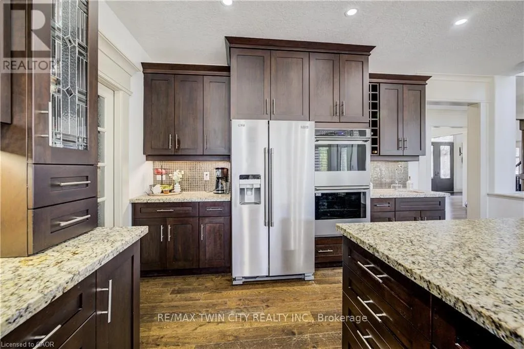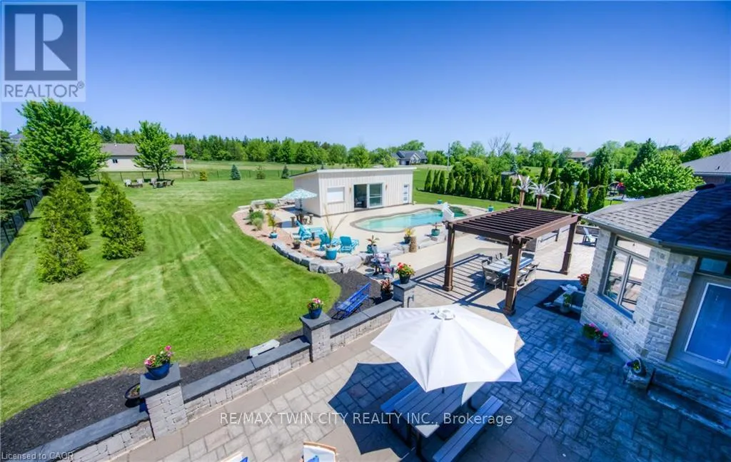 Cross Streets: Waterloo St. ** Directions: Waterloo St to Shade St. This home has it all! Stately solid stone home set on an incredible 1.5 acre estate lot on the edge of beautiful New Hamburg. A grand entrance through the double doors to a curving staircase looking into the stunning 2 storey great room, huge formal dining room that will sit a large family for special occasions, main floor office and a library. Gourmet kitchen that will keep the aspiring cook happy for years to come with an oversized island, gas range, coffee bar, double ovens and a large walk in pantry. Large mud room off of the triple car garage and a large laundry and 2 piece bath complete the main floor. Upstairs has four great sized bedrooms, each with a walk in closet and ensuite privileges. The primary bedroom features a Juliet balcony overlooking the rear yard, dual walk in closets and a recently updated spa-like ensuite. There is a fully finished suite in the basement that will work great for extended family or a nanny suite. It features a fully separate entrance, full kitchen, 2 bedrooms and plenty of living space, all completed in 2023. Although the house is off the charts for style and finish, the backyard oasis is arguably the finest feature of the property. An incredible amount of landscaping, hardscape seating and dining areas, custom fibreglass pool with heated pool house, bar, party room and hot tub will make your new home the place to entertain friends and family for years to come. New Hamburg is located half way in between KW and Stratford and offers good schools, park systems, twin pad ice surfaces, public pools and a vibrant downtown. Be sure to book a private showing today! Additional photos can be found in the virtual tour link under the "Photos" tab. (id:27476)