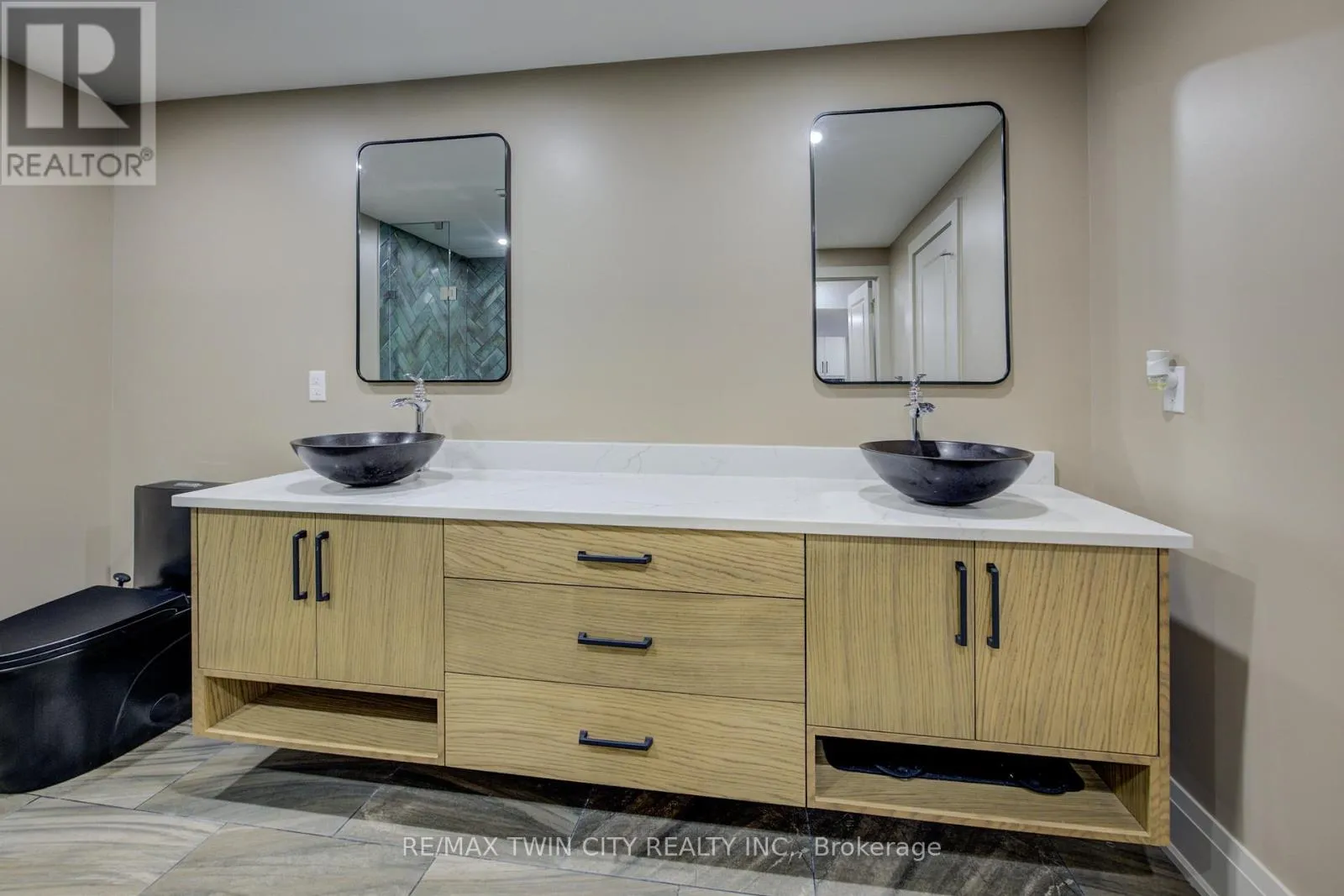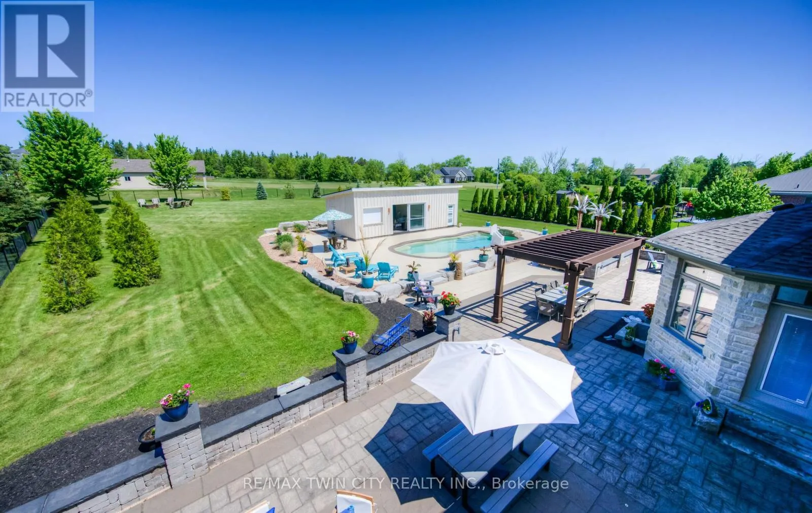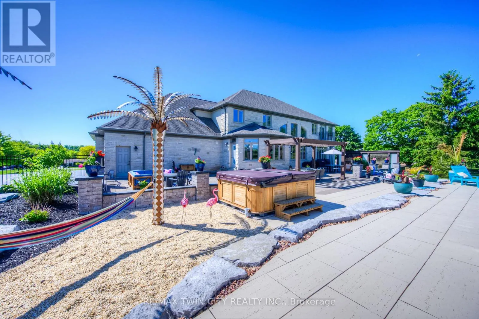 Cross Streets: Waterloo St. ** Directions: Waterloo St to Shade St. This home has it all! Stately solid stone home set on an incredible 1.5 acre estate lot on the edge of beautiful New Hamburg. A grand entrance through the double doors to a curving staircase looking into the stunning 2 storey great room, huge formal dining room that will sit a large family for special occasions, main floor office and a library. Gourmet kitchen that will keep the aspiring cook happy for years to come with an oversized island, gas range, coffee bar, double ovens and a large walk in pantry. Large mud room off of the triple car garage and a large laundry and 2 piece bath complete the main floor. Upstairs has four great sized bedrooms, each with a walk in closet and ensuite privileges. The primary bedroom features a Juliet balcony overlooking the rear yard, dual walk in closets and a recently updated spa-like ensuite. There is a fully finished suite in the basement that will work great for extended family or a nanny suite. It features a fully separate entrance, full kitchen, 2 bedrooms and plenty of living space, all completed in 2023. Although the house is off the charts for style and finish, the backyard oasis is arguably the finest feature of the property. An incredible amount of landscaping, hardscape seating and dining areas, custom fibreglass pool with heated pool house, bar, party room and hot tub will make your new home the place to entertain friends and family for years to come. New Hamburg is located half way in between KW and Stratford and offers good schools, park systems, twin pad ice surfaces, public pools and a vibrant downtown. Be sure to book a private showing today! Additional photos can be found in the virtual tour link under the "Photos" tab. (id:27476)