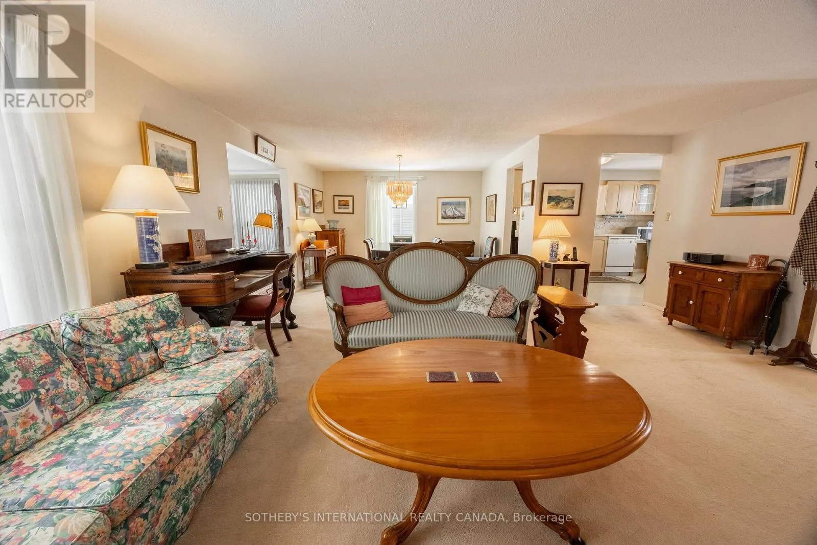 Cross Streets: West Morningside Circle. ** Directions: West Morningside Circle to Riverview Place. Welcome to 2 Riverview Place, quietly nestled within the Morningside Active Lifestyle Retirement Community in the charming town of New Hamburg. This Sheffield Model accessible bungalow offers over 1,400 sq. ft. of thoughtfully designed living space, ideal for those looking to downsize without compromising on comfort. This home features two bedrooms and two bathrooms, with a well-appointed main floor that includes a spacious kitchen with dinette, an open-concept dining and living area, and a bright four-season sunroom perfect for year-round enjoyment. A four-piece bathroom is conveniently located near the secondary bedroom, while the generous primary suite offers its own ensuite bath and attached laundry for everyday ease. Direct access to the single-wide garage makes grocery trips and winter months especially convenient. Morningside Village is a picturesque and welcoming 50+ community, offering serene, country-style living across 120 acres of beautifully maintained green space. Residents enjoy access to a recreation centre with a wide range of leisure activities, social clubs, and community events. The Shed-one of two facility buildings-features a library, poker room, office, and spaces available for private family gatherings. Life at Morningside is about more than scenic surroundings and thoughtful amenities-it's the warmth, friendliness, and strong sense of community that truly make it feel like home (id:27476)
