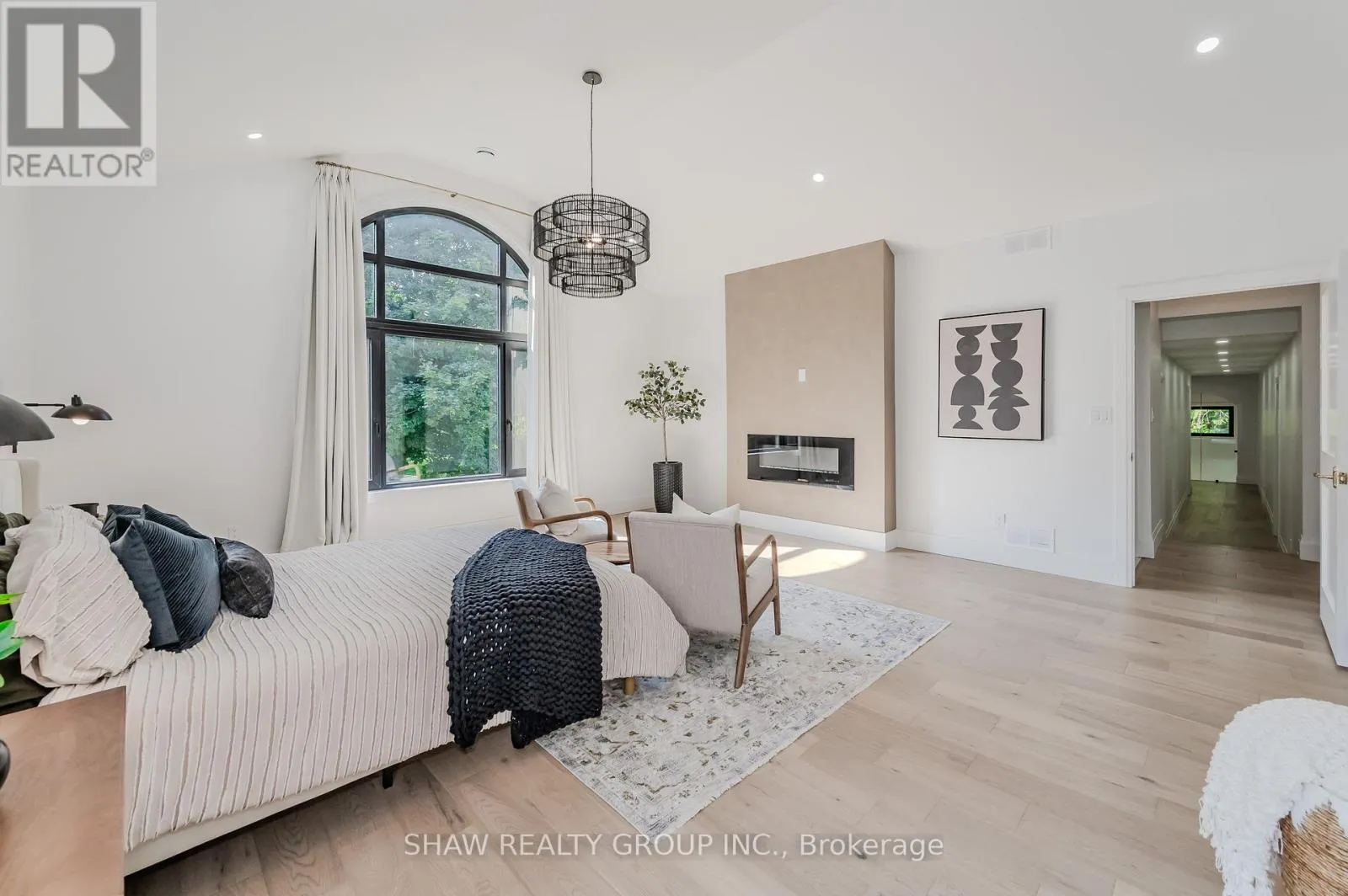 Cross Streets: Queen Street. ** Directions: Erbs Road to Queen Street to Bleams Road. Welcome to a newly constructed luxury estate with over 6,500 sq ft of professionally designed space on a rare 107 146 ft private lot, minutes from Kitchener-Waterloo. Built in 2023 and curated by Lush Designs, this architectural residence blends timeless European-inspired design with modern family functionality - delivering a level of craftsmanship and scale rarely available in the region. From the moment you enter, soaring ceilings, expansive sightlines, and oversized triple-glazed European windows create an atmosphere of light, openness, and luxury. The main level is designed for both elegant entertaining and everyday living, featuring a grand open-concept layout anchored by a striking double-sided Roman clay fireplace connecting the living and dining spaces. The chef's kitchen is a showpiece, complete with custom white oak cabinets, a 10-ft double waterfall porcelain island, paneled high-end appliances, walk-in prep pantry, and a designer range - seamlessly blending beauty with performance. Upstairs, the home offers a spacious and thoughtfully designed second level with five large bedrooms, each with ensuite access, a luxurious primary retreat featuring cathedral ceilings, fireplace, spa-like ensuite, and a generous walk-in closet. A bonus flex living area provides space for a family lounge, home gym, or office. The fully finished lower level adds over 1,600 sq ft of additional space, including a media zone, wet bar, guest area, and flexible recreation spaces - ideal for multi-generational living/entertaining. Set on a premium lot with a long private driveway, double garage, and room for outdoor amenities such as a pool or cabana, this property offers a combination of estate-style privacy with unmatched proximity to urban conveniences, minutes from Highway 7/8, shopping, universities, and Waterloo's tech hub. A truly exceptional offering for buyers seeking space, design excellence, and long-term value in one of the region's most desirable locations. (id:27476)