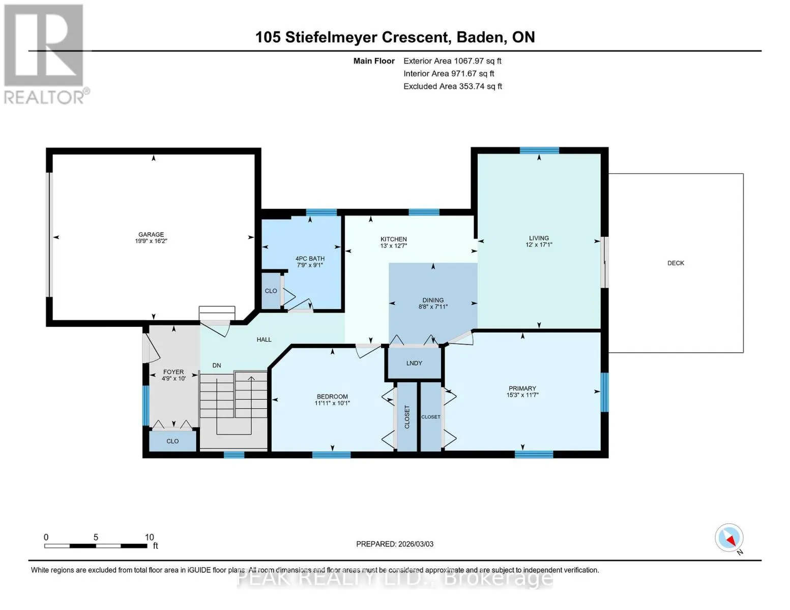 Snyder's Rd E & Sandhills Rd Welcome to 105 Stiefelmeyer Crescent in Baden - a fully detached, all-brick bungalow built by the highly respected Lois Veenstra Custom Homes, known locally for exceptional craftsmanship and quality construction. Offering 1,213 sq. ft. on the main floor plus 897 sq. ft. of finished lower-level space, this home provides over 2,100 sq. ft. of finished living area. The layout includes 2+1 bedrooms, 2 full bathrooms, and convenient main-floor laundry. The home is completely carpet-free and has been thoughtfully updated. A new kitchen with stone countertops was installed in 2017, delivering both style and functionality. The fully finished lower level features a legal bedroom with egress window and closet, a modern 3-piece bathroom, and a spacious family room - ideal for guests, hobbies, or additional living space. Curb appeal is strong with its all-brick exterior, concrete driveway, 1.5-car attached garage, and inviting covered front porch. The backyard offers a generous deck and is fully fenced - perfect for relaxing or entertaining. Original-owner homes built by premium local builders are always in demand. If you're looking for a bungalow that is fully finished top to bottom, constructed with quality in mind, and meticulously maintained, this home deserves your attention. Please reach out for a detailed feature sheet outlining the many improvements. (id:27476)