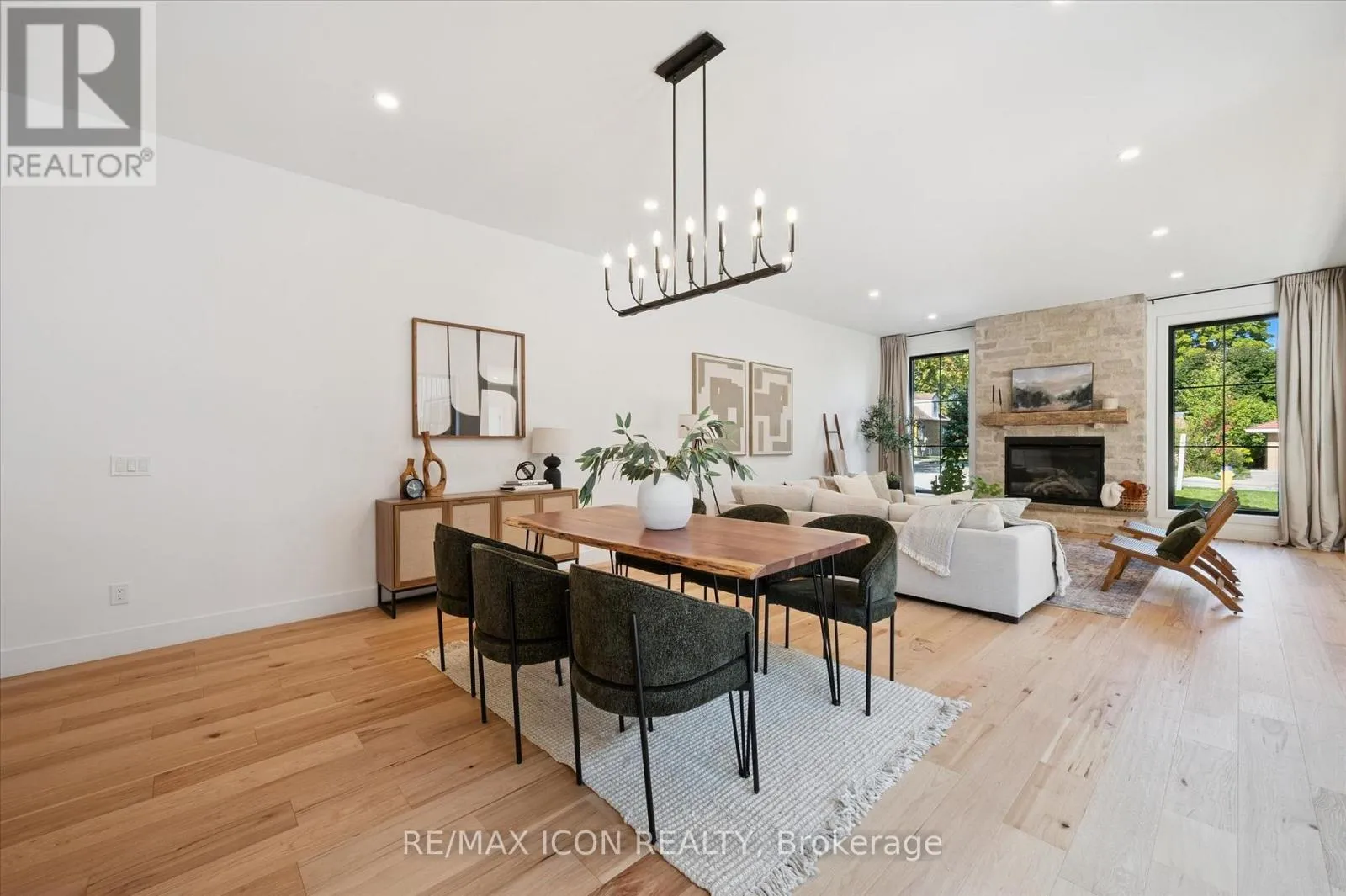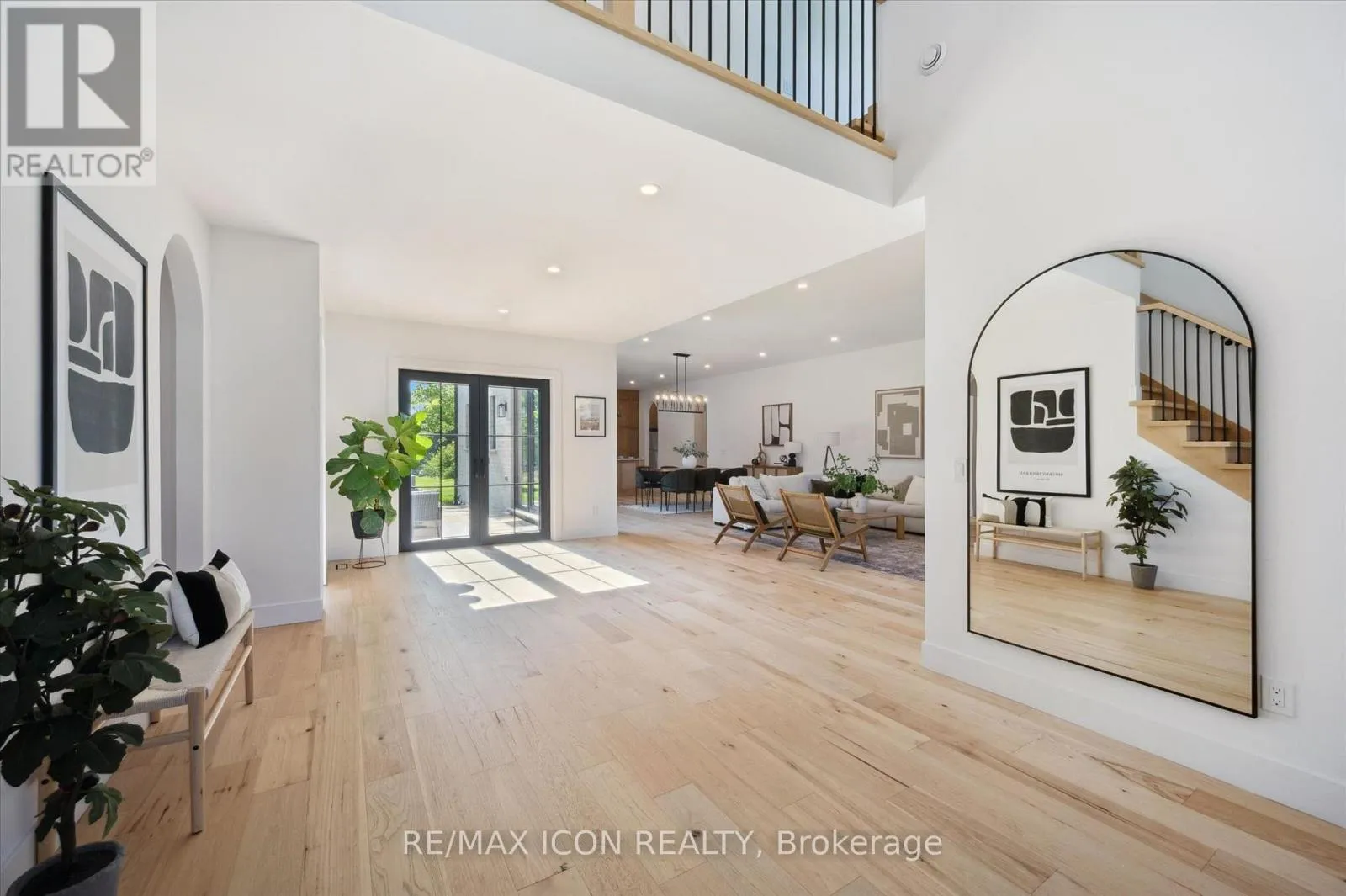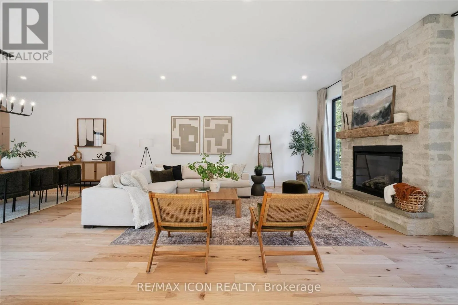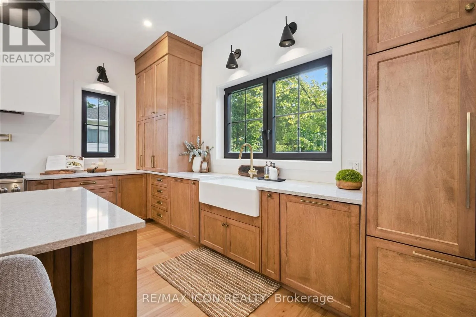 Cross Streets: Huron & Waterloo St. ** Directions: Peel Street to Huron Street. Welcome to 413 Huron Road in charming New Hamburg! A truly exceptional 5-bedroom, 4-bathroom home offering over 4,400 sq. ft. of finishedliving space, where thoughtful design meets high-end finishes and timeless craftsmanship. The exterior blends timeless materials like stone,brick, and barn board for a striking curb appeal, complemented by a concrete driveway with integrated drainage and underground downspoutmanagement. Inside, the home is flooded with natural light thanks to oversized Raven European tilt/turn windows, which beautifully highlight theneutral tones, organic finishes, and natural hickory engineered hardwood throughout. The heart of the home is the handcrafted maple kitchenand adjoining butler's pantry, featuring a Monogram gas oven/range, built-in 36" Fisher & Paykel fridge and dishwasher, an apron sink, andample storage, ideal for everyday living and entertaining alike. A separate entrance leads to a private granny flat, perfect for multi-generationalliving or guests. Comfort is maximized with multi-zone climate control, a hot water recirculation line for instant hot water to the second-floorbathrooms, and a large Lennox natural gas fireplace for cozy evenings. Additional features include a custom vanity in the foyer bath, VIGOfaucets, Red Oak stairs, and a master suite boasting oversized windows and Italian tile finishes. The home is equipped with a 200 AMP electricalpanel, water softener, and plenty of storage including a large shed. Outside, enjoy an incredible entertaining space with a wood deck and anexpansive grass area set on 3/4 acre in town perfect for relaxing or hosting gatherings. This is a rare blend of luxury, functionality, andthoughtful design in a peaceful, sought-after location. (id:27476)