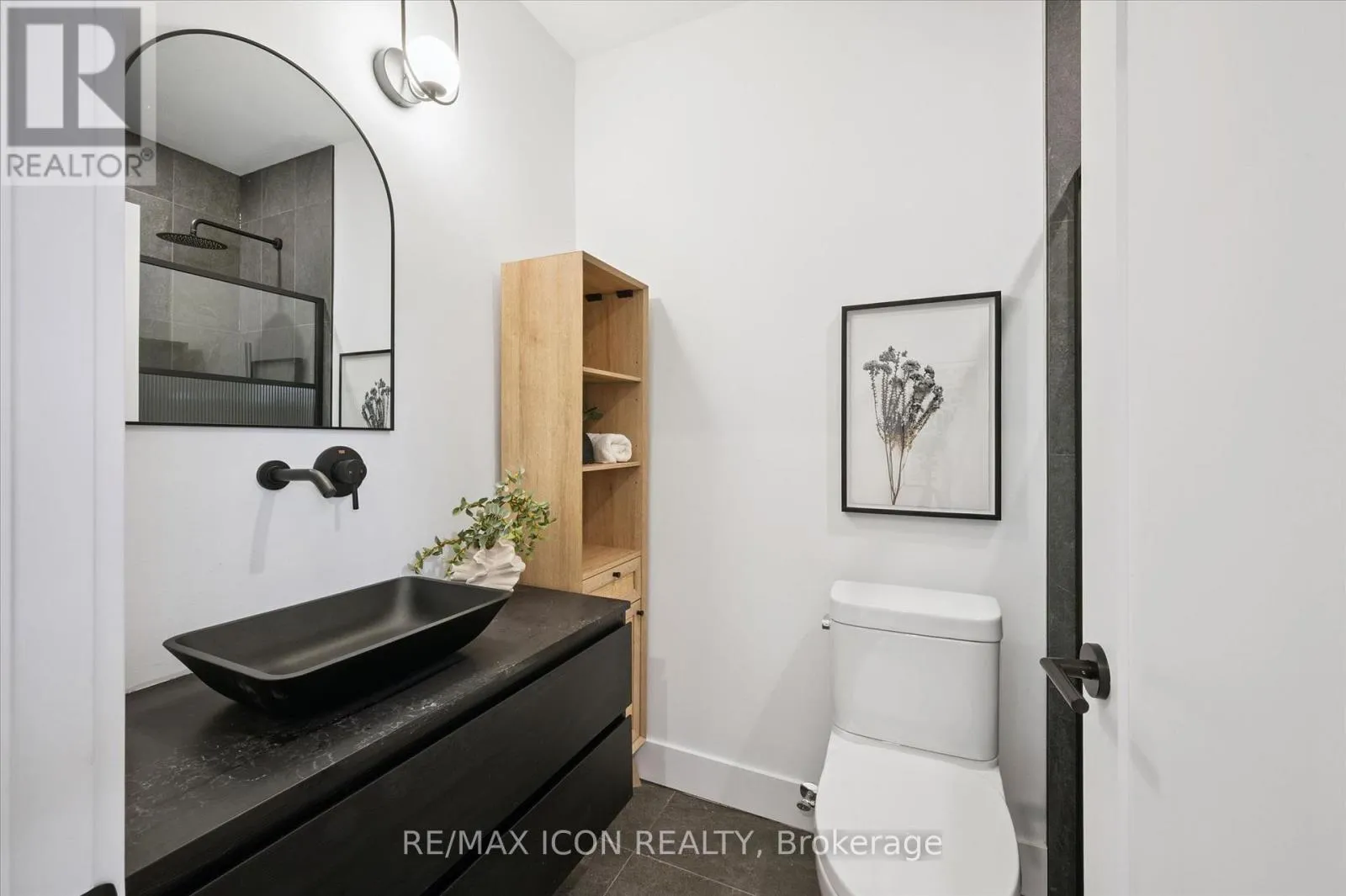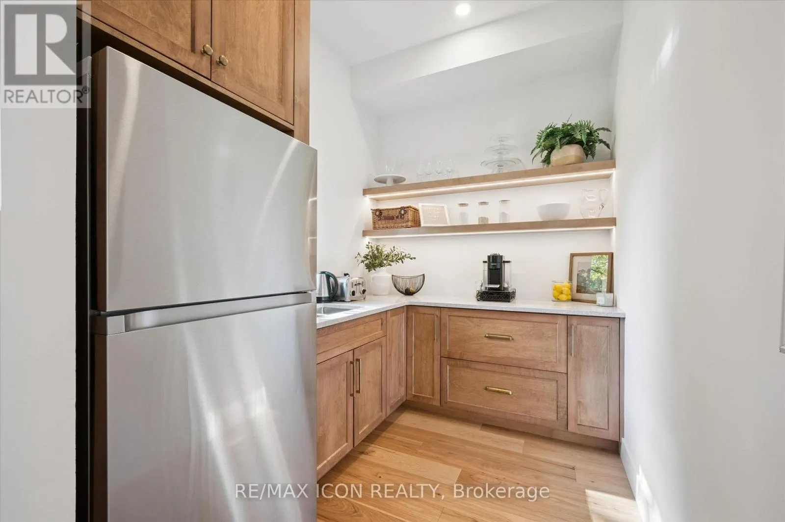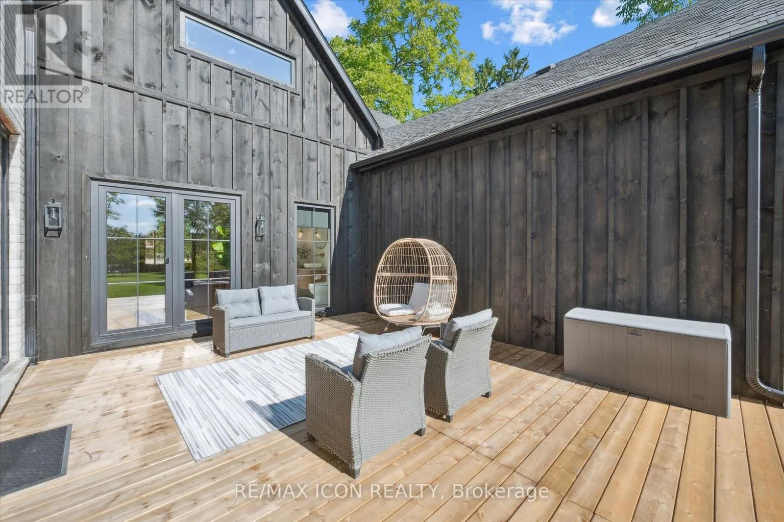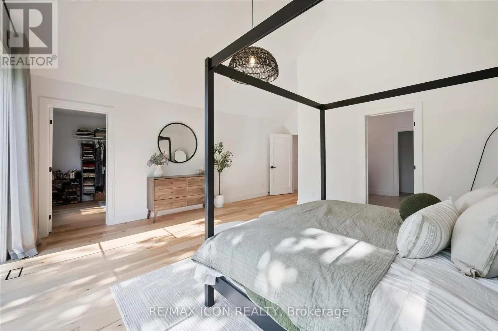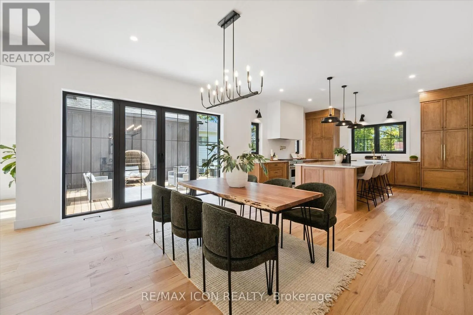 Cross Streets: Huron & Waterloo St. ** Directions: Peel Street to Huron Street. Welcome to 413 Huron Road in charming New Hamburg! A truly exceptional 5-bedroom, 4-bathroom home offering over 4,400 sq. ft. of finishedliving space, where thoughtful design meets high-end finishes and timeless craftsmanship. The exterior blends timeless materials like stone,brick, and barn board for a striking curb appeal, complemented by a concrete driveway with integrated drainage and underground downspoutmanagement. Inside, the home is flooded with natural light thanks to oversized Raven European tilt/turn windows, which beautifully highlight theneutral tones, organic finishes, and natural hickory engineered hardwood throughout. The heart of the home is the handcrafted maple kitchenand adjoining butler's pantry, featuring a Monogram gas oven/range, built-in 36" Fisher & Paykel fridge and dishwasher, an apron sink, andample storage, ideal for everyday living and entertaining alike. A separate entrance leads to a private granny flat, perfect for multi-generationalliving or guests. Comfort is maximized with multi-zone climate control, a hot water recirculation line for instant hot water to the second-floorbathrooms, and a large Lennox natural gas fireplace for cozy evenings. Additional features include a custom vanity in the foyer bath, VIGOfaucets, Red Oak stairs, and a master suite boasting oversized windows and Italian tile finishes. The home is equipped with a 200 AMP electricalpanel, water softener, and plenty of storage including a large shed. Outside, enjoy an incredible entertaining space with a wood deck and anexpansive grass area set on 3/4 acre in town perfect for relaxing or hosting gatherings. This is a rare blend of luxury, functionality, andthoughtful design in a peaceful, sought-after location. (id:27476)