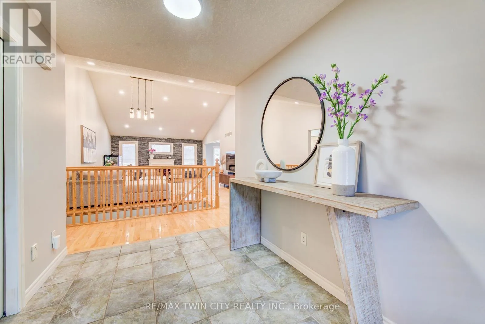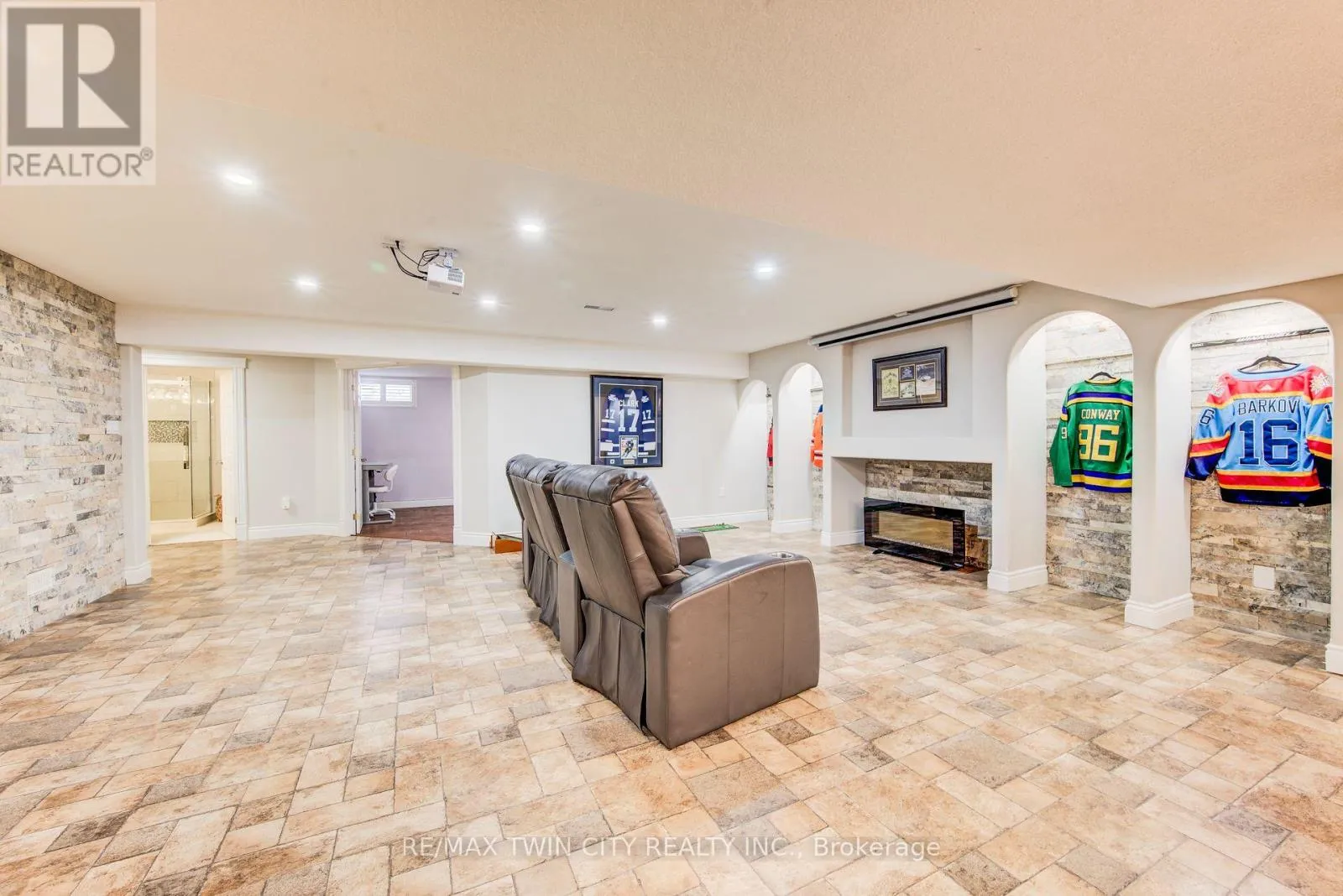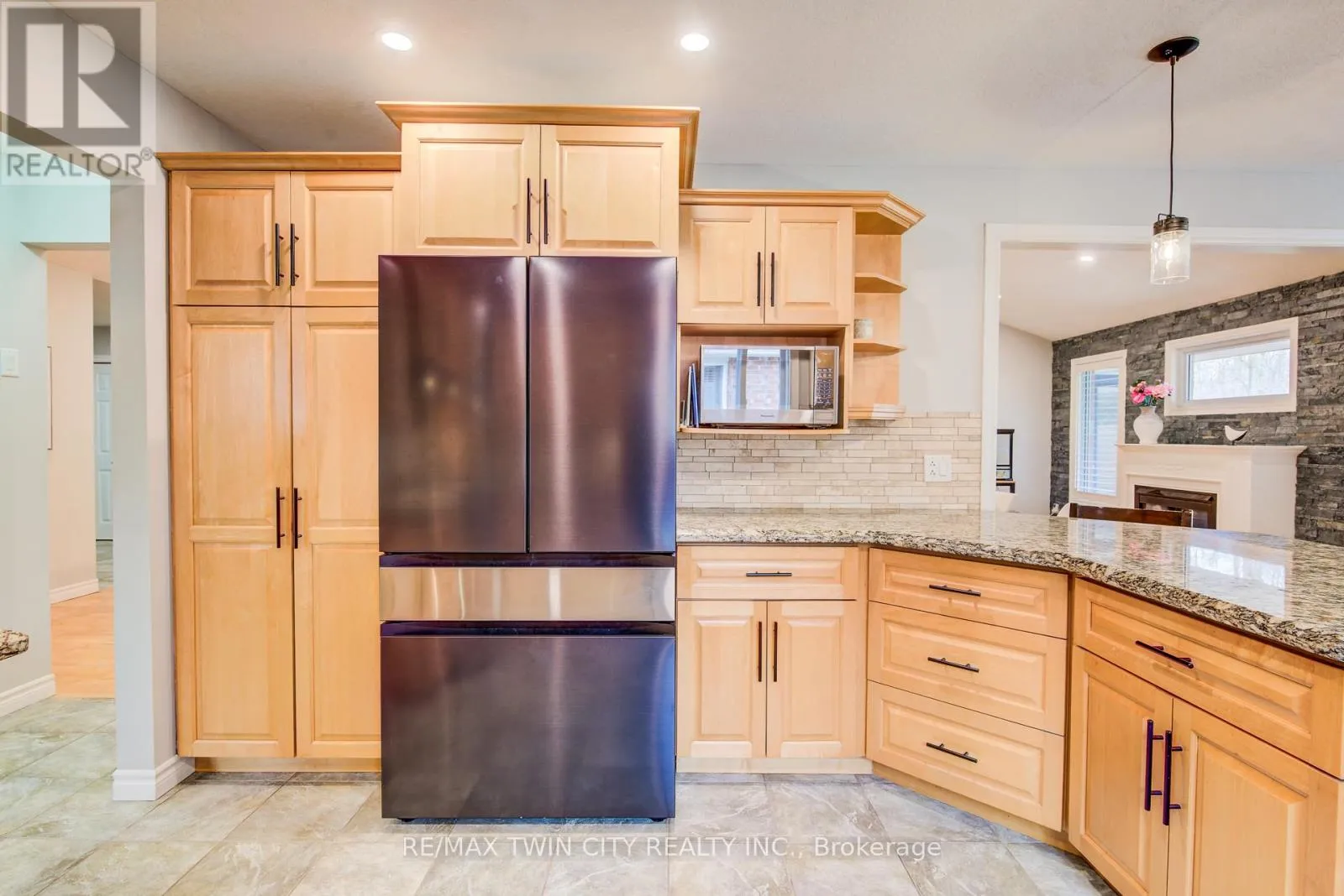 Cross Streets: Waterloo St / Victoria St. ** Directions: Waterloo St to Laschinger Blvd. THIS LARGE AIRY BRICK BUNGALOW IS WELL SITUATED ON A PIE LOT ON ONE OF THE NICEST STREETS IN THE BEAUTIFUL TOWN OF NEW HAMBURG! THE LARGE INVITING FOYER OPENS ONTO THE GREAT ROOM WITH VAULTED CEILINGS AND A GAS FIREPLACE. THE CUSTOM CERWOOD KITCHEN HAS PLENTY OF STORAGE SPACE, GAS RANGE, NEW FRIDGE AND A GRANITE PENINSULA FOR THE CHEF OF THE FAMILY AS WELL AS A GOOD SIZED EATING AREA WITH A DOOR TO THE FENCED REAR YARD BACKING ON TO PROTECTED FOREST AREA. THE PERFECT SETTING TO RELAX AND ENTERTAIN FAMILY AND FRIENDS. NICE SIZED PRIVATE PRIMARY BEDROOM WITH ENSUITE AND WALK IN CLOSET. 2 MORE BRIGHT BEDROOMS AND A FULL BATH COMPLETE THE MAIN FLOOR. THE FULLY FINISHED BASEMENT ADDS PLENTY OF LIVING SPACE. 2 MORE LARGE BEDROOMS AND A FULL BATH IN THE BASEMENT ARE PERFECT FOR THE TEENAGERS. HUGE REC ROOM WITH A GAMES ROOM BESIDE IS PERFECT FOR WATCHING A MOVIE OR HAVING YOUR FRIENDS IN TO WATCH THE BIG GAME. CUSTOM BUILT BY A LOCAL BUIDER THIS HOME IS WORTH A LOOK! NEW FRIDGE AND DISHWASHER IN 2025, ROOF 2019. (id:27476)