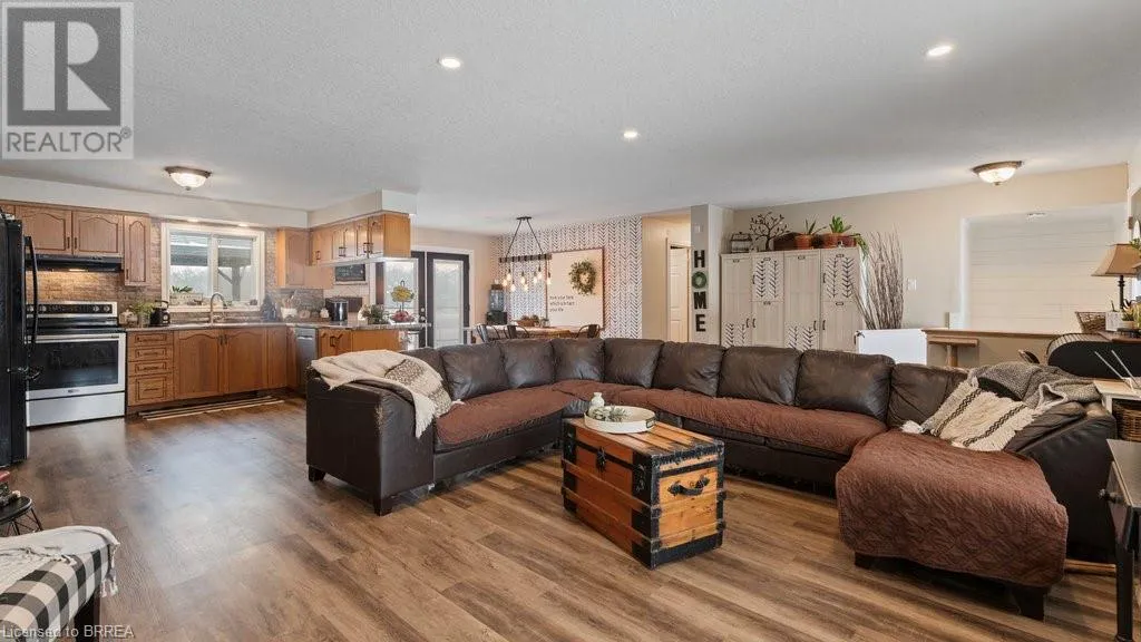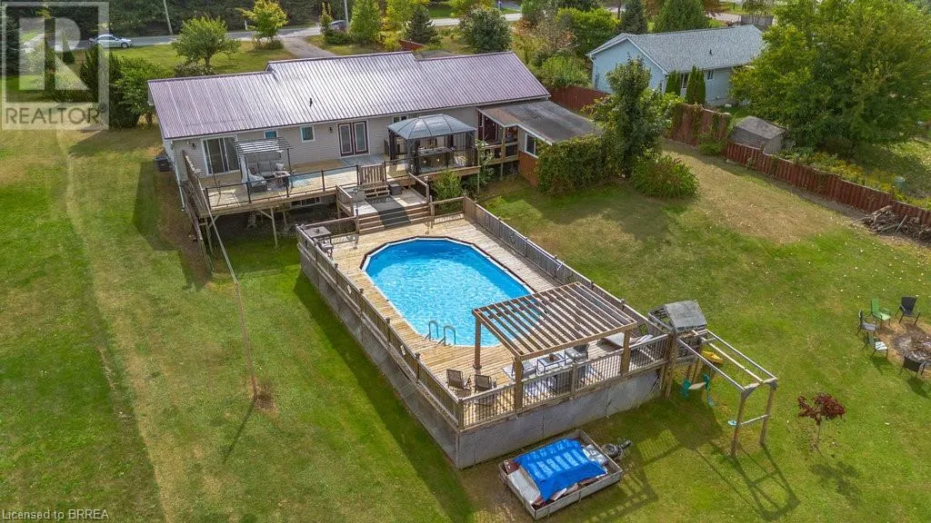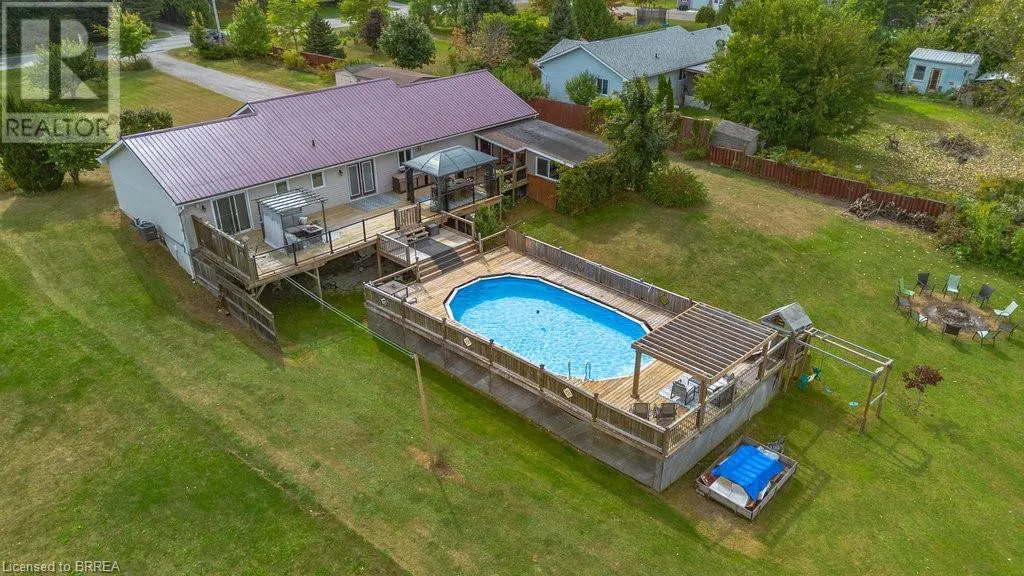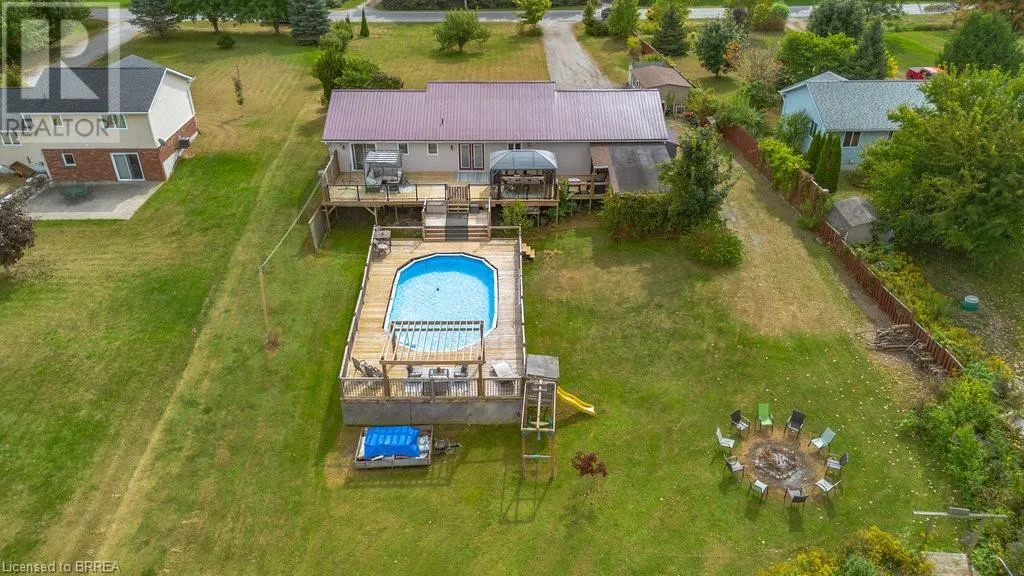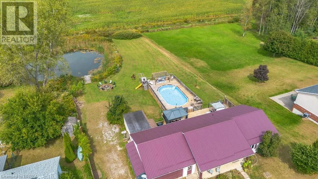 Pleasant Ridge Road to Concession Rd 3, Townsend Welcome to 527 Concession 3 Townsend Rd. This custom built 3+4 bedroom bungalow with walkout sits on an acre of property with roughly 3000sqft of finished area located in the beautiful Wilsonville township. Walk into the open concept great room which includes lots of natural light throughout the living room kitchen and dinette. Boasting 3 bedrooms on the main floor, as well as 3 bathrooms. The primary bedroom features an ensuite and patio doors to the end to end second level feature deck. The basement level includes a rec room with patios doors to rear walkout yard. This homes rear yard has views of rolling fields and a pond and features everything you could want in a backyard oasis. Three-tier deck with heated above ground pool in the summer. Or in the winter watch the sun set over the fields from your coveted hot tub. A definite must see. New Steel roof in 2018, a/c 2018, new gas pool heater in 2018. With a pond, huge driveway , detached workshop with hydro and no rear neighbours this is a perfect country retreat. (id:27476)