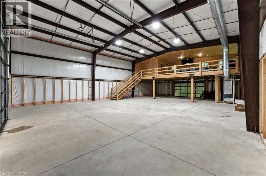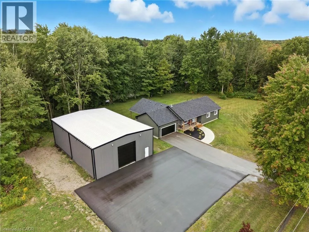 Turn east off of Cockshutt Rd to Indian Line Discover the Ultimate Live-Work Sanctuary! Escape the city and embrace rural luxury at this stunning custom-built haven set on 3.81 acres of serene privacy. Boasting 4 bedrooms, 2.5 bathrooms and 2,436 sq/ft of modern comfort, this home features an open-concept layout, sleek upgrades throughout, and a cozy living room anchored by a timber-mantled gas fireplace - perfect for family gatherings or quiet evenings. Entertain or unwind on your 20' x 30' covered patio with overhead LED lighting, and a ceiling fan, making it the perfect place to BBQ for year-round enjoyment. The real showstopper? A 40' x 60' Kodiak steel shop - a commercial grade dream build in 2023. Complete with 19' ceilings, a Douglas-fir mezzanine office with built-in bar, heating, plumbing rough-in, dual oversized garage doors, and a cozy fireplace - this space is tailor made for entrepreneurs, artisans, truck drivers, or serious hobbyists. All of this comes with the lifestyle perks of Wilsonville - quiet country roads, a close-knit community, easy access to Highway 403, and just a short drive to Simcoe, Brantford, or Hamilton. Here, you'll find the best of both worlds: rural tranquility with every convenience still within reach. It's more than a home, it's a lifestyle: rural tranquility, space to work AND play, all minutes from town. If you're looking for the ultimate flexibility, reside, run your business, store and maintain equipment - this property will exceed your expectations. (id:27476)