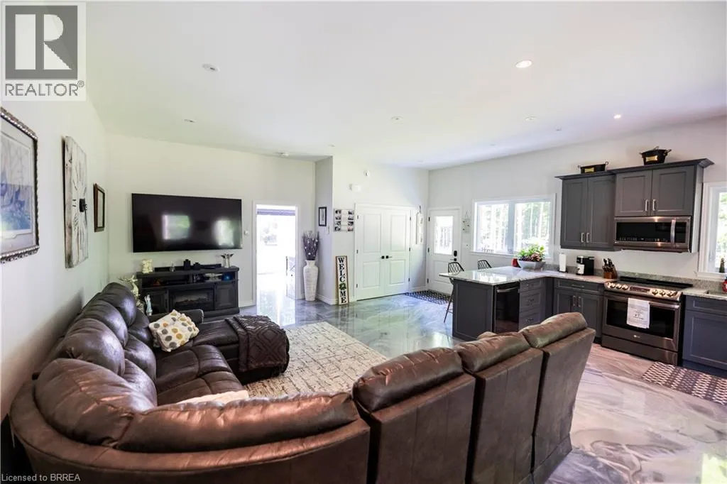 Hwy 24 south to Concession 3, head east on Conc 3 Property is located on North Side of Conc 3. Opportunities like this are truly rare. Welcome to this exceptional newly built bungalow set on 12 stunning acres in the heart of Norfolk, offering privacy, space, and versatility in a peaceful rural setting. The main residence offers approximately 2,250 sq ft of finished main-floor living space and has been thoughtfully designed for both comfort and entertaining. Inside, youâll find a bright open-concept layout where the kitchen, living, and dining areas flow seamlessly together. The kitchen features generous cabinetry, a large central island and a hidden walk-in pantry, perfect for everyday living and hosting gatherings. The primary suite provides a private retreat with a spa-inspired ensuite and walk-in closet, while two additional well-appointed bedrooms, two more full bathrooms and main floor laundry complete the level. The unfinished basement offers excellent future potential for added living space, whether for bedrooms, recreation, or storage. Adding incredible functionality is the detached 52â x 40â shop, offering approximately 2,000 sq ft of total space. This building is divided into a large workshop/garage area and a private living space ideal for guests, extended family, or comfortable multi-generational living, complete with its own kitchen, bedroom, bathrooms and laundry. Whether used as a workspace, hobby shop or secondary suite, this structure offers outstanding flexibility. Outside, enjoy the covered front porch, covered rear deck and expansive concrete patio, perfect for relaxing and taking in the surrounding natural beauty. Approximately 2.5 acres are cleared around the home and buildings, with the remaining land preserved as peaceful bushland, ideal for trails, privacy and nature lovers. This remarkable property delivers the perfect balance of modern living and country serenity, offering endless potential for families or anyone seeking space, privacy and a true rural retreat. (id:27476)