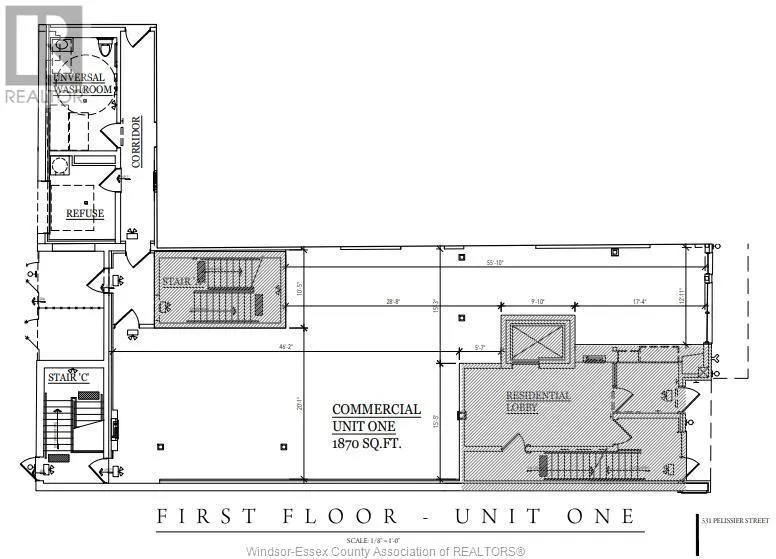 WYANDOTTE TO PELISSIER There is nothing like this space available in downtown Windsor. Brand new main floor space ready to go in ""The Hive on Pelissier"" a boutique 24 unit condominium building in the heart of downtown Windsor. Bring us your ideas and together we can work to bring your vision to reality. This brand new blank slate space offers 1870 sqft plus the option to lease an additional 1203 sqft in the lower level. Turn key build outs available. Excellent visibility among boutique shops, restaurants, law and professional offices, USA commuter traffic, downtown St Clair College & U of W students and the downtown Windsor Farmers Market. Join the Downtown Windsor Renascence with multiple residential projects under development, completed and under construction which plan to add thousands of residents to the downtown core. Call today for more information or a personal tour. CAMS/Additional rent TBD. (id:27476)