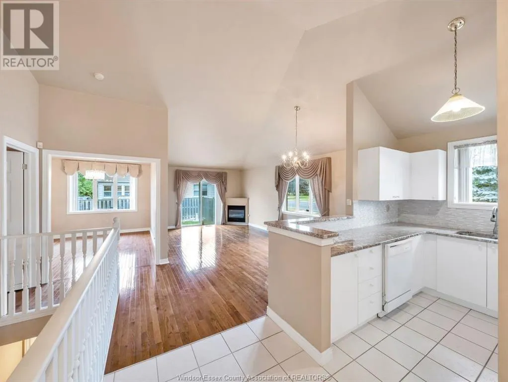 Welcome to this well-maintained end unit ranch-style semi-detached townhome in the heart of South Windsor - just a short walk to Huron Lodge, St. Clair College, and close to all major amenities. Offering the ease of main floor living, this home features 3 bedrooms and 2 full bathrooms, including a spacious primary bedroom with walk-in closet and ensuite. One bedroom has been converted into a formal dining room but can easily be returned to its original use. Enjoy gleaming hardwood floors, a cozy gas fireplace in the living room, and a bright kitchen with granite countertops. Main floor laundry adds to the convenience, along with generous storage throughout. The full unfinished basement offers endless potential. Furnace and AC are just 3 years old and all Kitec plumbing has just recently been replaced. Association fee of $220/month includes lawn care, snow removal, and exterior maintenance for worry-free living. (id:27476)