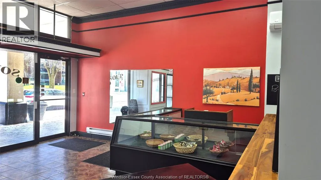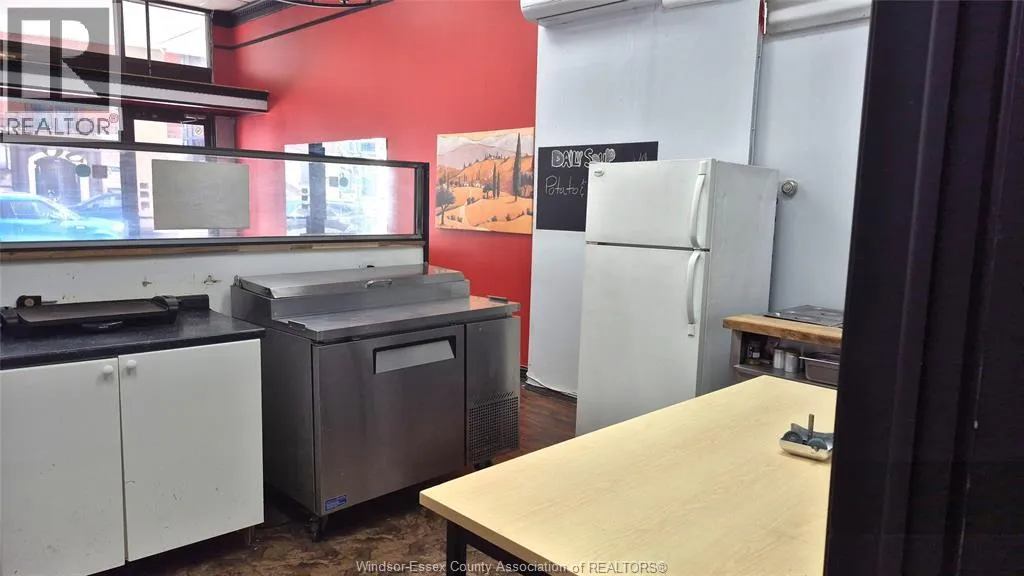 Prime Commercial Space in Downtown Windsor - 116 Park St. W. Formerly home to a well-known sandwich shop, this commercial unit offers an excellent opportunity for your next business venture. Situated in the heart of downtown Windsor and forming part of one of the largest condominium complexes in the city, the unit benefits from a strong built-in customer base as well as steady street traffic. The space features a functional layout, 2-piece bathroom, and a kitchen setup with equipment that may be included with the lease (note: no commercial hood on site). This flexible space is ideal for a variety of uses, including a cold sandwich/deli shop, cafe, takeout restaurant, or even a hair salon or beauty service business. With great street visibility and surrounded by offices, residential buildings, and high pedestrian activity, this location is well-positioned for success. Gross Lease: $2,000/month (plus electricity only) Included in Rent: Condo fees, water & property tax. (id:27476)