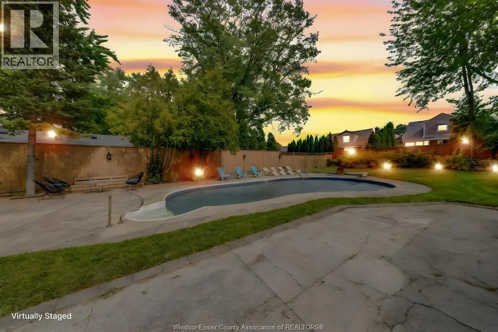 Elegant and inviting, this beautifully renovated 3 bedroom, 4 bathroom home sits on an oversized lot across from Goose Bay Park, offering breathtaking unobstructed views of the Detroit River. The primary suite boasts a luxurious spa-inspired ensuite, while 4 fireplaces add warmth and character throughout the home. A massive chefâs kitchen with top-of-the-line finishes opens into spacious living areas, perfect for entertaining or enjoying the beautiful views from your 4 season sunroom! The lower level features a private movie theatre for family nights or hosting guests. Step outside to a backyard retreat with an inground pool, pergola-lounge area, and plenty of space for outdoor activities. A detached 2-car garage with finished driveway completes this one-of-a-kind property. Major updates include kitchen & bathrooms (2022), roof & siding (2022), boiler system (approx. 2019), Mitsubishi AC unit (serviced 2023 & regularly), a great amount of windows redone in 2022 & more! In close proximity to restaurants, schools, walking trails, Caesars Casino Windsor, yet just far enough to still enjoy your peace and quiet. Combining luxury, character, and comfort, this home is truly a rare find. (id:27476)