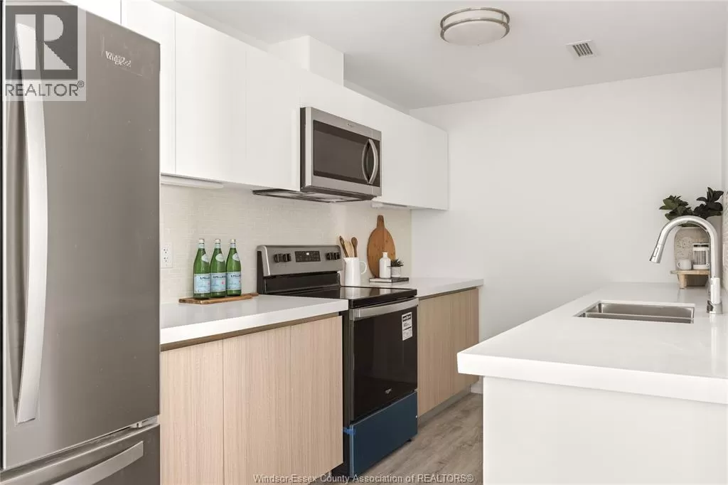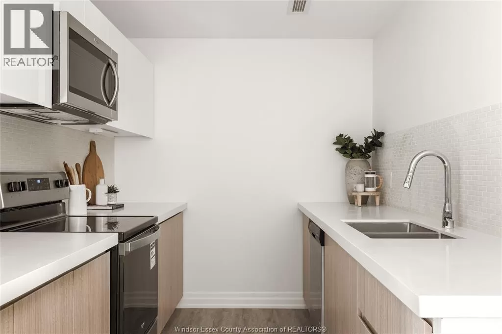 Welcome to Forest Glade Horizons! As one of Windsor's newest built condominiums, this unit is brand new, never lived in and set among a peaceful community, just steps away from Derwent park, shopping, transit and major highways. This 1095 square foot unit features 2 bedrooms, 2 bathrooms, an open concept living and dining room, galley kitchen and a bonus den. The patio is a large 95 square foot balcony perfect to enjoy those gorgeous sunsets. With in suite laundry and one parking spot included, this unit is the whole package. You don't want to miss out on these features and finishes, come check out this unit today. (id:27476)