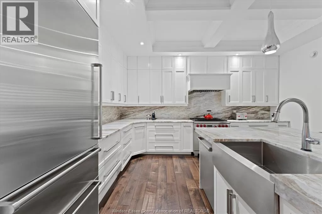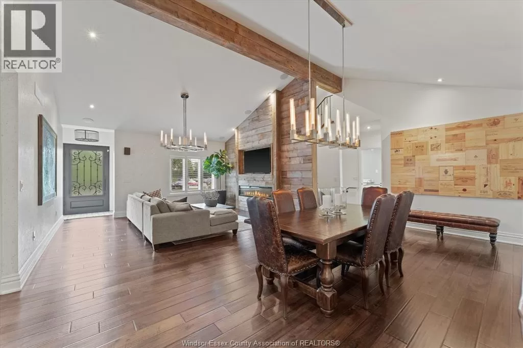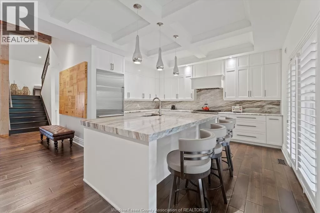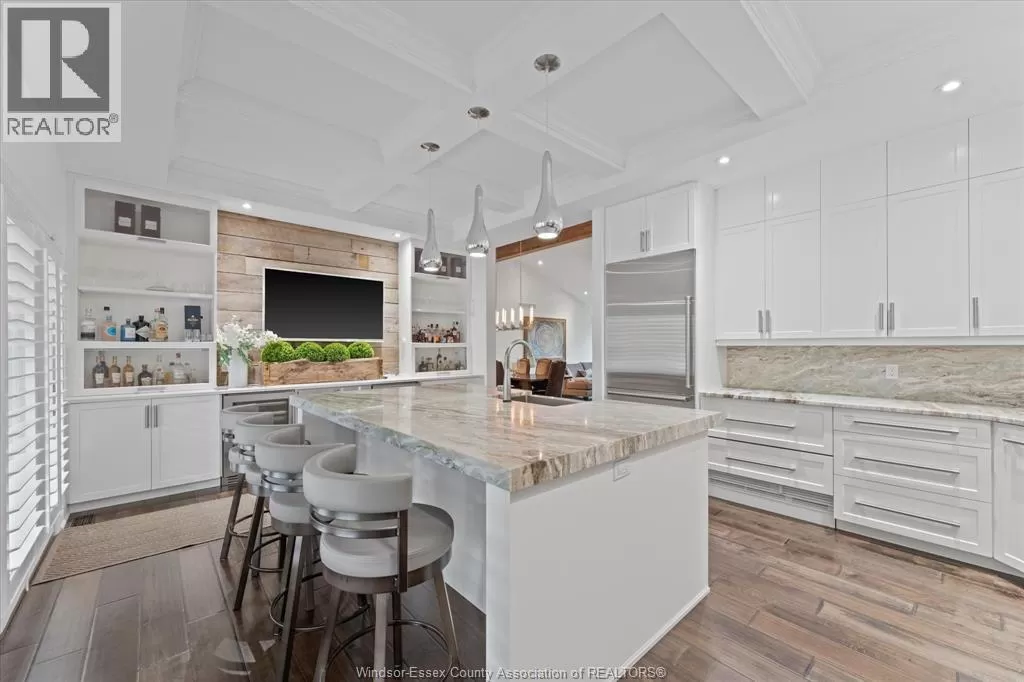 Custom-designed, one-of-a-kind ranch-style home, perfectly situated across from Roseland Golf Course. This meticulously maintained 3,100 sq. ft. gem boasts a solid stone exterior and features an attached 2.5-car garage with epoxy floors. An additional large detached heated garage, currently serving as a game room, offers endless possibilities for extra living space. The interiors are equally impressive, with rich hardwood floors throughout and custom wood beams adorning the vaulted ceilings. The gourmet kitchen is a chef's dream, equipped with top-of-the-line Wolf and Sub-Zero appliances, granite countertops, and convenient refrigerator drawers. Step outside to a multifunctional exterior area that includes a built -in hot tub on a covered back porch, ideal for yearr ound relaxation. Beautifully landscaped yard is enhanced with a turf lawn, an underground sprinkler system, and custom-built storage shed. Just 8 years old, this home is a rare blend of modern luxury and timeless elegance. (id:27476)