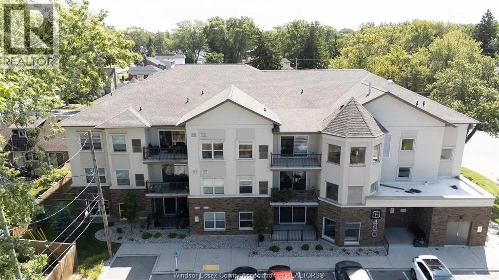 WYANDOTTE ST. E TO FAIRVIEW BLVD. Welcome to 480 Fairview Ave Unit #203, Windsor, a stunning and modern 2-bedroom, 2-bathroom condo for SALE in a luxury boutique building built in 2020, perfectly situated in the heart of Riverside, one of the cityâs most desirable communities. This beautifully maintained home offers an inviting open-concept living and dining area designed for both style and function, with large windows that flood the space with natural light and convenient window blinds already installed for comfort and privacy. The bright and airy layout flows seamlessly to a private balcony, the perfect spot to enjoy your morning coffee, relax with a book, or unwind in the evening after a busy day. The thoughtfully designed floor plan includes a primary bedroom with an extended space ideal for a home office, reading nook, or personal retreat, making it an excellent fit for todayâs flexible lifestyle. Both bedrooms are generously sized, offering roomy closets and plenty of storage. The condo also features two full bathrooms for convenience, in-suite laundry, and comes complete with assigned parking and secure building access in a well-kept, newer development that emphasizes comfort and peace of mind. Just steps from the scenic Riverside Drive and Ganatchio Trail, youâll have easy access to waterfront paths perfect for walking, cycling, or simply enjoying the outdoors, while also being close to grocery stores, restaurants, cafes, public transit, and all the everyday essentials you could need. This is an ideal residence for professionals who want a modern and low-maintenance home close to the city, retirees seeking a safe and welcoming community with easy amenities, or small families who value both convenience and lifestyle. Combining the best of modern living with a highly desirable location, this condo offers the perfect balance of comfort, function, and style in a boutique building youâll be proud to call home. (id:27476)
