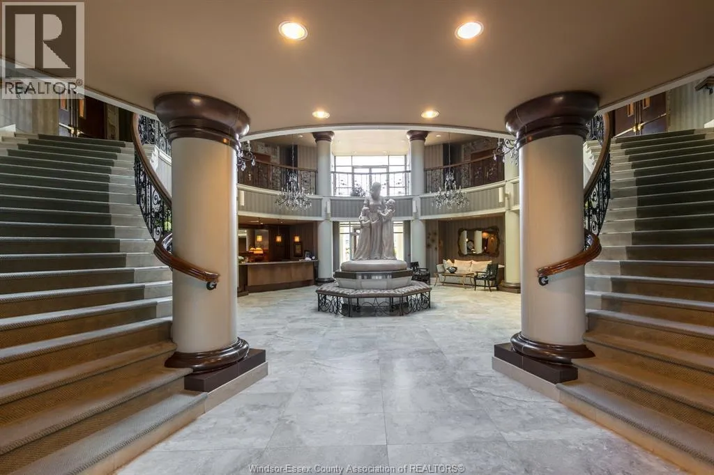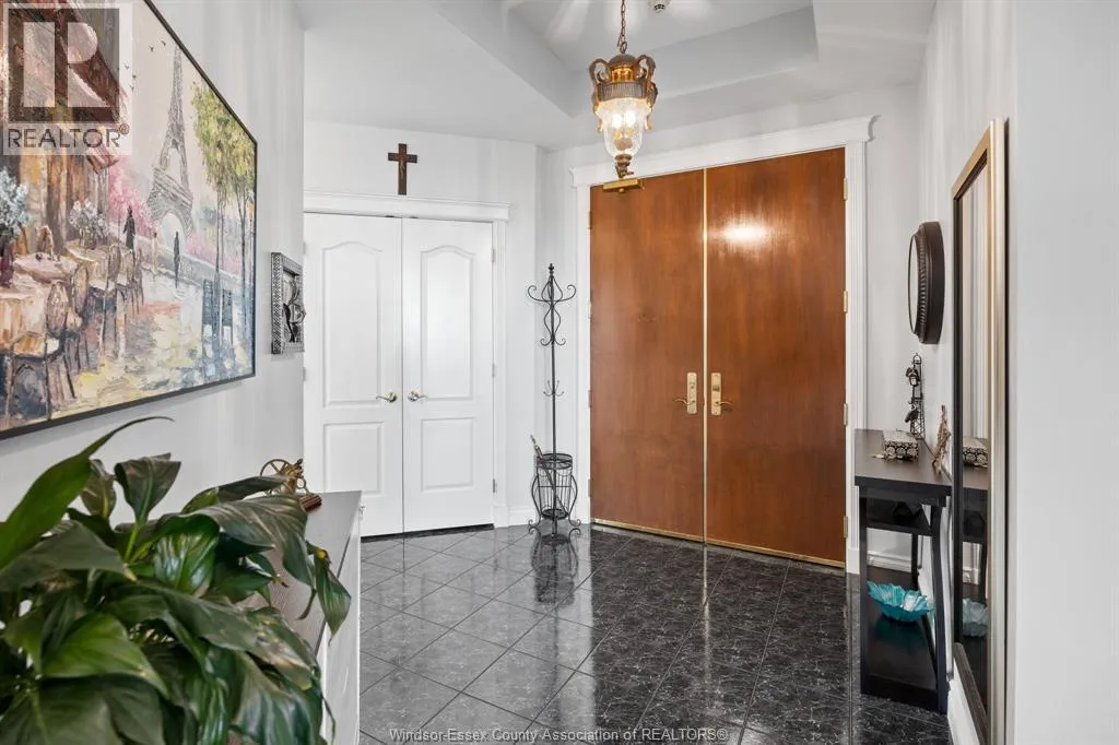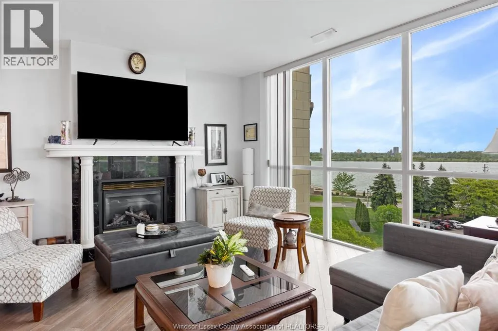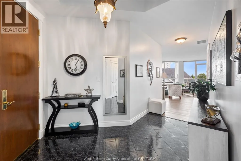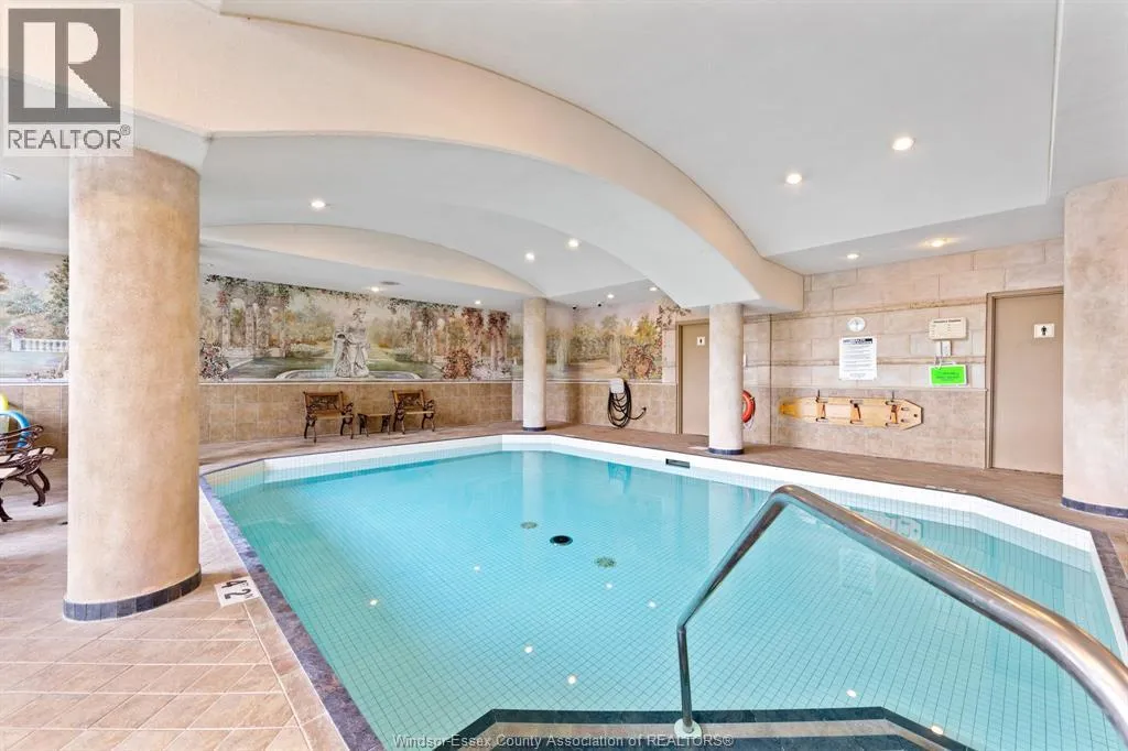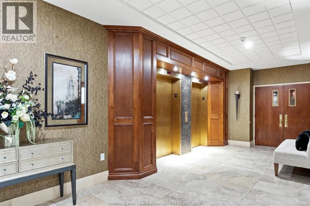 Experience pure luxury on the river at the Gates of Glengarda, one of the most sought-after developments in Windsor! As you step inside the grand lobby, you'll be greeted by a 24/7 concierge & security, making you feel safe & right at home. This beautifully appointed end unit features 2 bedrooms 2 bathrooms, updated engineered hardwood floors, & oversized windows that offer stunning views of the Detroit River. The open-concept living & dining area allows for easy enjoyment as you watch boats sail by. Step out onto your private balcony with minimal neighbors, & savour your morning coffee or an evening glass of wine. This unit also includes a new furnace (2023), 2 secure underground parking spaces & a large storage unit. The luxury condo building is loaded with amenities: indoor pool, sauna, hot tub, party room w/kitchen + utensils, meeting room, library, billiard room, gym, guest suite rental, car wash, & a outdoor balcony/patio area w/gas BBQs. This condominium truly has it all! (id:27476)
