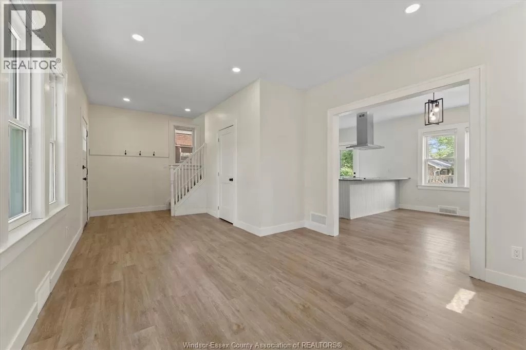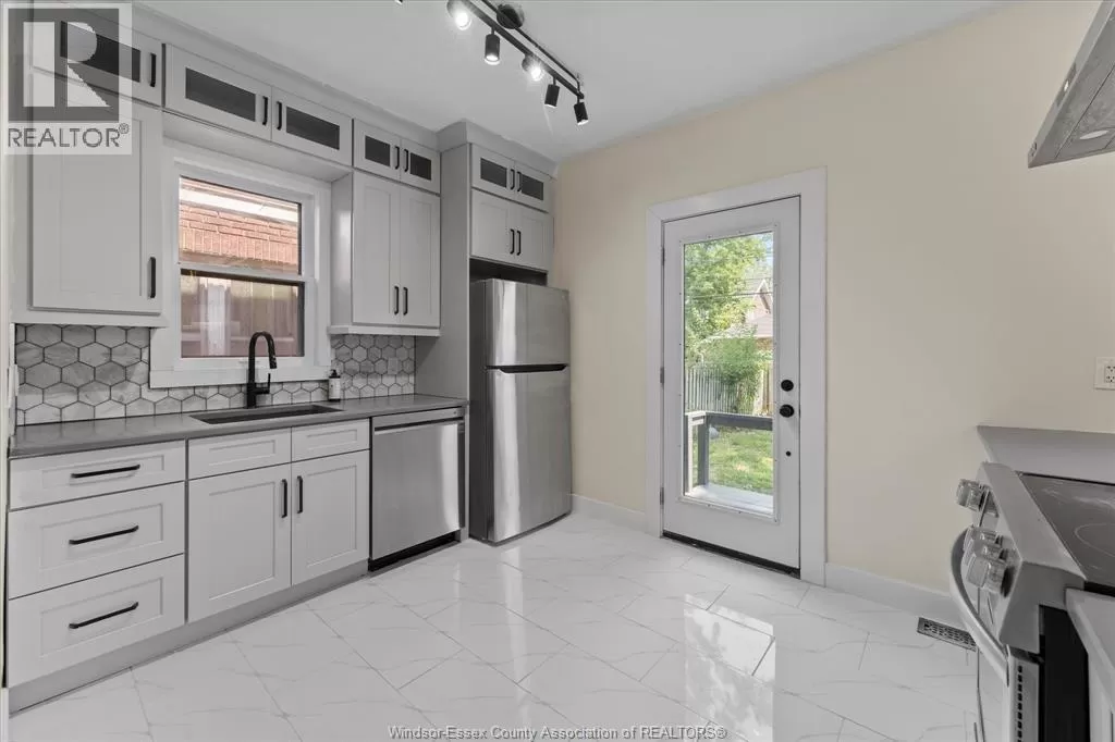 Solid 2-storey home in the heart of downtown Windsor! This charming property features 3 bedrooms and 1.5 baths, a beautifully remodeled kitchen, and an open-concept layout connecting the formal dining room and living area with a cozy fireplace. The main floor includes a convenient 2-piece bath, while the upper level offers 3 spacious bedrooms and a 4-piece bathroom. Enjoy beautiful newer flooring throughout, a full basement, an expansive sundeck overlooking a fully fenced yard for privacy and security, and convenient rear parking. A great buy whether youâre looking for a home for your family or a solid investment property. (id:27476)
