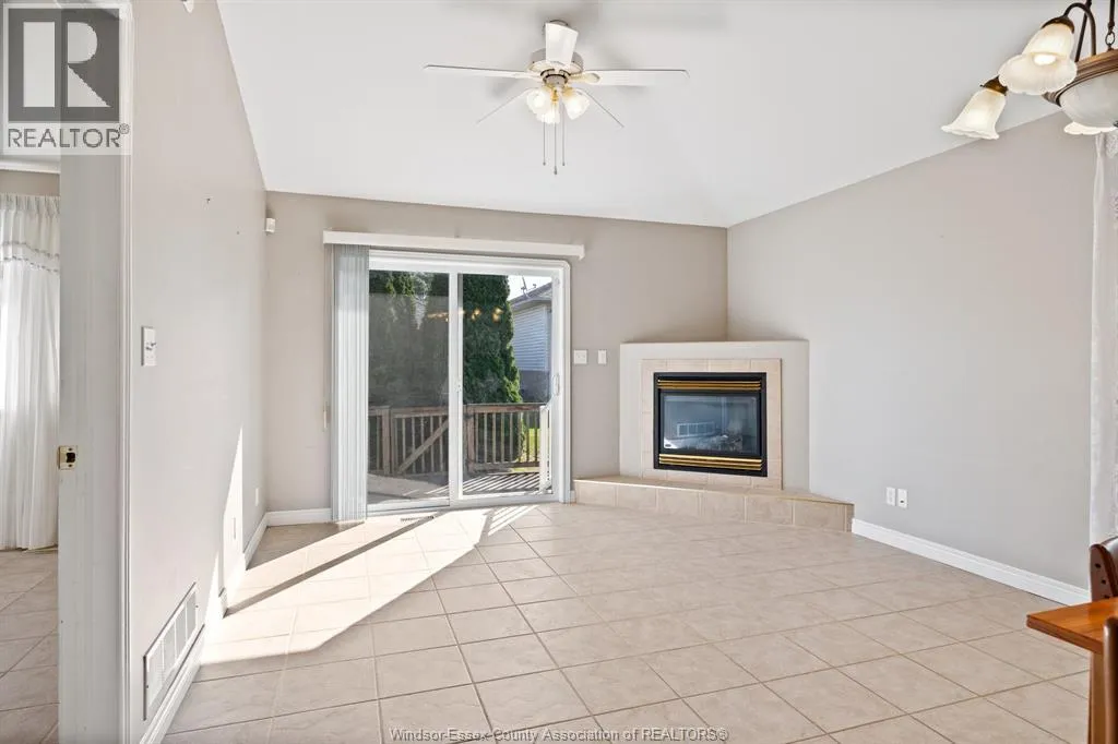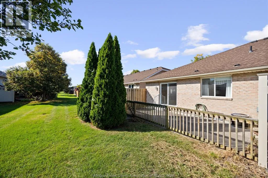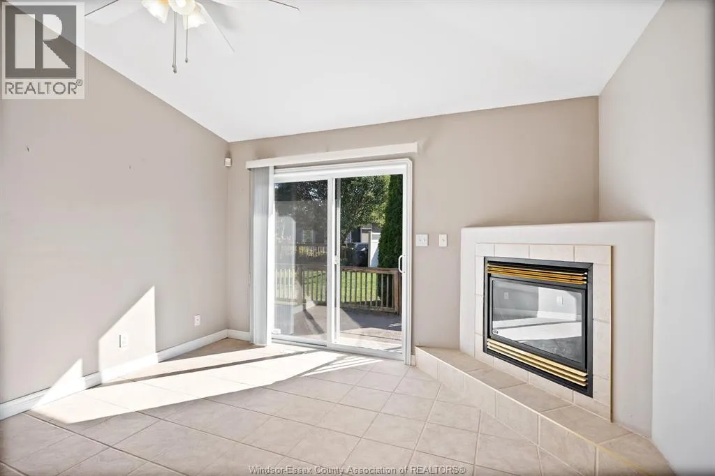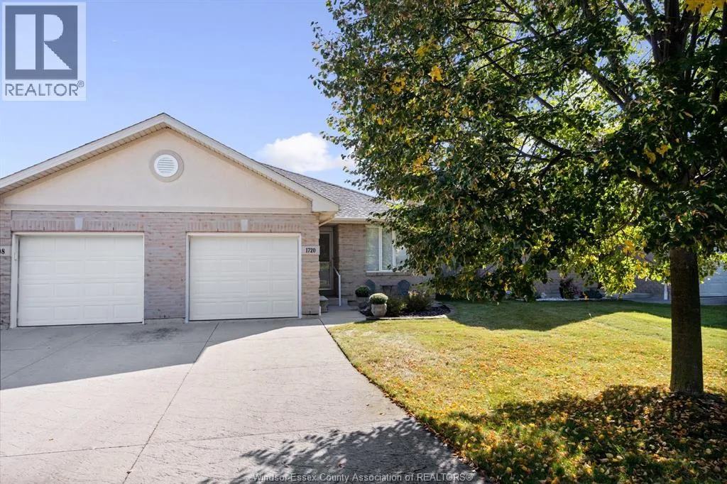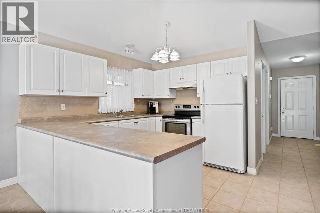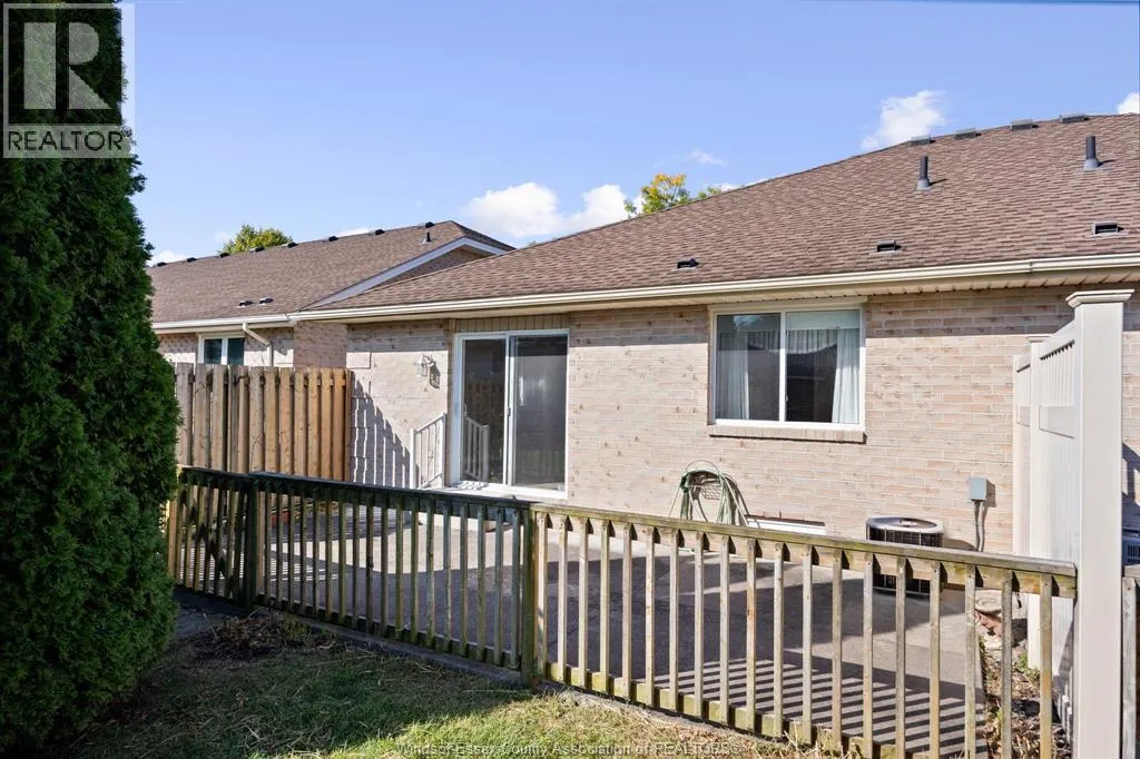 Located in the highly sought-after Blue Heron Pointe community in East Windsor, just off Banwell Road, this well-maintained and solidly built Mastercraft twin villa townhome is being offered for sale by the original owner. This open concept ranch-style home offers approximately 1,061 square feet of living space and features 2 bedrooms and 2 full bathrooms. The spacious primary bedroom includes a walk-in closet and private ensuite bath, while the convenient main floor laundry adds everyday ease. The home boasts ceramic flooring throughout, a large kitchen with ample storage, and a bright dining and living area highlighted by a cozy gas fireplace and sliding glass doors leading to a private cement patio. Additional features include an attached garage, an alarm system, underground sprinklers, and a sump pump with water pressure backup. The unfinished basement with a roughed-in bathroom provides a great opportunity to customize the space to your needs. Appliances fridge, stove, dishwasher. (id:27476)