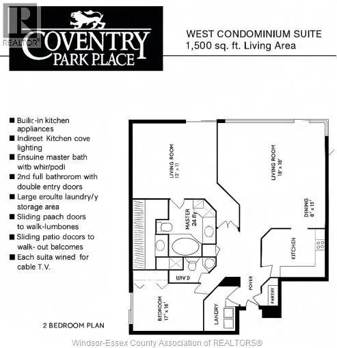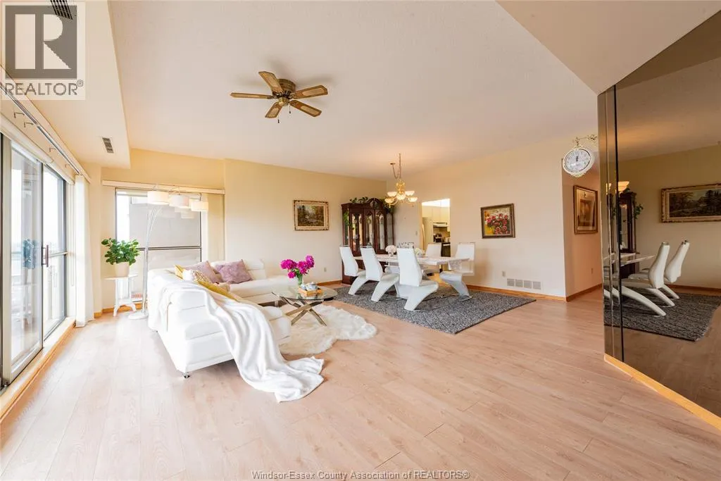 Welcome to Coventry Park Place â one of Windsorâs premier waterfront condos! This 9th-floor residence offers ~1,500 sq. ft. of open-concept living with 2 bedrooms, 2 baths, and stunning Detroit River views. Features include a bright living/dining area, updated kitchen with newer appliances (dishwasher 2025, stove/fridge 2024), new furnace/AC (2025), and a large balcony accessible from the primary suite. The primary bedroom has a walk-in closet and 5-pc ensuite with tub and shower. Extras: 2nd bedroom/office, in-unit laundry, 2 underground parking spots, storage locker, and premium amenitiesâpool, sauna, gym, party room, concierge, and car wash. Prime location near battery plant, Amazon, schools, shopping, trails, Hwy 401 & airport. Bus stop nearby. Rent $2,695 + electricity. Application form, Employment proof, credit check, references, and first/last month required. Furnished option available. (id:27476)
