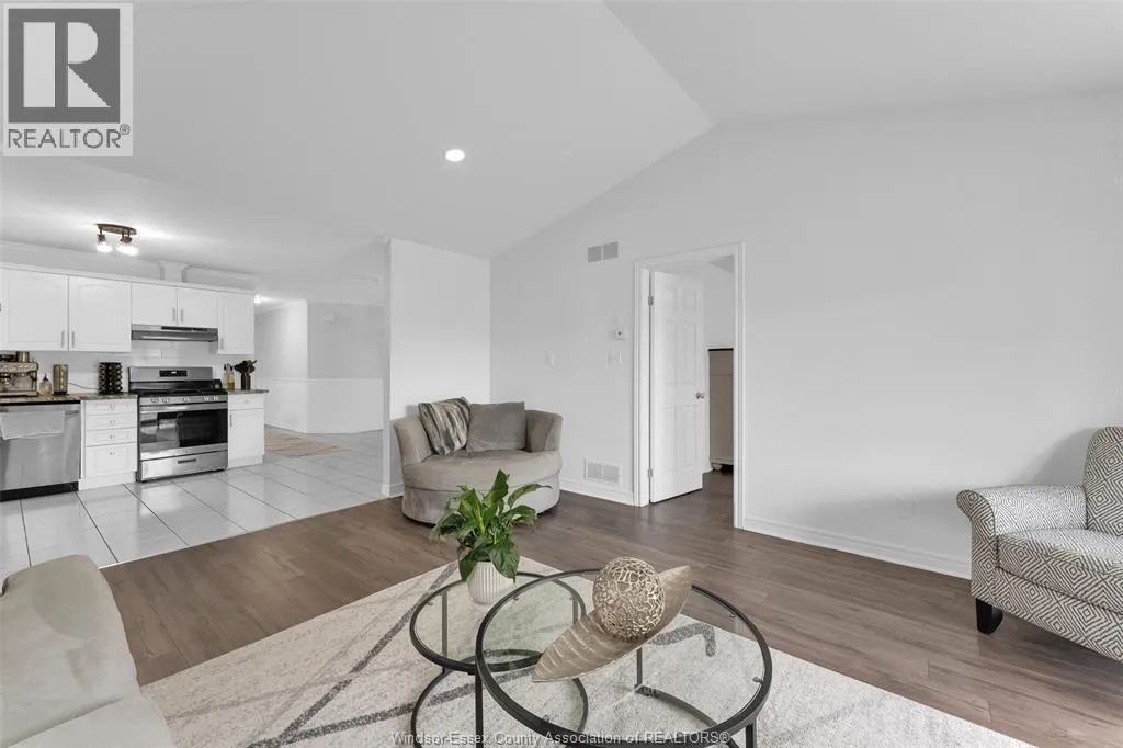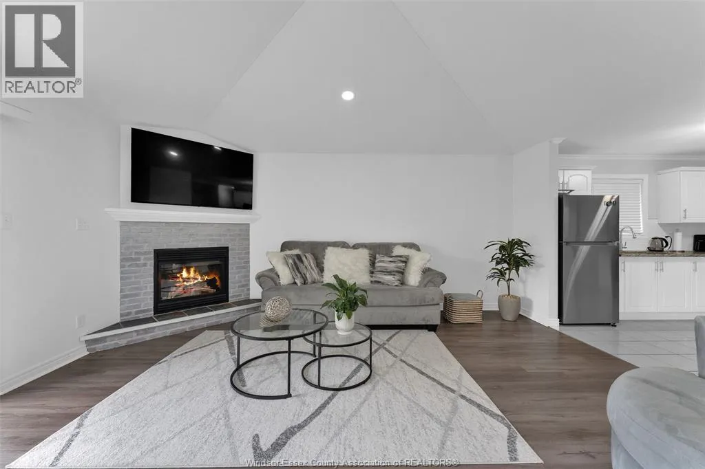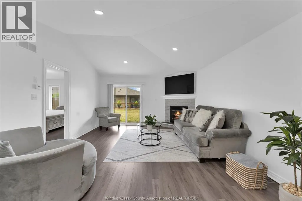 Welcome to this beautifully maintained end unit townhouse located in a desirable, family-friendly neighborhood in Windsorâs East side close to walking trails, WFCU Centre & the NextStar battery plant. Featuring 2 spacious bedrooms and 2 full bathrooms, including a private en-suite, this home offers comfort and convenience. The open-concept layout is enhanced by soaring vaulted ceilings, gas fireplace & sleek pot lights, creating a bright and airy living space perfect for both relaxing and entertaining. Enjoy the ease of an attached one-car garage and the potential of an unfinished basement, ready to be finished to suit your personal style and needs. Just steps from parks and local amenities, this is a perfect opportunity for first-time buyers, downsizers, or investors. (id:27476)
