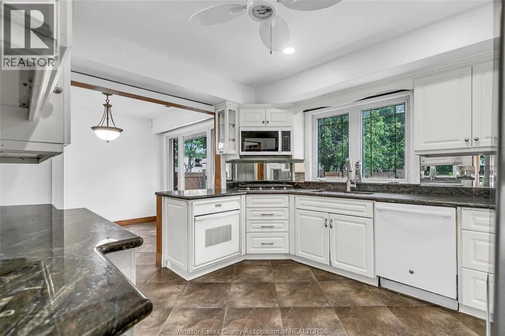 Don't miss this beautiful oversized ranch in South Windsor. Corner lot, 2 kitchens. Rental income potential from lower level. This home features 5 bedrooms, 2 bathrooms, large living room w/fireplace, dining area and large kitchen. The basement is fully finished in-law suite with separate entrance, a family room with gas fireplace ,2nd bathroom, 2 bedrooms, and Laundry. Fantastic backyard complete with a heated inground pool and pool house. The pool has not been used for some time. Seller represents no warranties on the pool. No side neighbors (North Side). Walking distance to Northwood Public and Holy Names High School. Easy access to bus route, St. Clair college, University, and US Border. Located within walking distance to shopping including Walmart. Call the listing agent for showings. (id:27476)