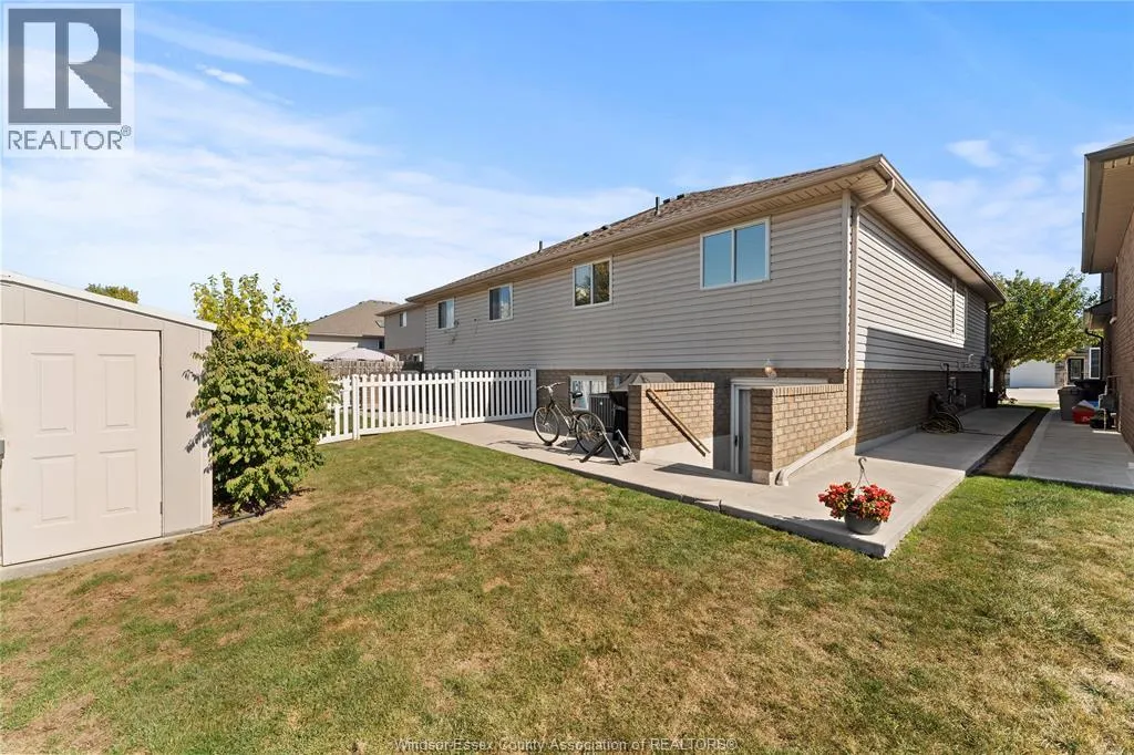 Beautiful semi-detached raised ranch, located in a desirable East Windsor location! This well-maintained original owner home features 2+1 bedrooms, 2 full baths, and an open concept living space. The main floor offers a spacious living room with cathedral ceilings, hardwood floors, and plenty of pot lighting throughout. The kitchen includes maple cabinets, a breakfast bar and decorative lighting, adjacent to the dining area. The fully finished lower level features a large family room with gas fireplace, 3rd bedroom, 3pc bath, utility, and ample storage. Step outside through the rear grade entrance to a large cement patio and yard w/newer fencing, meticulous grounds, and storage shed. Newer Furnace and A/C (2023). Roof (2018). Close proximity to EC Row, schools, parks, shopping, arenas and all amenities. (id:27476)