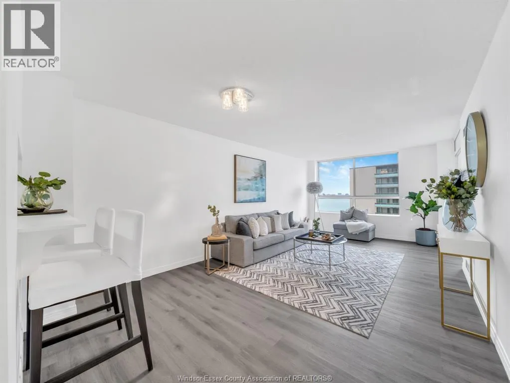 Enjoy breathtaking views at this very convenient downtown location! This beautiful condo features 2 bedrooms, 2 full baths, primary with ensuite and walk-in closet. Open concept living/dining, in-suite laundry, den/sunroom with spectacular sunrises and NE views of the water. 1 underground parking space close to the entry. Many amenities including exercise room and a terrace with tables and BBQs. Fully secure entrance. Close to transit, shopping, hospitals, dining, casino and entertainment. Enjoy the Riverfront festivities and walking trails right out front. Close to bridge and tunnel for a quick commute to the U.S. Rent includes all utilities, 1 storage unit and 1 parking space. Building is clean and professionally managed. Owner prefers minimum 1 year lease. Completed application, with references, income verification and credit score are required. (id:27476)