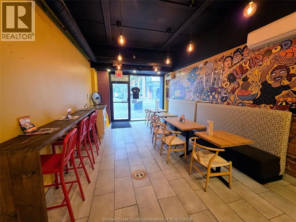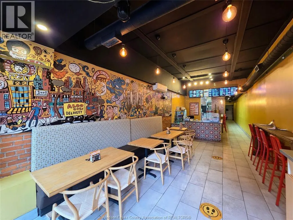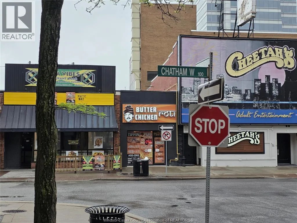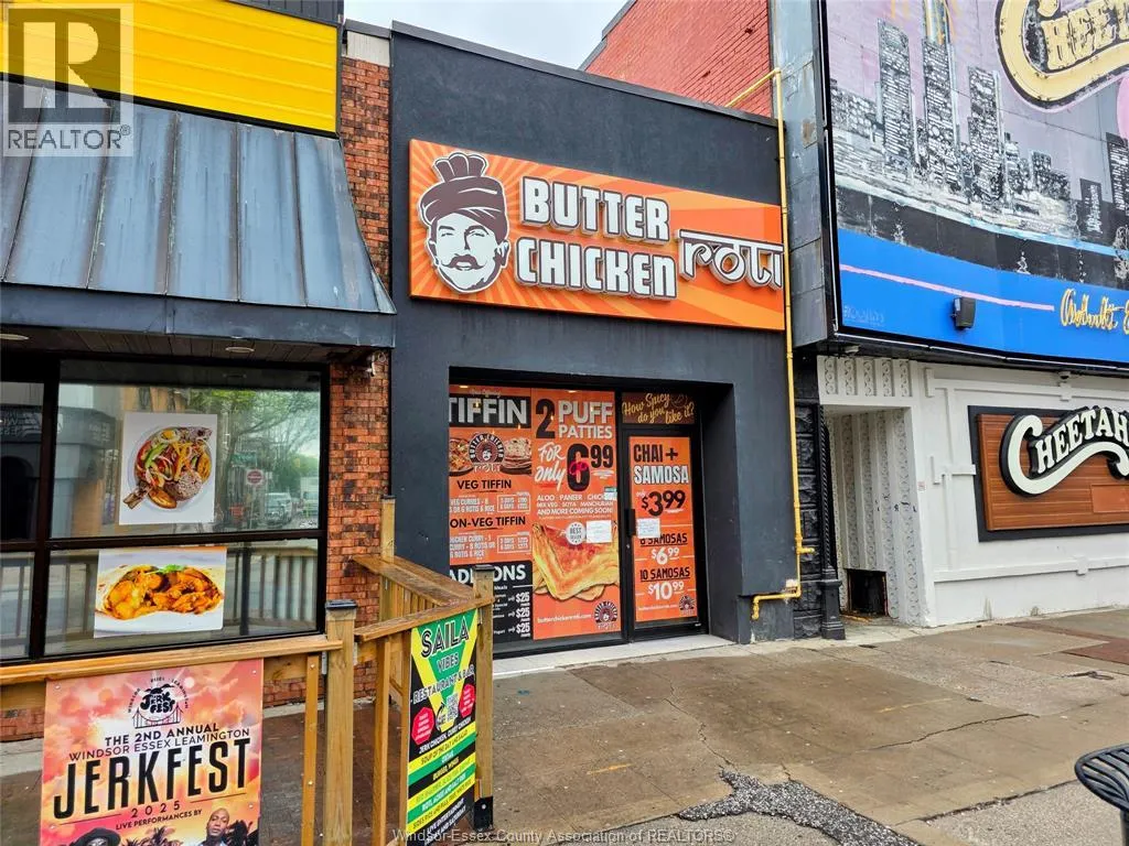 From Ouellette Ave, turn West onto Chatham St West. Located at intersection of Chatham & Pelissier In the heart of downtown Windsor, just steps from Caesars Windsor, the University of Windsor, and nearby feeder businesses, this 1,118 sq ft commercial space offers a prime location for your next venture. Outfitted as a dine-in or cash-and-carry restaurant, itâs ideal for food service or many retail uses. Building upgrades include a brand-new furnace and A/C unit (June 2025) and a new roof (2022), providing peace of mind and reduced startup costs. The unit is currently home to Butter Chicken Roti, a popular Indian restaurant, which is also being sold separately. Street parking only. This is a net lease. (id:27476)