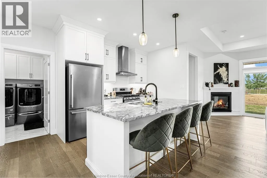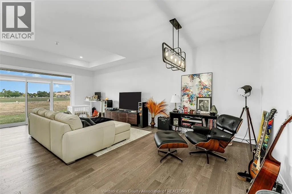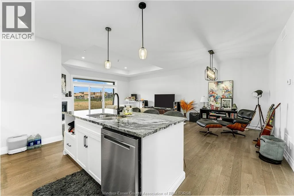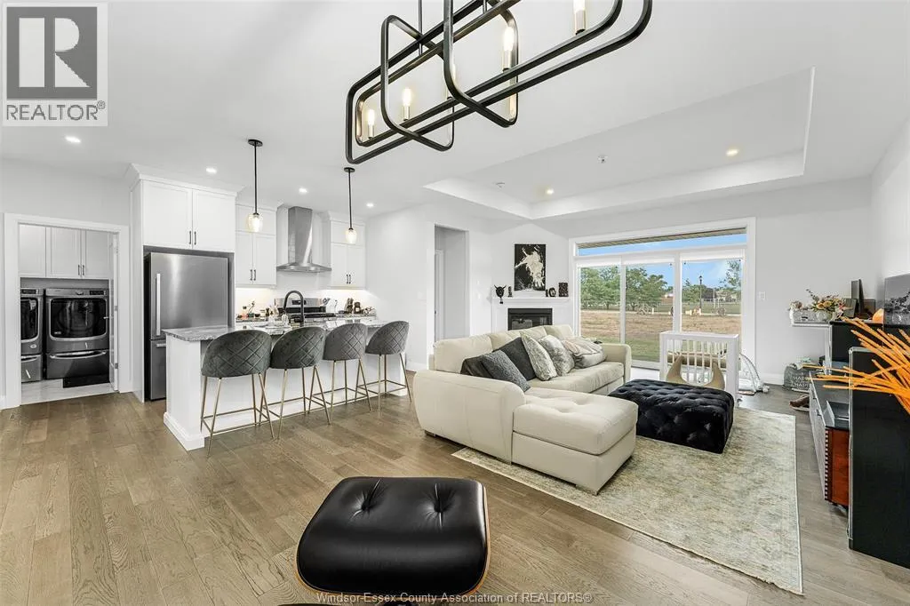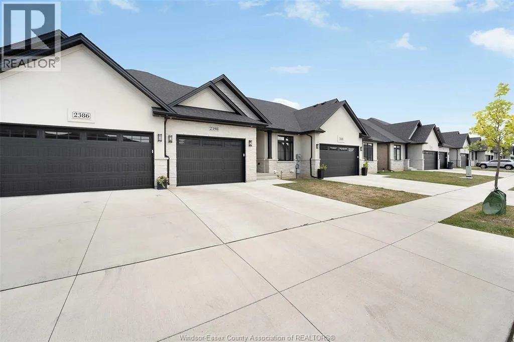 Step into luxury at 2398 Barkley, a beautifully finished 2-bedroom, 2-bathroom ranch townhouse in a prime east Windsor. This elegant home features a custom kitchen with an oversized quartz island, flowing into a bright great room with gas fireplace and a dining area that opens to a spacious covered patio. The primary suite includes coffered ceilings, a large walk-in closet, and a stunning ensuite with a ceramic and glass shower. With 9-foot ceilings, engineered hardwood floors, detailed trim, and a main floor laundry room, every inch is thoughtfully designed. Lawn care and snow removal are covered with a $95/month fee, and the sodded yard with sprinkler system is included. Seller is open to finishing the basement before closing at an agreed price. Seller reserves the right to accept or reject any/all offers for any reason. (id:27476)