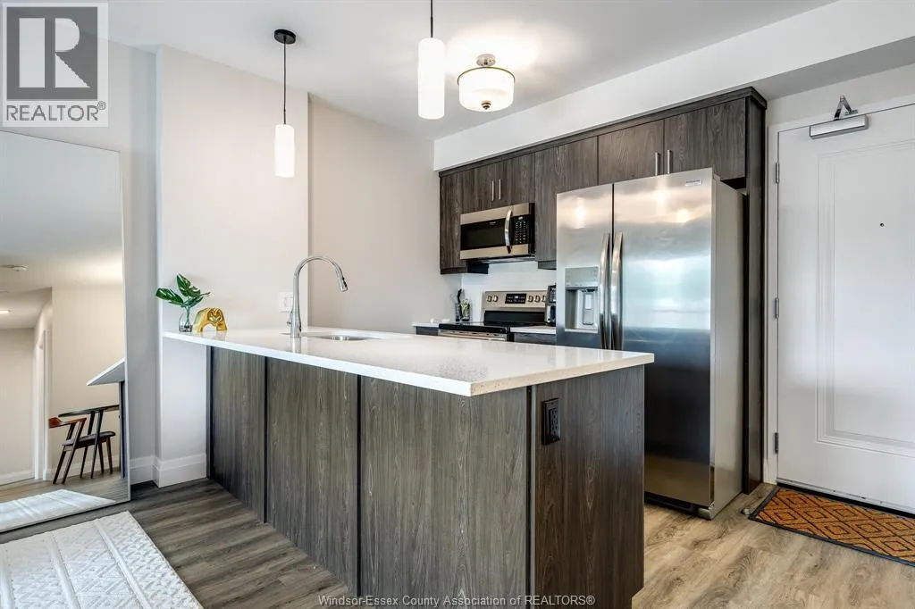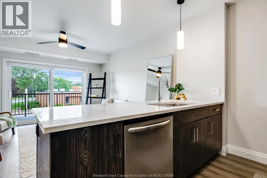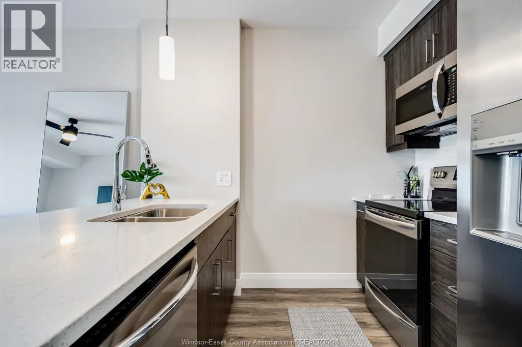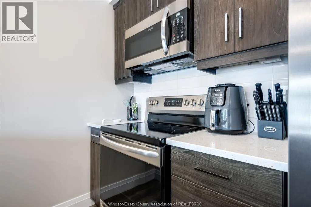 This upscale Riverside suite is located in a quiet, 3 year old building with the convenience of being 5 mins from all the major east side shopping, and is situated in coveted, family friendly Riverside. Excellent parks and schools nearby, close to the WFCU rinks, pool & community centre. 15 mins to University of Windsor by car. This nicely appointed modern suite is just under 1200 square feet with two lovely bathrooms, open concept kitchen, living and dining that is perfect for entertaining. This sought after building features a yoga studio, lounge, bbq patio, and fitness centre. One locker and parking included. Hot water tank is a rental - approx $37.25 monthly. (id:27476)