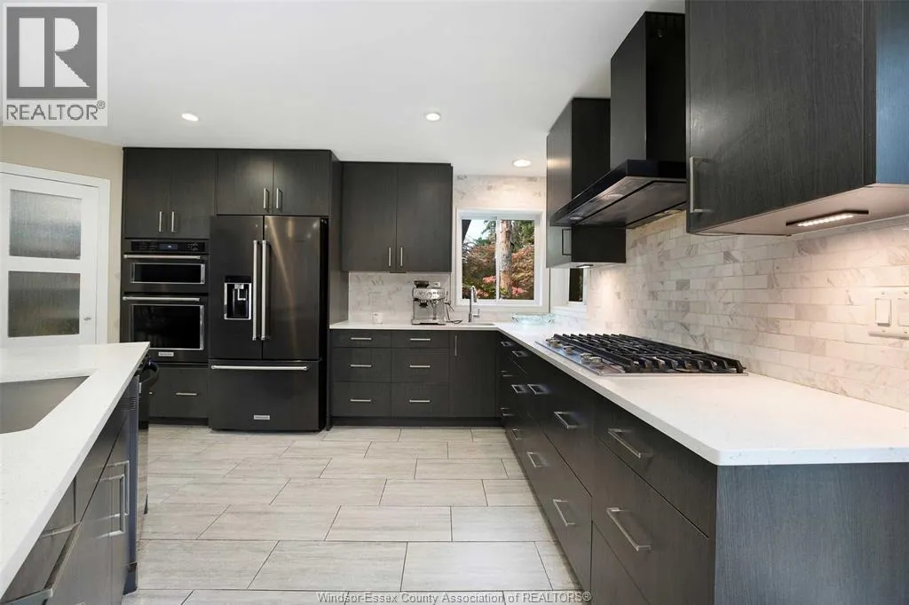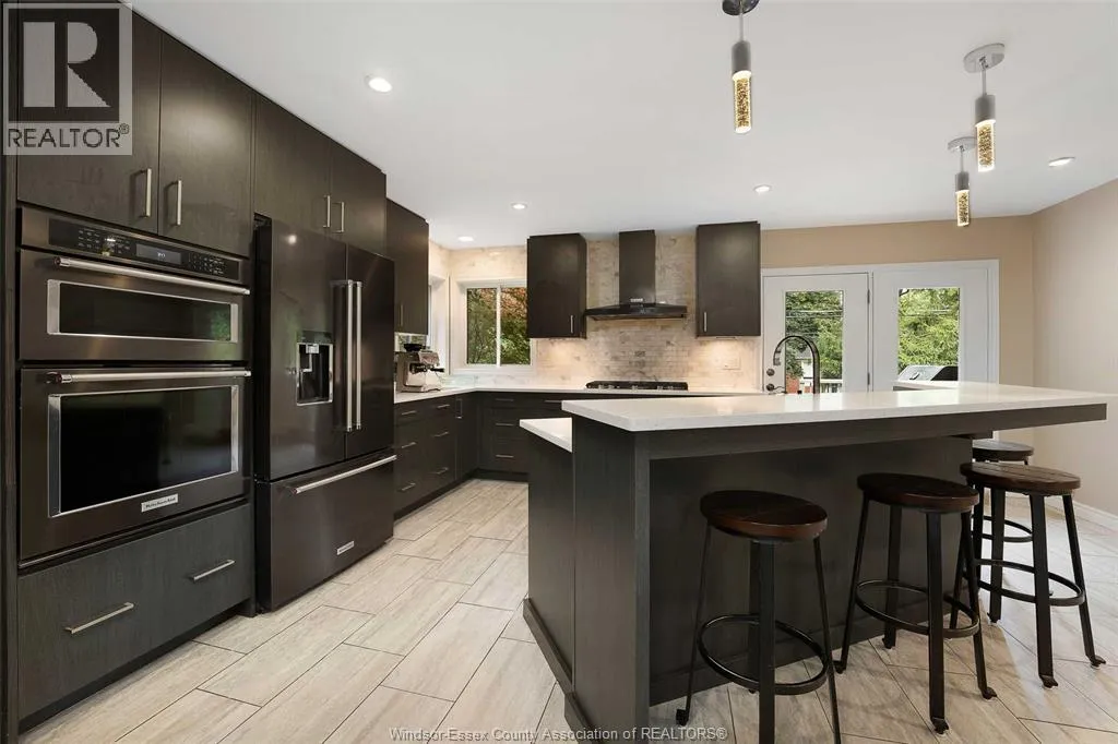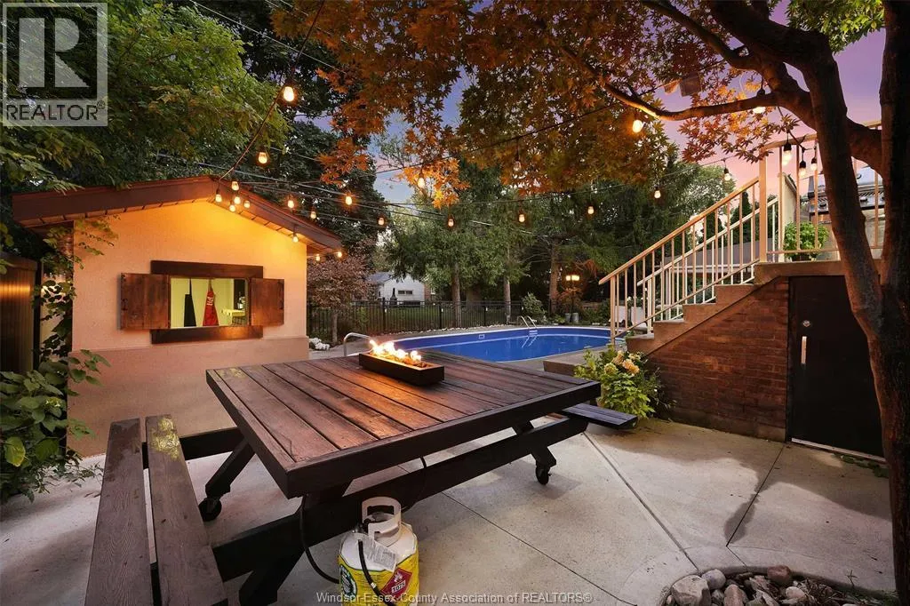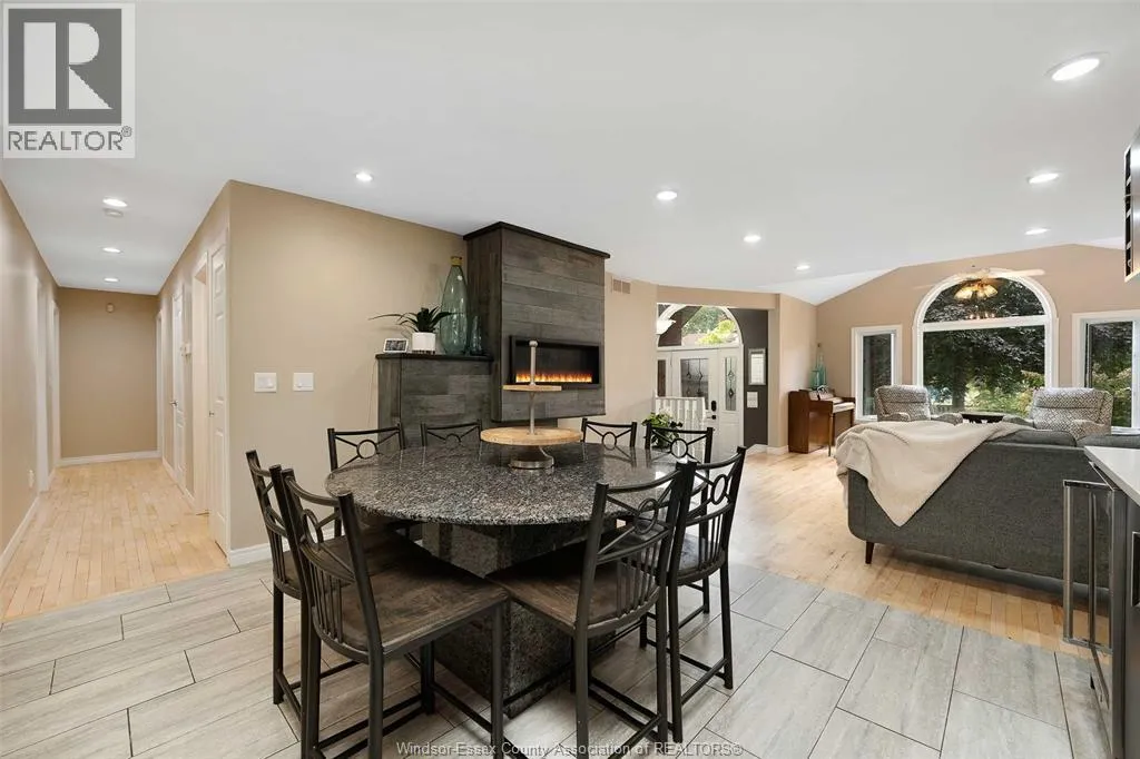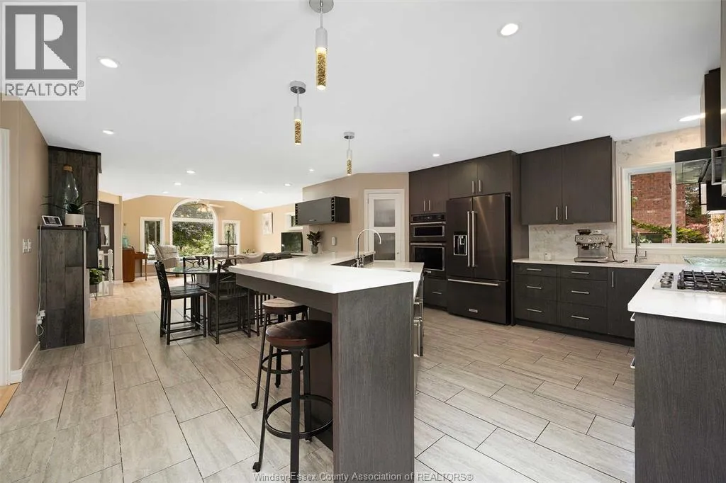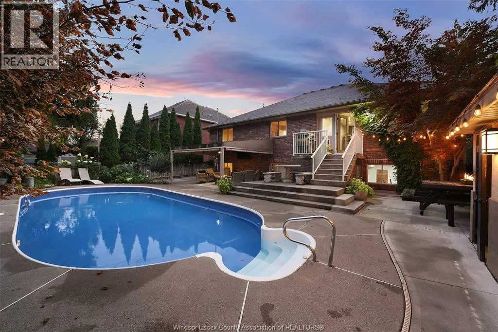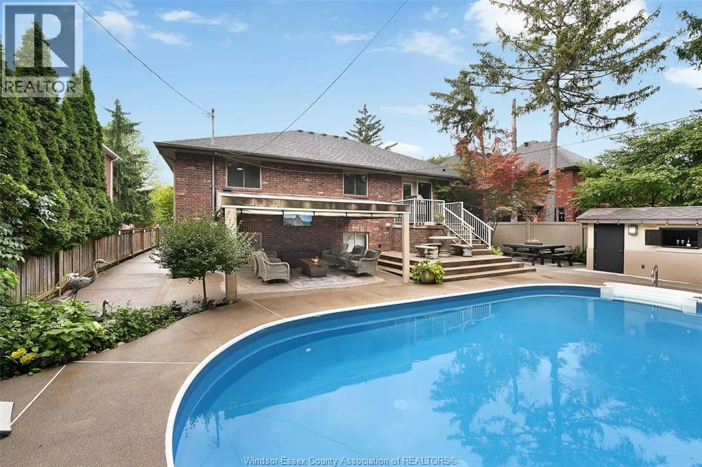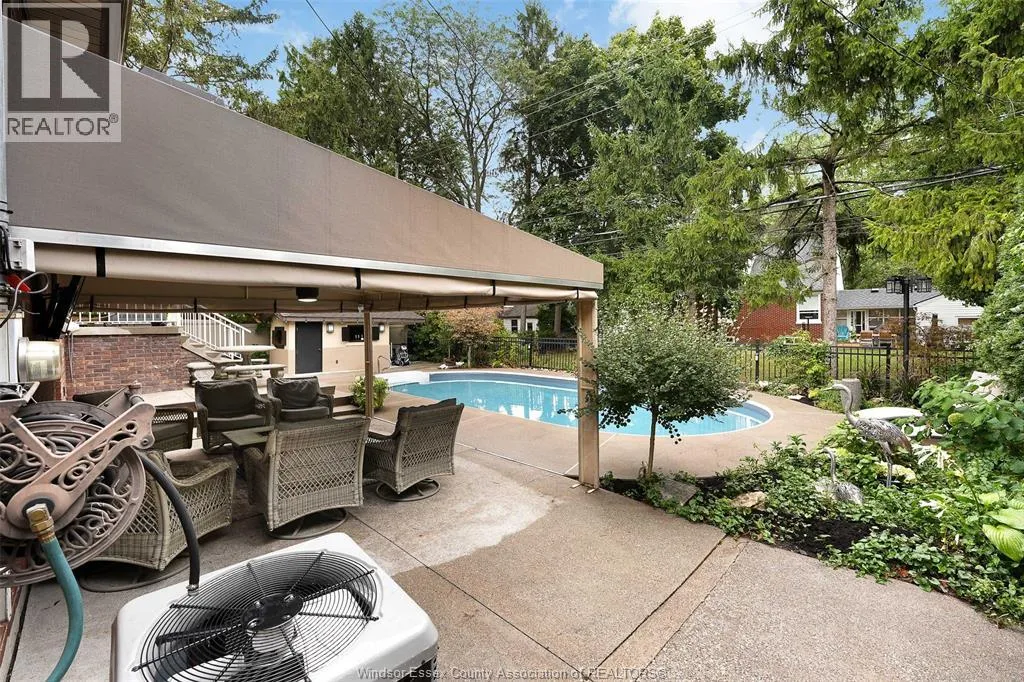 Step into your dream home at 3514 Bruce, Windsor! This stunning brick-roof ranch offers the perfect blend of space, style, and functionality. Featuring 3+1 bedrooms and 3 full baths, including a primary suite with an ensuite bath, this home is designed for comfort and convenience. The modern kitchen boasts built-in appliances, a walk-in pantry, an eat-at island, and a cozy coffee barâideal for family dinners and entertaining alike. The bright living room with vaulted ceilings and a gas fireplace creates a warm, inviting atmosphere. The lower level offers a versatile in-law suite with a second kitchen, bedroom, family room, and additional bathâperfect for multi-generational living or rental income. Step outside to your backyard oasis, complete with an in-ground saltwater pool, covered patio, tiki bar, and multiple seating areasâperfect for summer gatherings and outdoor fun. Recent updates include new kitchen cabinets & appliances, flooring, paint, furnace, central air, tankless hot water heater, and pool liner. Located in a mature neighborhood surrounded by upscale homes and tree-lined streets, this home combines elegance with everyday comfort. (id:27476)