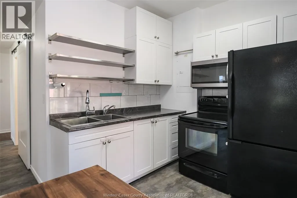 Welcome to 218 Erie St. W! A freshly updated, spacious 2-bedroom apartment located above a well-maintained commercial building in a warm, centrally located neighbourhood. This charming second-floor unit features large windows, modern finishes, and ample natural light throughout. Enjoy a modern 4-piece bathroom with tiled shower walls and the convenience of in-suite laundry. The kitchen includes updated cabinetry, black appliances, and plenty of counter space, while the open-concept living and dining area offers flexibility for your lifestyle. Both bedrooms feature refinished hardwood floors and bright windows for a warm, inviting atmosphere. Situated just off beautiful Victoria Avenue, this home is steps from local shops, restaurants, a grocery store, parks, Windsor Regional Hospital and only minutes to the tunnel entrance to Detroit. One designated parking spot. Tenant pays hydro and gas. (id:27476)