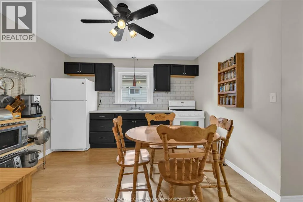 Charming, cozy, and bursting with character, this ""larger than it looks"" beautifully appointed home in the heart of Windsor is sure to wow! Stepping in from the covered front porch take in the natural light from the large windows, eat-in kitchen and with trendy features and soothing tones. This 2 bedroom home has an extra large primary bedroom that has potential to be converted back to its prior 3 bedrooms. Backyard is a gardeners dream with beautiful and ample greenspace, wimsical paths and fruit trees including cherry, mulberry and walnut trees. More to admire is the flower gardens and a thriving vegetable garden. Don't miss the fully fenced in yard, covered back porch and 1.5 car detached garage with hydro and cement floor. Updates in 2014 include roof, furnace and ac and HWT. Hot water tank is owned. (id:27476)