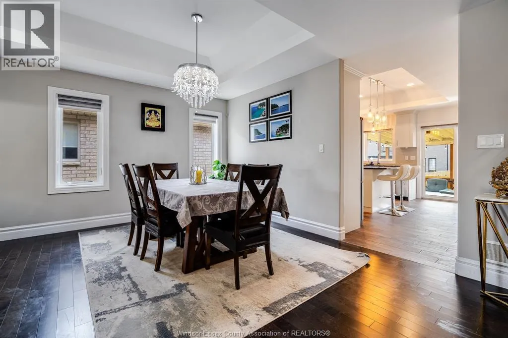 Welcome to this spacious and exceptionally well-maintained detached raised ranch, ideally located in one of South Windsor's most desirable neighbourhoods. Featuring 6 bedrooms and 3 full bathrooms, this impressive home offers the perfect blend of space, comfort and modern living-ideal for large or growing families. The main floor showcases a bright and open-concept living and dining area, complemented by high-end lighting and elegant finishes throughout. The modern kitchen is equipped with a center island, pantry and plenty of cabinet space. This level also includes three generously sized bedrooms and a full bath. Upstairs, you'll find a spacious bonus master bedroom featuring a private ensuite with a relaxing Jacuzzi tub and a walk-in closet. The fully finished lower level complete with a grade entrance, cozy family room with fireplace, second full kitchen, bar area, two additional bedrooms and a full bath - an excellent setup for an in-law suite or income potential. Additional upgrades include: ceiling fans in three bedrooms, built-in storage in the garage and laundry room. You're steps away from Talbot Trail School, parks & shopping centres. (id:27476)