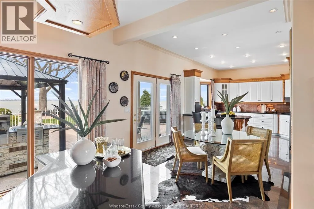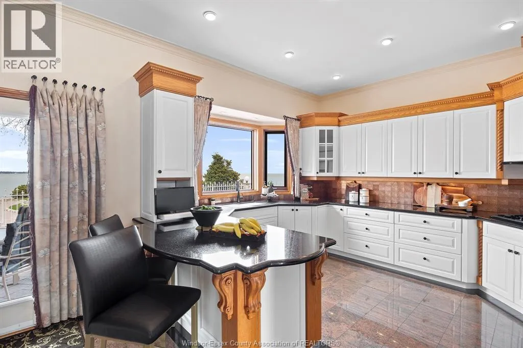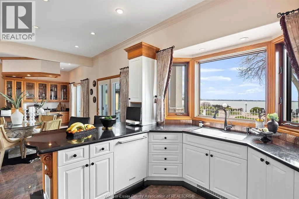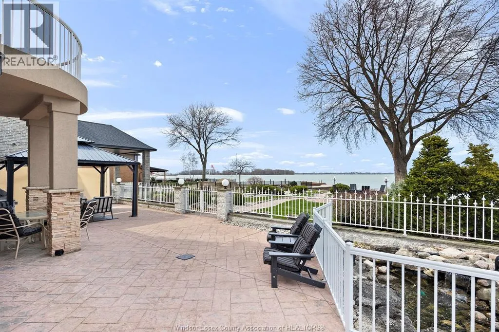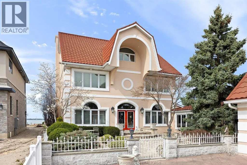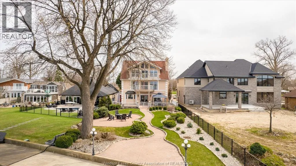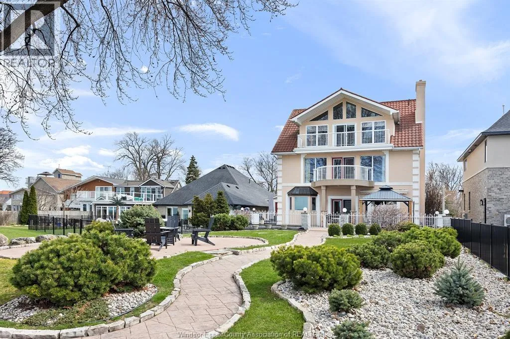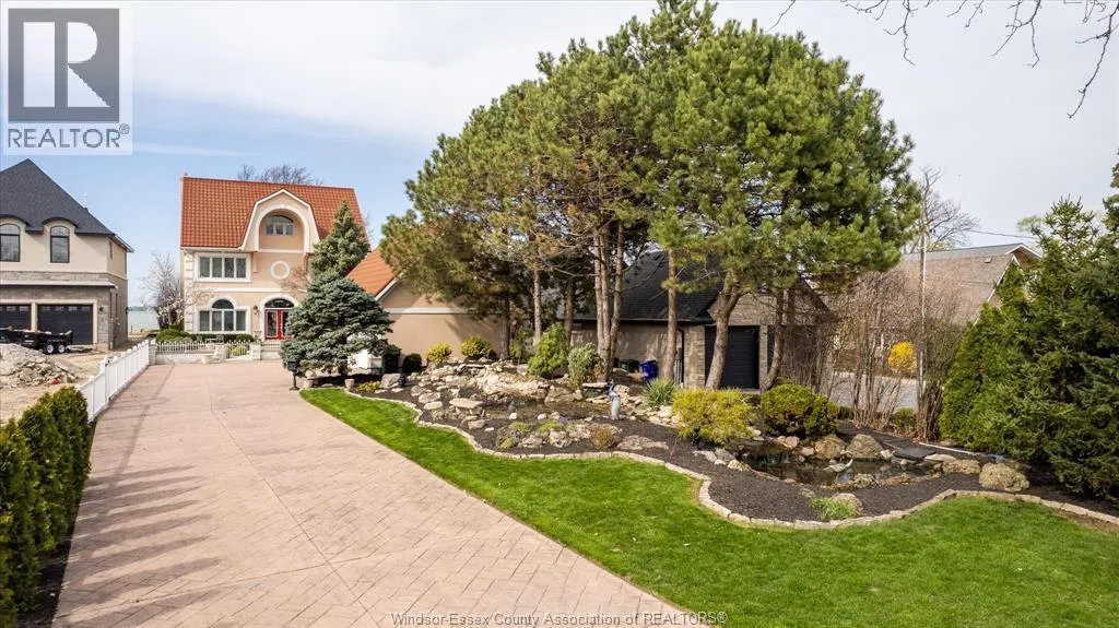 RIVERSIDE BTW FLORENCE AND BANWELL Welcome to 10960 Riverside Dr E-a spacious 3+1 bed, 4.5 bth family home on an executive-sized lot. Enjoy serene waterviews, landscaped gardens, ponds, patio & gazebo. Large windows flood the home w/natural light, highlighting gorgeous granite & hardwood floors &granite counters. The versatile layout includes a potential in-law suite & third-floor great room (or second primary suite), perfect for family activities. The primary suite features a private balcony overlooking the water. Recent updates: furnaces, A/Cs, fireplace, epoxy flooring, fence, balcony, windows, gazebo & alarm system. With a 3-car garage & high, dry crawl space, there's ample storage. Move-in ready for families seeking comfort and elegance. All appliances remain in this chef's kitchen open to the eating area & wet bar area that your guests will love. Formal dining room. Two cozy fireplaces. Large breezeway/office that leads to the garage & bonus room. High ceilings, quality finishes throughout. Sprinkler system. A pleasure to show and will make your family feel at home the moment you arrive. Flexible Possession. (id:27476)