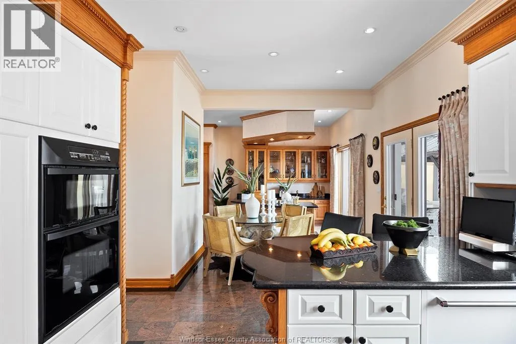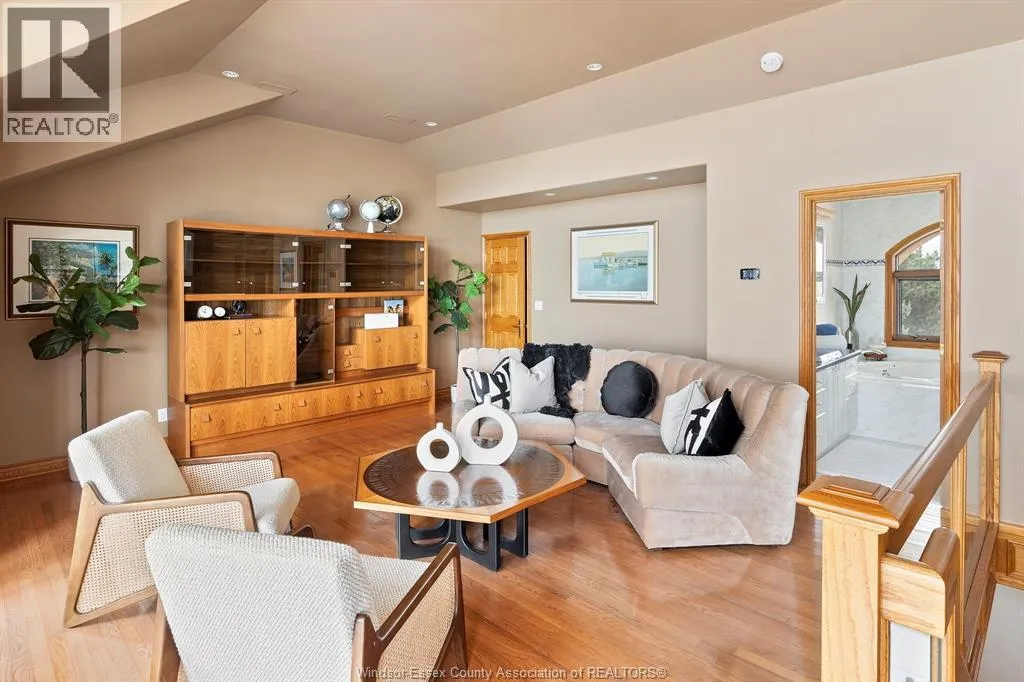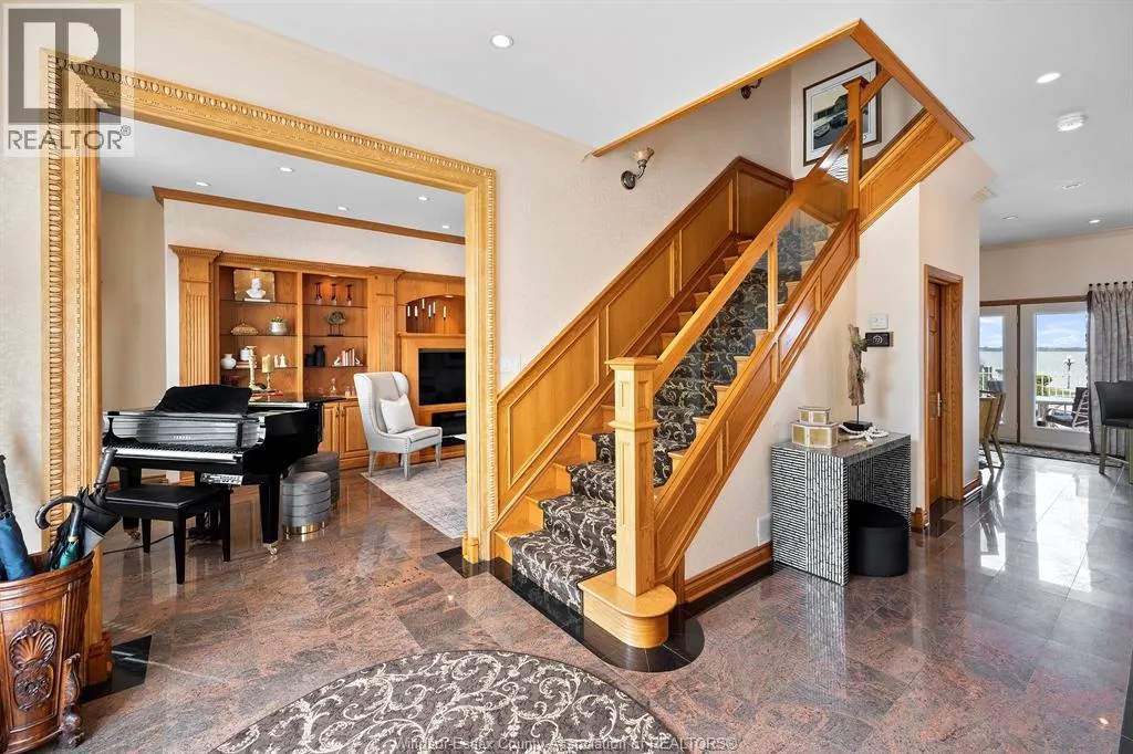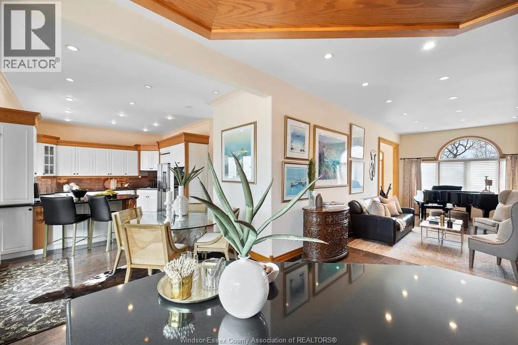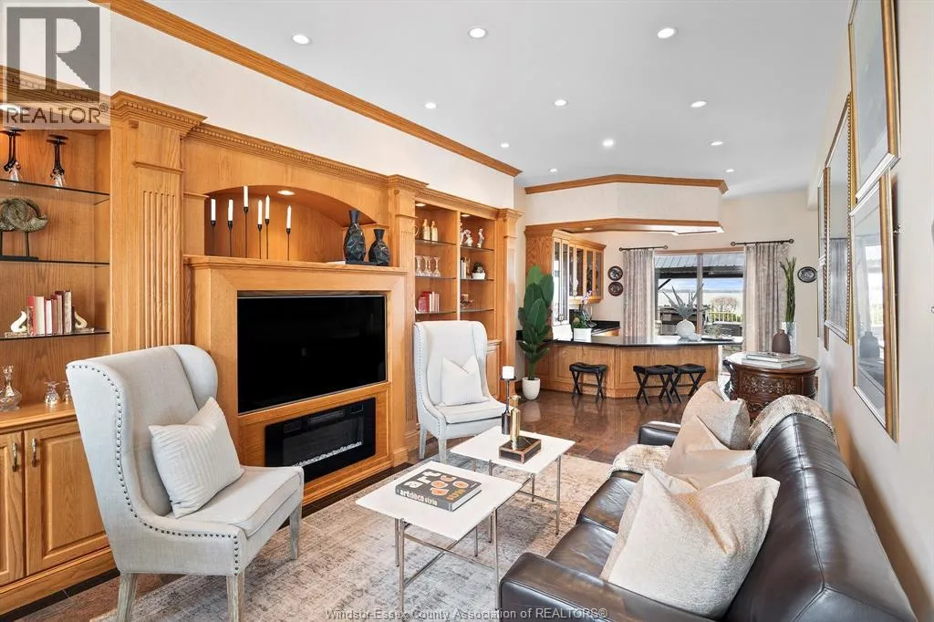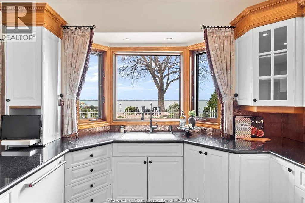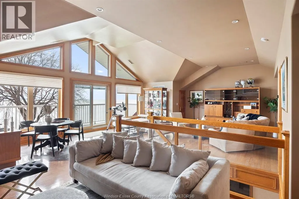 RIVERSIDE BTW FLORENCE AND BANWELL Welcome to 10960 Riverside Dr E-a spacious 3+1 bed, 4.5 bth family home on an executive-sized lot. Enjoy serene waterviews, landscaped gardens, ponds, patio & gazebo. Large windows flood the home w/natural light, highlighting gorgeous granite & hardwood floors &granite counters. The versatile layout includes a potential in-law suite & third-floor great room (or second primary suite), perfect for family activities. The primary suite features a private balcony overlooking the water. Recent updates: furnaces, A/Cs, fireplace, epoxy flooring, fence, balcony, windows, gazebo & alarm system. With a 3-car garage & high, dry crawl space, there's ample storage. Move-in ready for families seeking comfort and elegance. All appliances remain in this chef's kitchen open to the eating area & wet bar area that your guests will love. Formal dining room. Two cozy fireplaces. Large breezeway/office that leads to the garage & bonus room. High ceilings, quality finishes throughout. Sprinkler system. A pleasure to show and will make your family feel at home the moment you arrive. Flexible Possession. (id:27476)