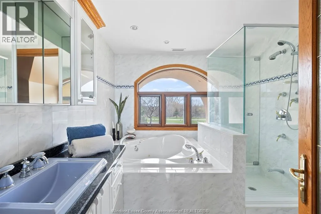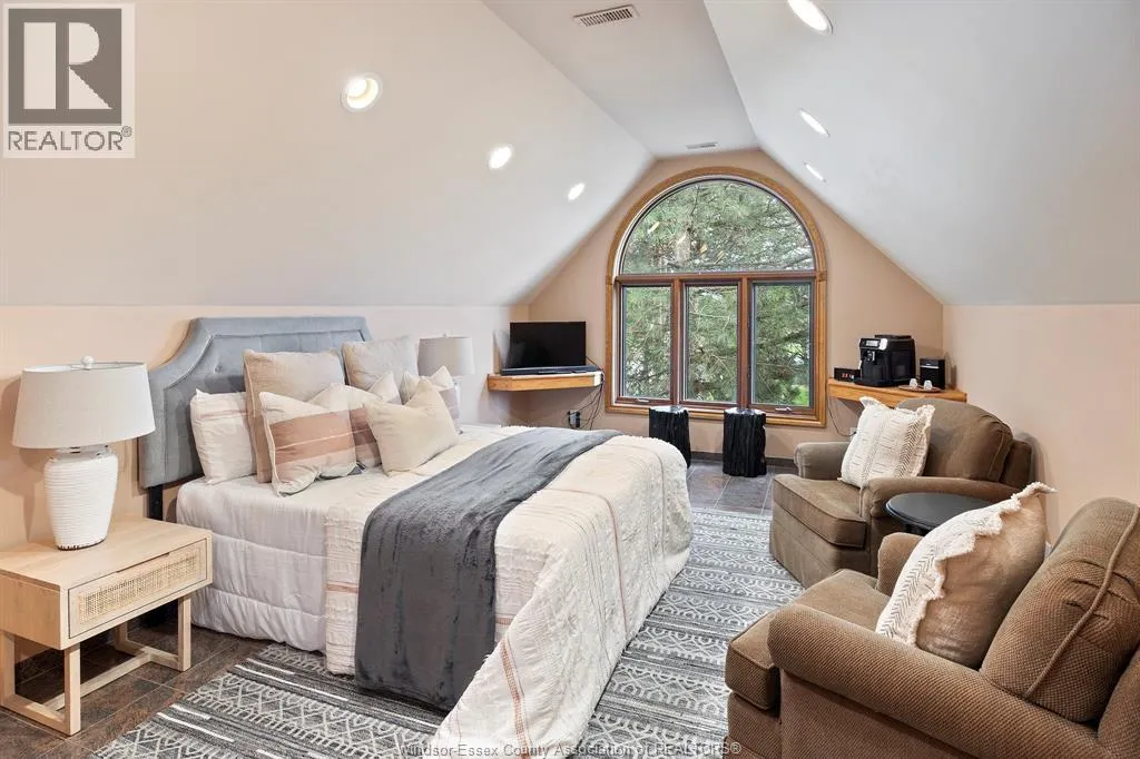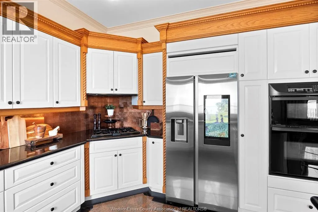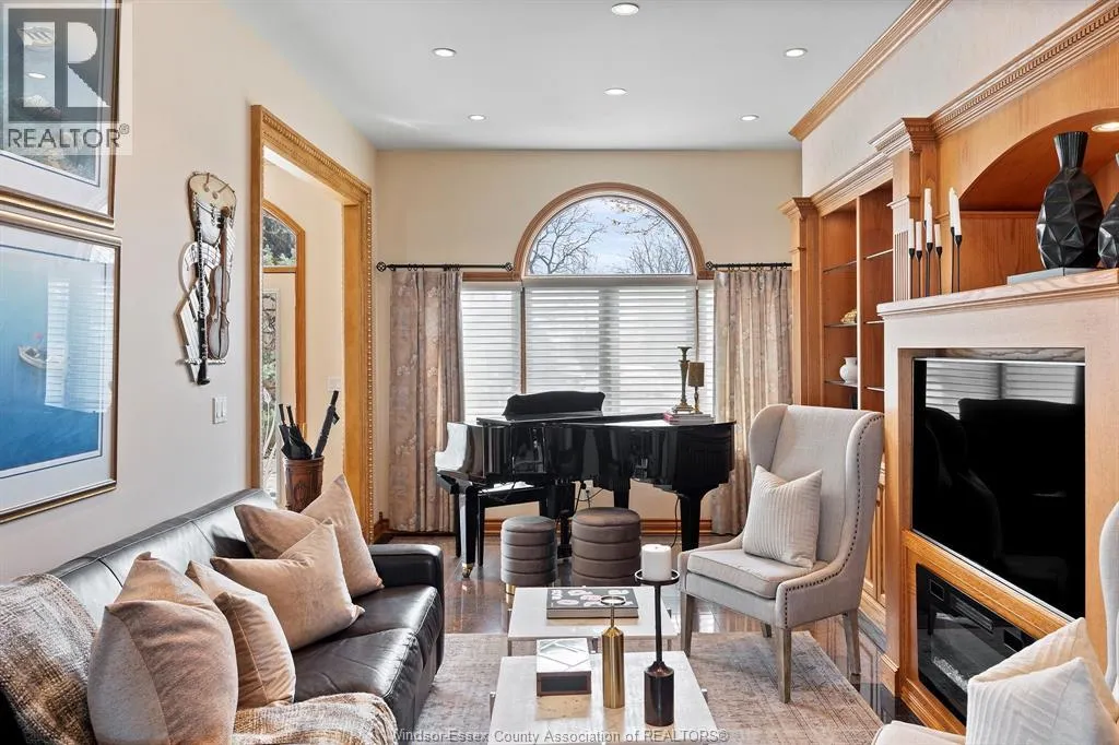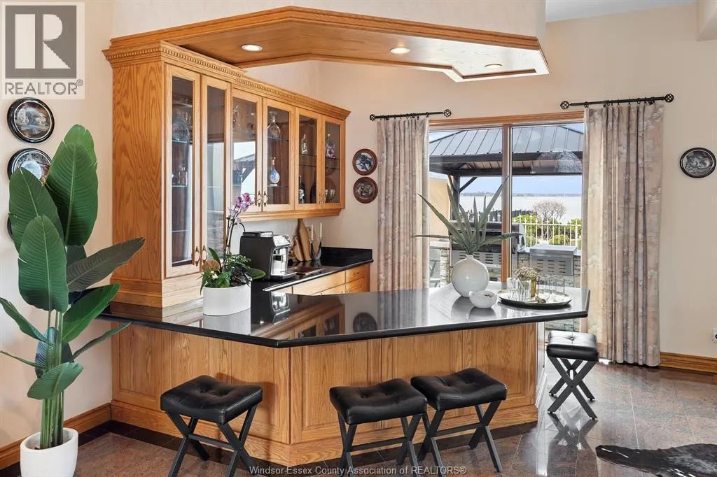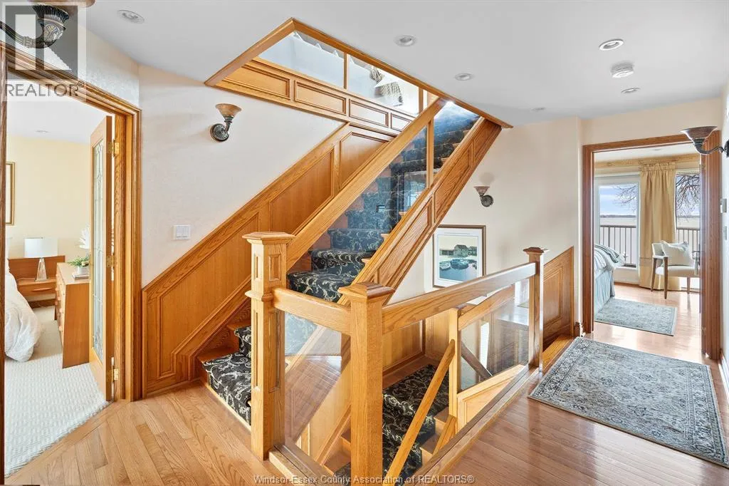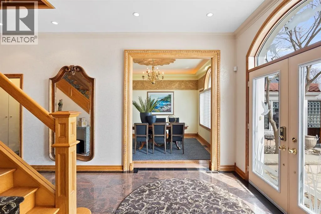 RIVERSIDE BTW FLORENCE AND BANWELL Welcome to 10960 Riverside Dr E-a spacious 3+1 bed, 4.5 bth family home on an executive-sized lot. Enjoy serene waterviews, landscaped gardens, ponds, patio & gazebo. Large windows flood the home w/natural light, highlighting gorgeous granite & hardwood floors &granite counters. The versatile layout includes a potential in-law suite & third-floor great room (or second primary suite), perfect for family activities. The primary suite features a private balcony overlooking the water. Recent updates: furnaces, A/Cs, fireplace, epoxy flooring, fence, balcony, windows, gazebo & alarm system. With a 3-car garage & high, dry crawl space, there's ample storage. Move-in ready for families seeking comfort and elegance. All appliances remain in this chef's kitchen open to the eating area & wet bar area that your guests will love. Formal dining room. Two cozy fireplaces. Large breezeway/office that leads to the garage & bonus room. High ceilings, quality finishes throughout. Sprinkler system. A pleasure to show and will make your family feel at home the moment you arrive. Flexible Possession. (id:27476)