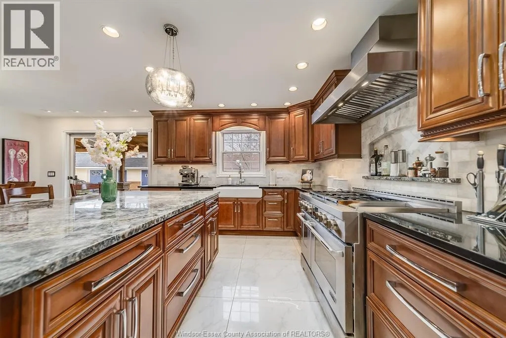 Exquisite Living in Prestigious Southlawn Gardens Welcome to this exclusive executive enclave in the heart of South Windsor. Ideal for a large or multi-generational family, this remarkable residence offers just under 6,000 sq. ft. of thoughtfully designed living space. Beautifully updated throughout, this two-storey home features 5+1 bedrooms and 4.1 bathrooms, including two elegant ensuite baths that combine luxury and function. Crafted for both everyday comfort and upscale entertaining, the custom-built maple kitchen is a culinary showpiece, complete with premium appliances and high-end finishes. The fully finished lower level adds nearly 1,980 sq. ft. of additional space and includes a second kitchen, a guest bedroom, full bathroom, and a spacious recreation areaâperfect for extended family, in-laws, or entertaining on a grand scale. Step outside into your private backyard retreat, designed for relaxation and celebration. Enjoy an oversized heated pool, two covered seating areas, and a well-appointed pool house offering a changeroom, bathroom, sauna, and additional storage. A sunroom with built-in BBQ and cozy sitting area allows for year-round enjoyment. Additional features include a double garage and professionally landscaped grounds, completing this exceptional offering in one of Windsorâs most sought-after communities. (id:27476)