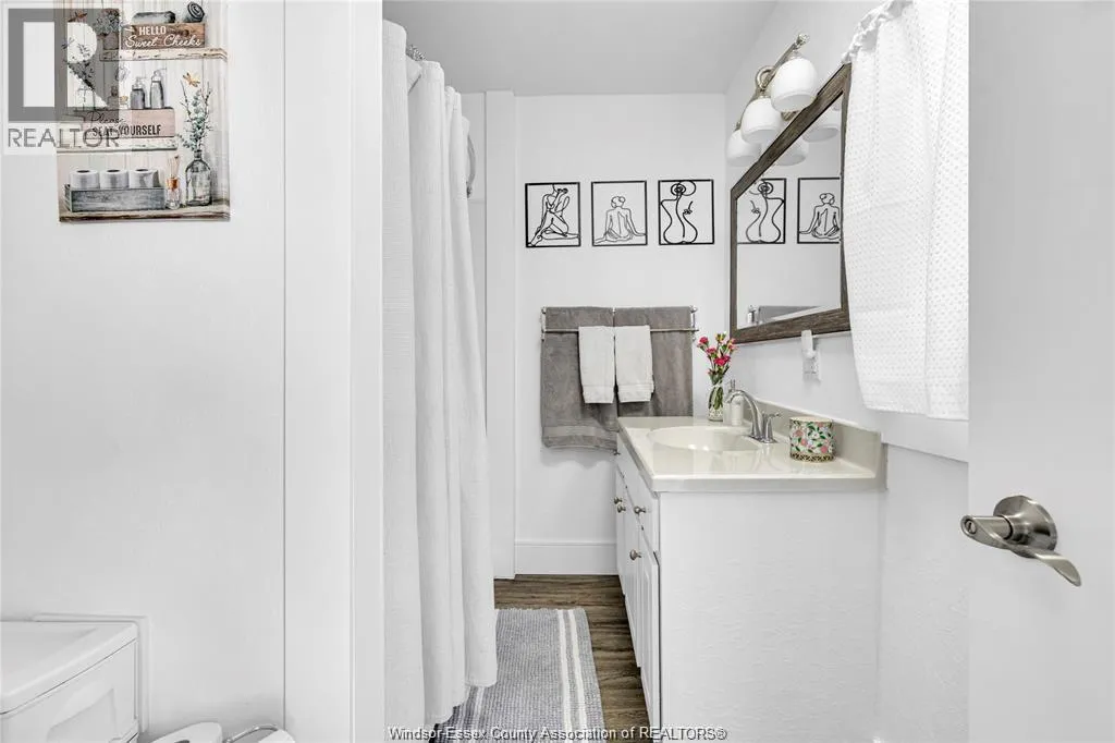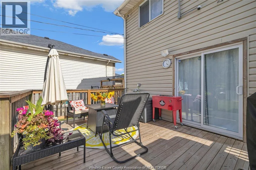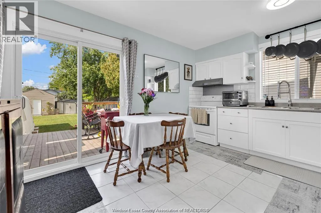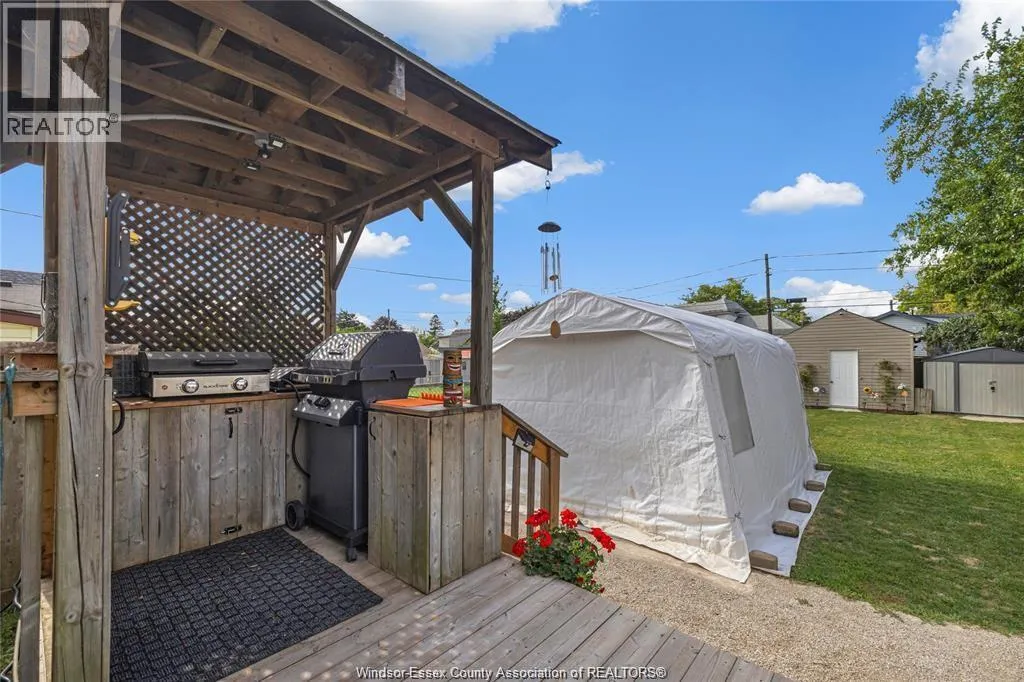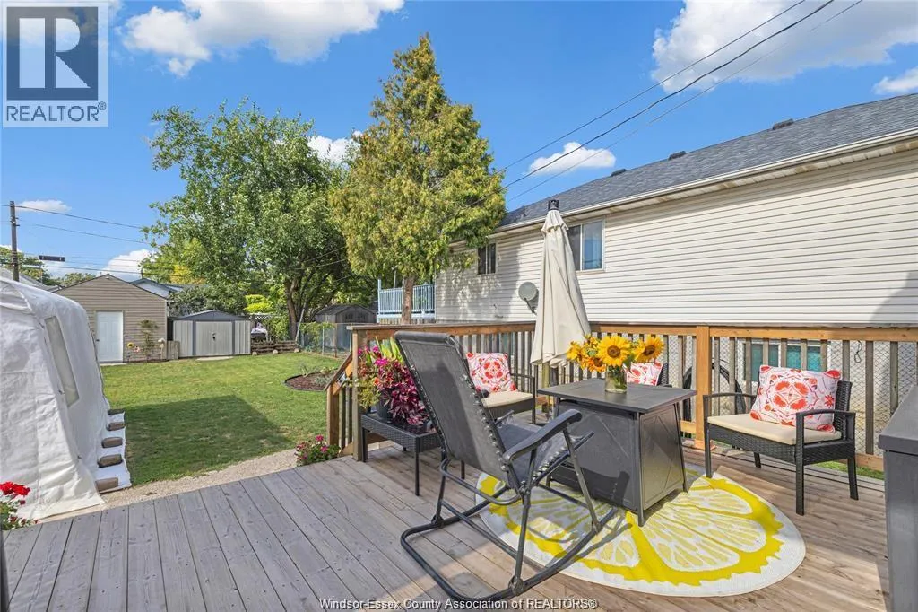 HOWARD AVENUE TO EDUNBOROUGH TO REMINGTON TO VANIER CHARMING 2 BEDROOM, 1 BATHROOM, 1.5 STOREY LOCATED IN WINDSOR'S REMINGTON PARK NEIGHBOURHOOD. PERFECTLY SITUATED CLOSE TO ALL OF THE CITY'S AMENITIES. STARTING OUTSIDE, YOU WILL FIND A LARGE FRONT DRIVE AND PARKING FOR 5 CARS, SIDE GATE ENTRANCE TO THE LARGE REAR YARD, PORTABLE TARP GARAGE TO STAY, STORAGE SHEDS AT THE BACK AND A REDONE SUNDECK WITH COVERED PORTION FOR YOUR BBQS, SMOKERS OR AN OUTDOOR KITCHEN POSSIBILITY. INSIDE THERE IS NEW FLOORING THROUGHOUT THE HOME, NEW TRIM AND FRESHLY PAINTED. FOYER WITH CLOSET AS YOU WALK IN, COZY LIVING ROOM WITH LARGE FRONT WINDOW FOR NATURAL LIGHT. EAT IN KITCHEN, LARGE MAIN FLOOR WASHROOM AND LARGE UTILITY ROOM FOR THE LAUNDRY AND THE ON DEMAND HOT WATER TANK. UPSTAIRS THERE IS MORE STORAGE AND 2 LARGE BEDROOMS PERFECT FOR THOSE STARTING OUT! PLEASE CONTACT LISTING AGENT FOR ANY FURTHER DETAILS OR TO BOOK YOUR PRIVATE SHOWING TODAY! (id:27476)