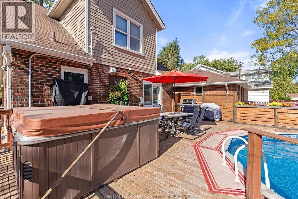 Charming and spacious brick home with pool, hot tub, and bonus building lot! This character-filled property features a cozy covered porch, beautiful original hardwood floors, a bright living room with pot lights, dining area, and an updated kitchen with with plenty of storage. Upstairs offers three spacious bedrooms, while the finished basement includes a bar and potential for another full bath. Enjoy a fully fenced backyard with pool and hot tub included, plus a large detached garage. Freshly painted throughout and move-in ready. Bonus: this sale includes the adjacent building lot, offering incredible potential for future development or investment in one of East Windsorâs most sought-after neighbourhoods. (id:27476)