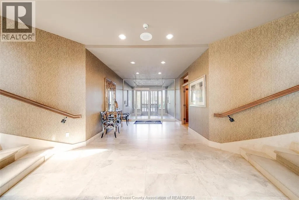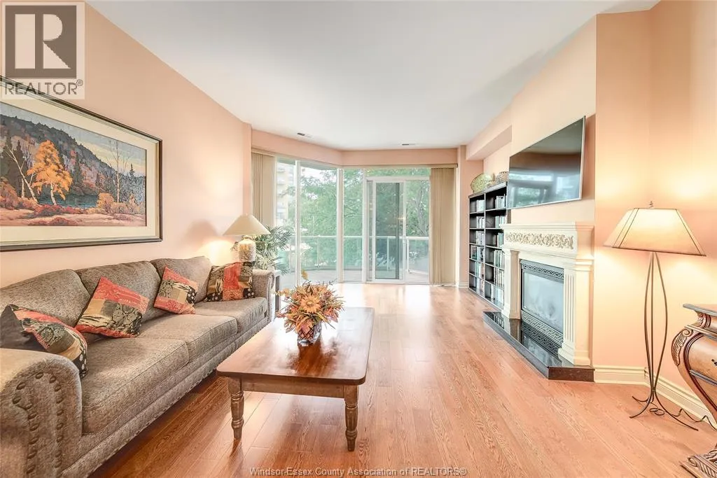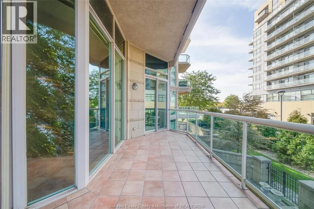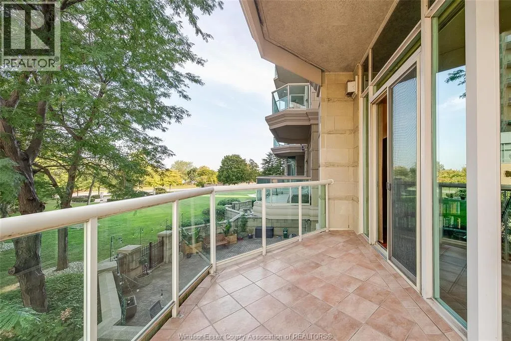 Luxury, beauty, and peace of mind await you at one of Windsor's most prestigious addresses, the Gates of Glengarda. From the moment you enter you are greeted by a circular drive, meticulously landscaped gardens, and courtyard. The lobby has soaring ceilings, twin spiral staircases, sculptural elements, and intricate detail throughout. World class amenities include 24/7 concierge and security, an elegant party room with a fully equipped kitchen, comfortable seating, fireplace, and a walk out terrace overlooking the grounds, park and waterfront..There's even a billiards room and a library to enjoy a good read. For wellness and recreation, a fitness centre, indoor pool, hot tub, and sauna. A third floor terrace with barbecues and seating offers a welcoming outdoor retreat. Residents also enjoy the convenience of underground parking complete with a car wash station. For visiting friends or family, two private guest suites are available. And now the suite itself, with 10 foot ceilings, luxurious appointments and finishes. The kitchen features maple cabinetry, granite countertops, and pantry. There's convenient in-suite laundry. The spacious open concept living and dining area with gas fireplace leads to a tiled wrap around balcony with glass railings with views of the courtyard, park and waterfront.This suite has two bedrooms and two full baths.The primary bedroom features an ensuite bath with jetted tub and walk-in closet, and the second bedroom has access to the balcony. All this within steps to the most beautiful gardens, parks, trails, and waterfront. All furnishings can be included making this turn key and move in ready. (id:27476)