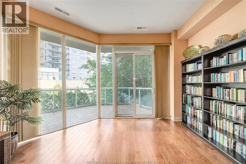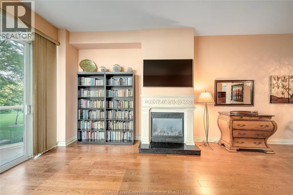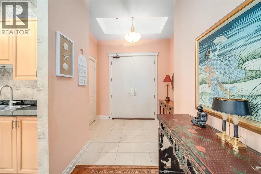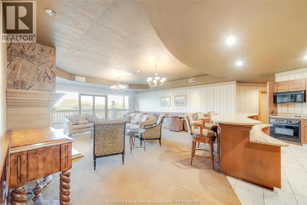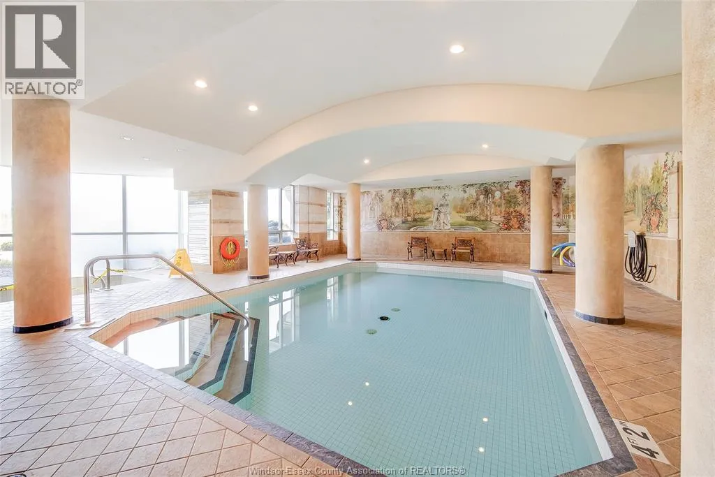 Luxury, beauty, and peace of mind await you at one of Windsor's most prestigious addresses, the Gates of Glengarda. From the moment you enter you are greeted by a circular drive, meticulously landscaped gardens, and courtyard. The lobby has soaring ceilings, twin spiral staircases, sculptural elements, and intricate detail throughout. World class amenities include 24/7 concierge and security, an elegant party room with a fully equipped kitchen, comfortable seating, fireplace, and a walk out terrace overlooking the grounds, park and waterfront..There's even a billiards room and a library to enjoy a good read. For wellness and recreation, a fitness centre, indoor pool, hot tub, and sauna. A third floor terrace with barbecues and seating offers a welcoming outdoor retreat. Residents also enjoy the convenience of underground parking complete with a car wash station. For visiting friends or family, two private guest suites are available. And now the suite itself, with 10 foot ceilings, luxurious appointments and finishes. The kitchen features maple cabinetry, granite countertops, and pantry. There's convenient in-suite laundry. The spacious open concept living and dining area with gas fireplace leads to a tiled wrap around balcony with glass railings with views of the courtyard, park and waterfront.This suite has two bedrooms and two full baths.The primary bedroom features an ensuite bath with jetted tub and walk-in closet, and the second bedroom has access to the balcony. All this within steps to the most beautiful gardens, parks, trails, and waterfront. All furnishings can be included making this turn key and move in ready. (id:27476)