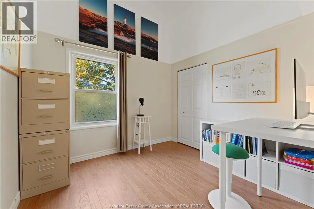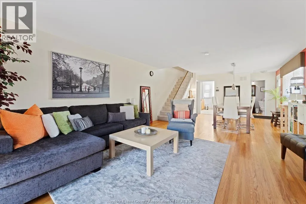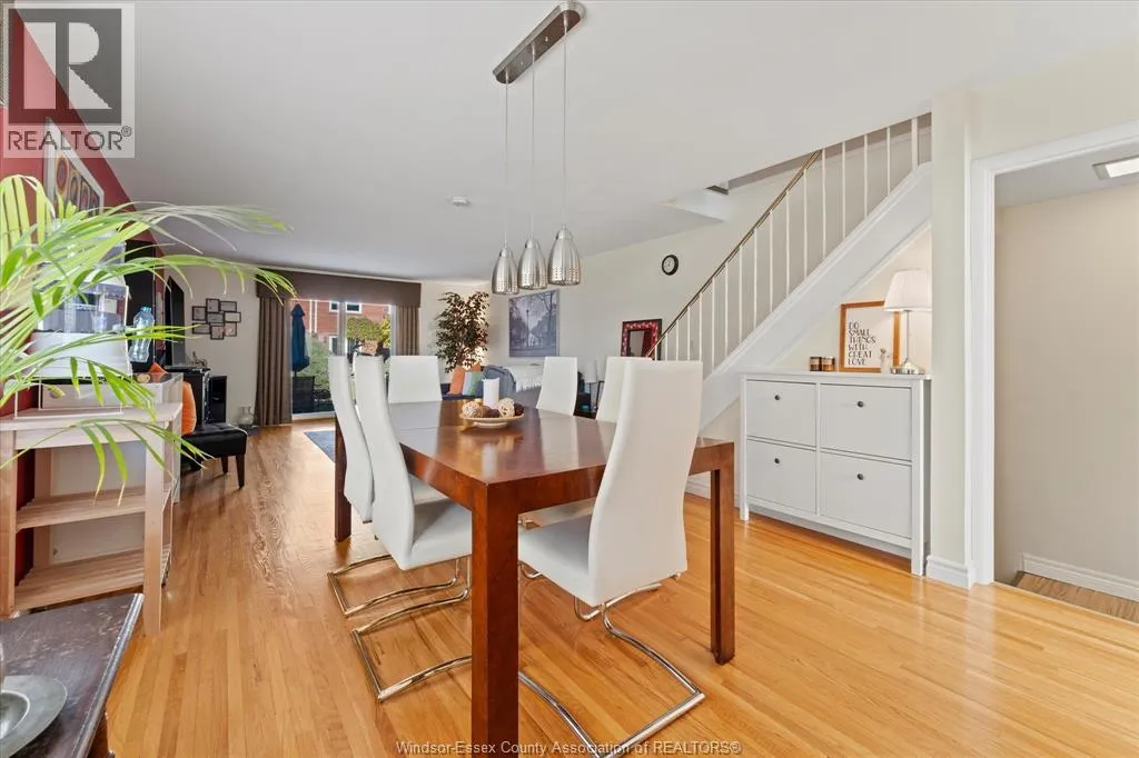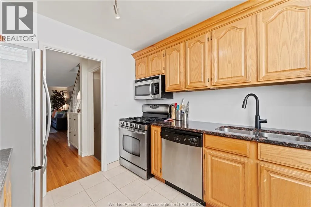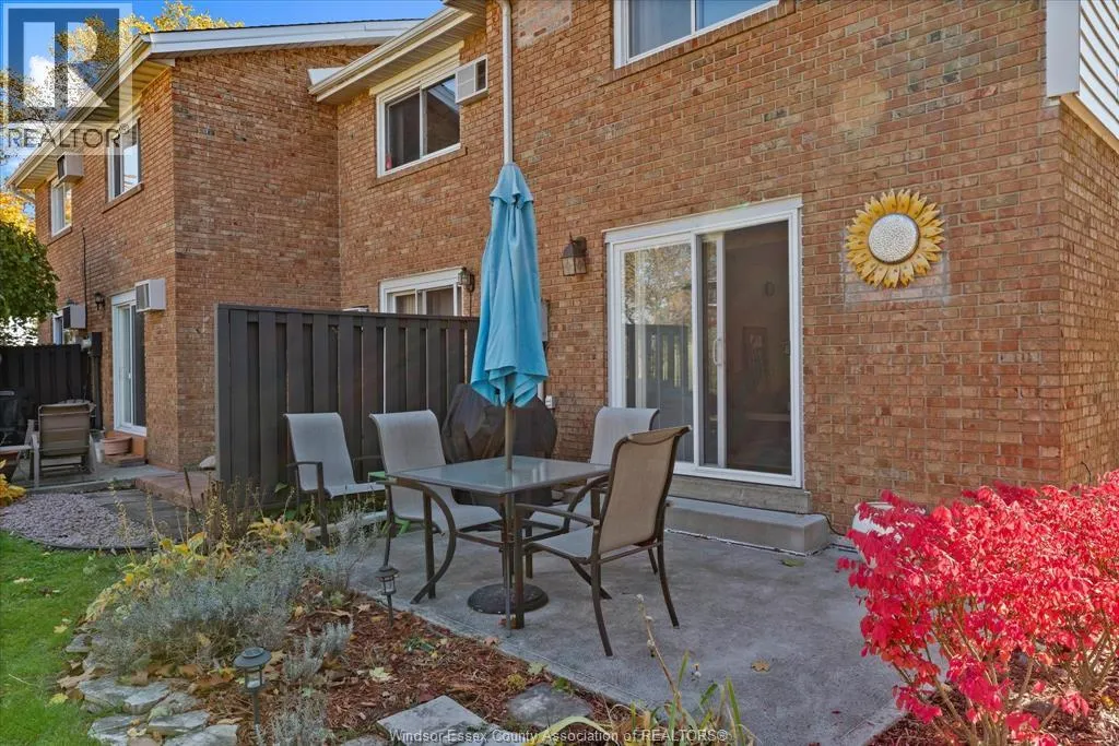 Lauzon Rd to Little River Rd, turn left into the grounds and park in Visitor parking This rare end unit offers a serene setting on impeccably cared for grounds. Enjoy the lush landscaping as well as a large heated in ground pool - a true everyday getaway in the heart of Riverside. Main floor features a convenient 2 Pc bath, bright kitchen with gas stove and a spacious open concept dining area. A rear sliding door leads right to your private patio. Upstairs, soaring cathedral ceilings highlight the three comfortable bedrooms and a well-appointed 4 -piece bath and upstairs laundry with washer and gas dryer. Finished basement is fully waterproofed from outside plus 3 backflow valves. There is great flexibility with a 3rd 2-piece bath, potential bedroom/office space and ample storage. Additional comfort comes from the forced air gas furnace and central air- conditioning. Close to parks, schools and shopping the move in ready home has everything you need to settle in and enjoy. Seller reserves the right to accept of decline any offer for any reason. (id:27476)