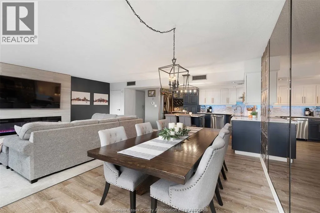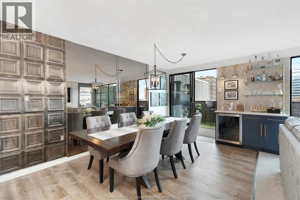 Gorgeous 2-storey downtown condo, approximately 1300sf at Royal Windsor Terrace. This 2 Bedroom, 2 full baths suite is sure to impress the moment you step in the door. You will love cooking and hosting in your chefâs kitchen with center sit up island, updated cabinets, abundant storage, newer stone countertops and appliances. Spacious and open concept main floor layout with elegant dining and living room. Entertain on your private terrace overlooking the city and its breathtaking views of the waterfront and Detroit skyline. 2nd floor offers a generous Primary retreat with euro shower and double vanity ensuite. Unrivalled amenities featuring an indoor pool with hot tub, gym, rooftop terrace & party room, billiards tables, sauna, racquet courts, and more! Private parking space and storage locker included. Each floor has separate entry to the unit. Fully updated and turnkey; every fixture and detail has been meticulously thought out. Downsize without feeling confined; Maintenance free living at its finest! Love where you live. (id:27476)