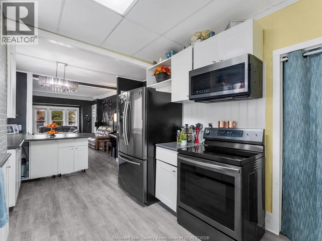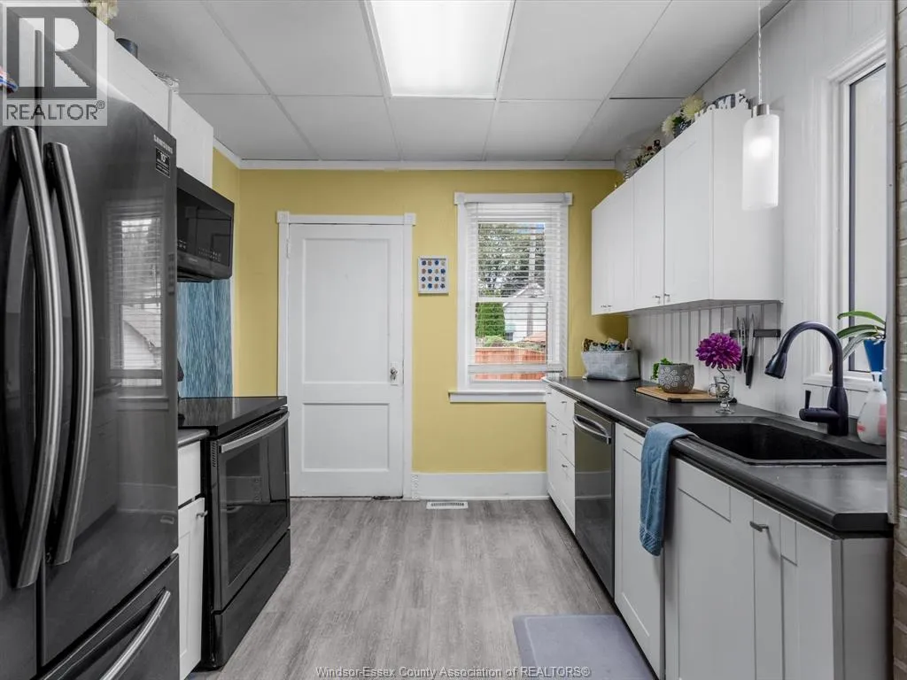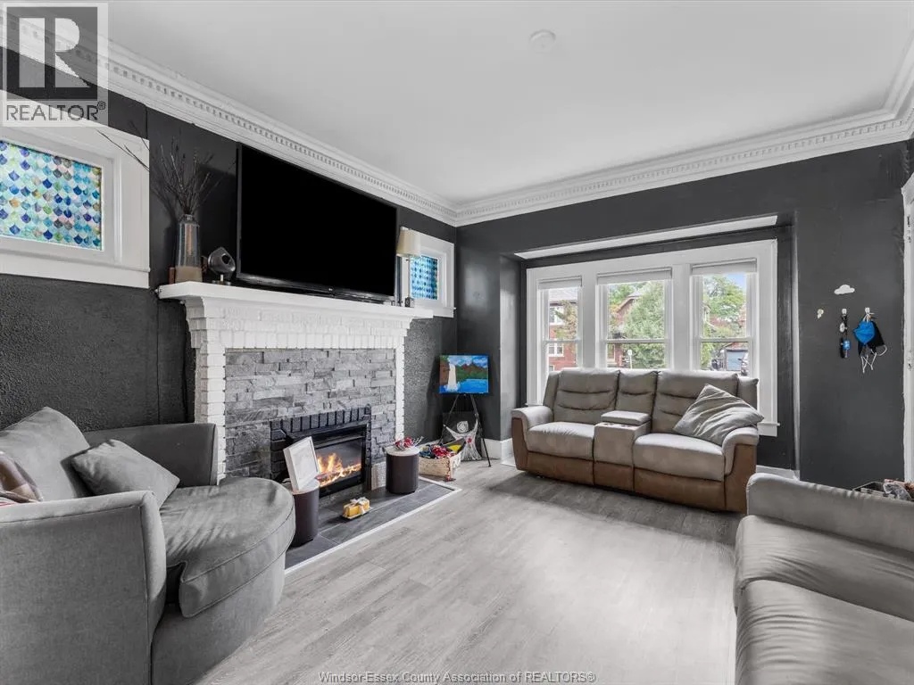 Charming and functional 1.5 storey home featuring 2 bedrooms plus loft and 1 bath. The open-concept main floor offers a spacious living room with cozy fireplace and a kitchen with plenty of cabinetry and generous counter space. Full unfinished basement provides excellent storage or future potential. Outside, enjoy a covered front porch, rear patio with new cement pad, and a fully fenced yard with fresh sod. Windows replaced within the last 5 years with transferrable lifetime warranty. Centrally located on bus routes and minutes from the University, St. Clair College, the border, casino, and all that Windsor has to offer. Affordable, well-maintained, and move-in ready. (id:27476)